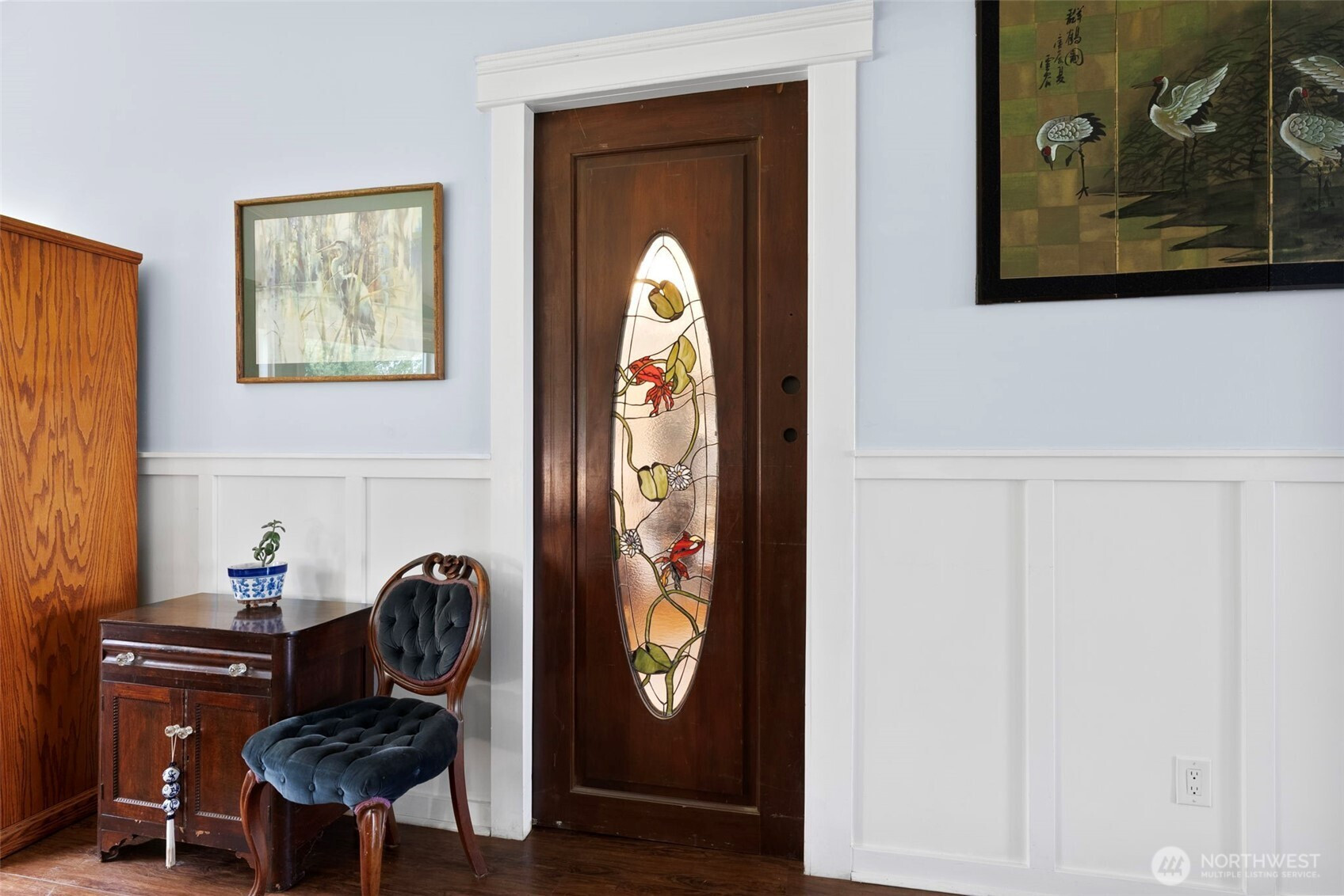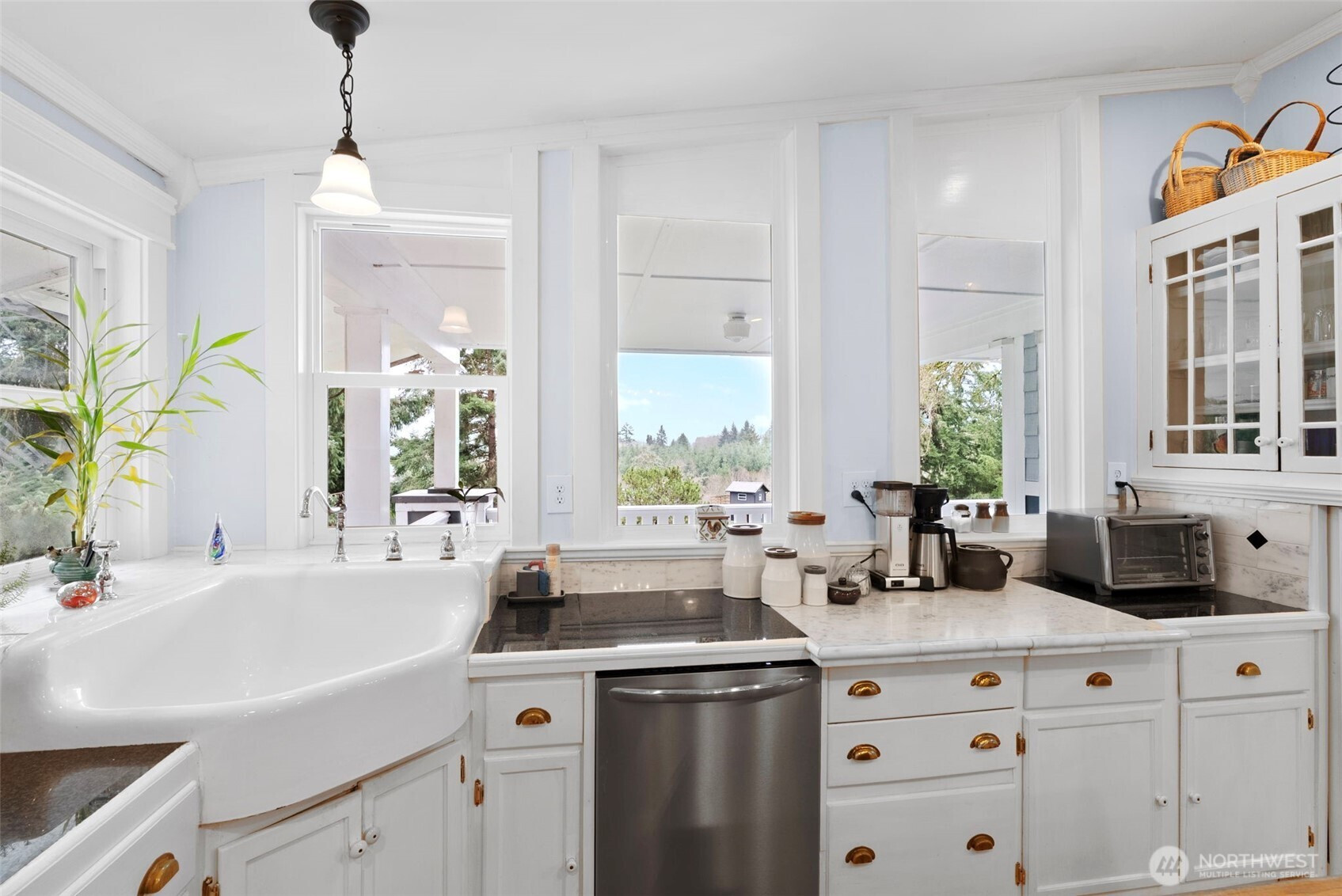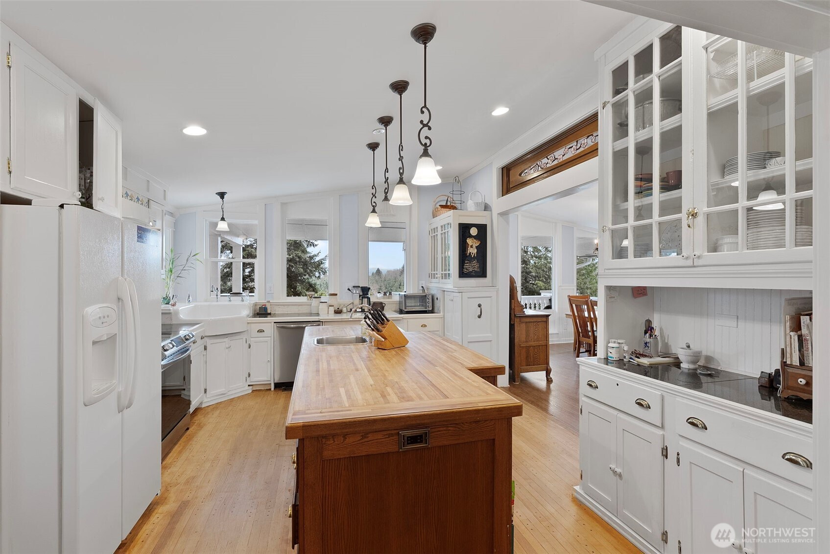 Chehalis Valley charmer with a bonus lower-level apartment and 832 SF studio! Located just 2 miles from I-5 on a paved dead-end road with valley views, this fully remodeled home showcases exceptional craftsmanship, rich woodwork, and custom stained glass throughout. The living and formal dining area features vaulted ceilings, large windows, wainscoted walls, a double-sided propane fireplace, and access to a covered porch. The bright kitchen offers abundant storage, beautiful marble counters, and a large butcher block island with outlets. Off the kitchen, the parlor includes a functional antique wood cook stove and a custom stained glass pocket door. Down the hall are a full bath with bidet, secondary bedroom, and stunning primary suite with cork flooring, walk-in closet, a tiled bath with antique double vanities, clawfoot tub, and separate shower. The lower level includes a third bedroom, office, and mechanical room with lots of storage. The finished apartment has interior and exterior entry level access, a full kitchen with lots of storage space, living area, full tiled bath, and sleeping area with walk-in closet. Above the large 2-car garage with EV charging, the 832 SF studio /workshop with ductless heating/AC sits high in the trees. Enjoy ample parking, two outbuildings, and a fenced private backyard. With a Boisfort Valley water share, new paint inside and out and over 3,900 SF of finished space in a prime location, this house is a must-see!
