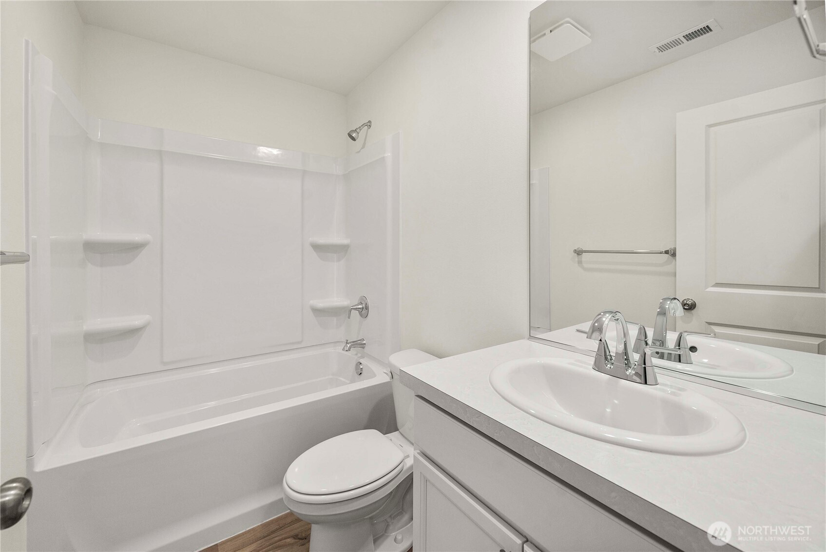 New Evergreen Grove Community! The Sutherland floor plan offers stylish design and modern features. An open concept living space with dining space off kitchen has access to enclosed covered patio. The primary suite off living room showcases a walk-in closet, a linen closet, and private bath with dual vanities and a walk-in shower. Quartz countertops in kitchen and Primary Bathroom, deep stainless steel sink, white Maple Shaker style cabinets with hardware and soft close hinges. LVP throughout the home including utility room, and carpet in bedrooms/closets. Homes come with front yard landscaping, and Buyers have some Upgrades to choose from. Buyer's Broker must accompany &/or register Buyer at 1st visit. Buyers Bring your Brokers