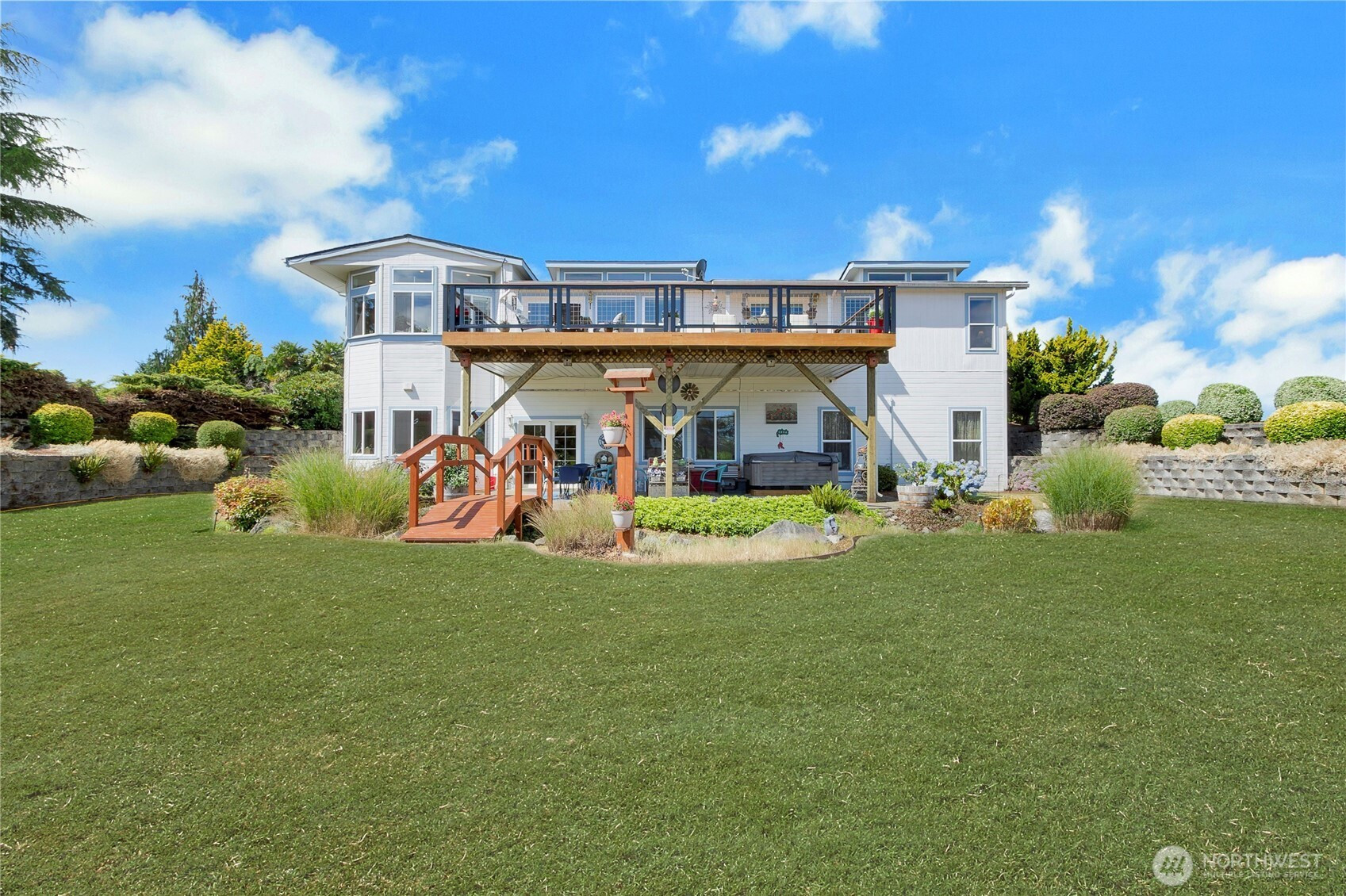 Beautiful inside & out! This Hobby Farm has it ALL! Solar-Powered auto Gate opens to your paved driveway on Park-like private grounds! Mountain view & Spring-fed pond. 3 parcels = 24+ acres. Over 5,000 SF of living space includes mother-in-law/guest quarters w/rec rm, dining rm, full kitchen, laundry & bath in fully finished daylight basement. Main level has laundry rm/mud rm, office, formal living & dining area, large updated kitchen with Island that has beautiful views of pasture. Family rm has French doors that open to newer remodeled 32'x16' deck, overlooking your herd or flock. HUGE primary bedroom suite with shower & garden tub, BIG sitting room walk-in closet Plus Jack & Jill closets. Addl. bedroom & full bath. 80x100 metal barn, addl. barn w/3 stalls, fenced & crossed fenced w/no climb pasture fencing for animals, Dog run. New roof, Insulated & sheet rocked 18x40 RV garage Plus 50x30 oversized 3 car garage attached. 16x10 Greenhouse, Rose garden, Vegetable gardens, Apple, Cherry, Pear, Fig Fruit Trees, grape vines, strawberry patch, blueberries & blackberries. 15 zone sprinkler system, 50 gal per min. individual well & above ground pool. Relax in your Gazebo overlooking heart-shaped water fountain or under your large covered patio w/ Bull Frog Hot tub. High speed Starlink internet, Security system, wired for generator. Plus your own shooting range! Bring your all your toys, cows, horses or sheep! Too much to list, Priced to sell! Your paradise, just minutes from I-5!