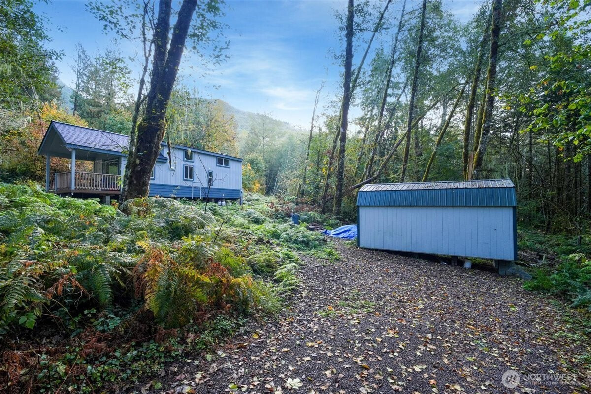 Escape to your own private 5-acre retreat surrounded by mature alder and big leaf maple trees, lush underbrush, and an abundance of wildlife! This partially cleared property features a 389sqft tiny home, a storage shed, and plenty of space to make it your own. Enjoy peaceful moments listening to the seasonal creek that flows in the winter, or relax by the fire pit, complete with hammocks and walking/hiking trails winding through the trees. The property is already set up for Starlink internet, making it ideal for a weekend getaway or a place to call home. Located within 30 mins of several lakes, including popular fishing destinations like both Davis Lake and Mineral Lake. The opportunities are endless with this amazing property!
