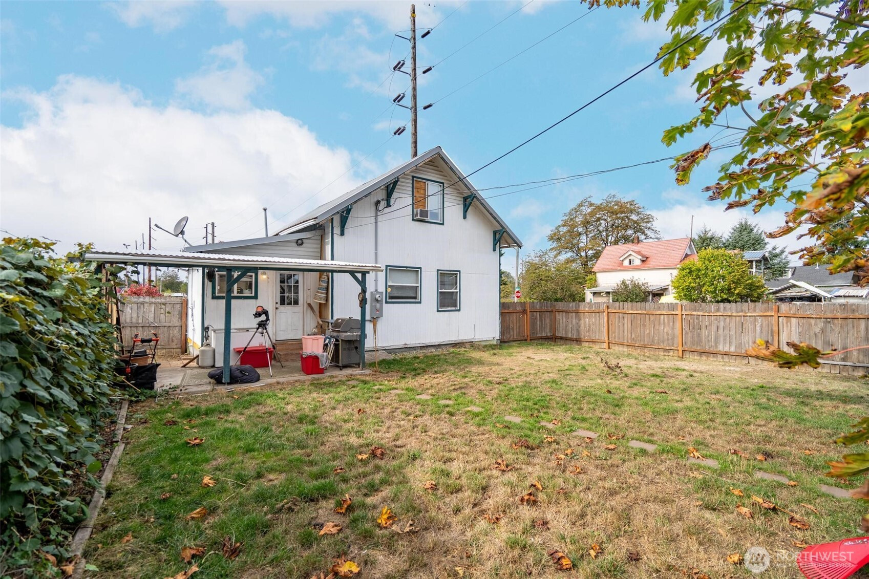 Corner lot of cozy describes this craftsman style 3 bed. 1 bath home with a welcoming ambiance. Features new laminate flooring, new gas furnace, fully fenced front and back yard. Large closets in upper level bedrooms, with plenty of extra storage space. Outside you'll find covered front porch, covered back patio, 2 car detached garage as well as a chicken coop. Window air conditioning unit in upstairs bedroom stays, that is the only room with air conditioning. Train tracks are near by. Seller is motivated.