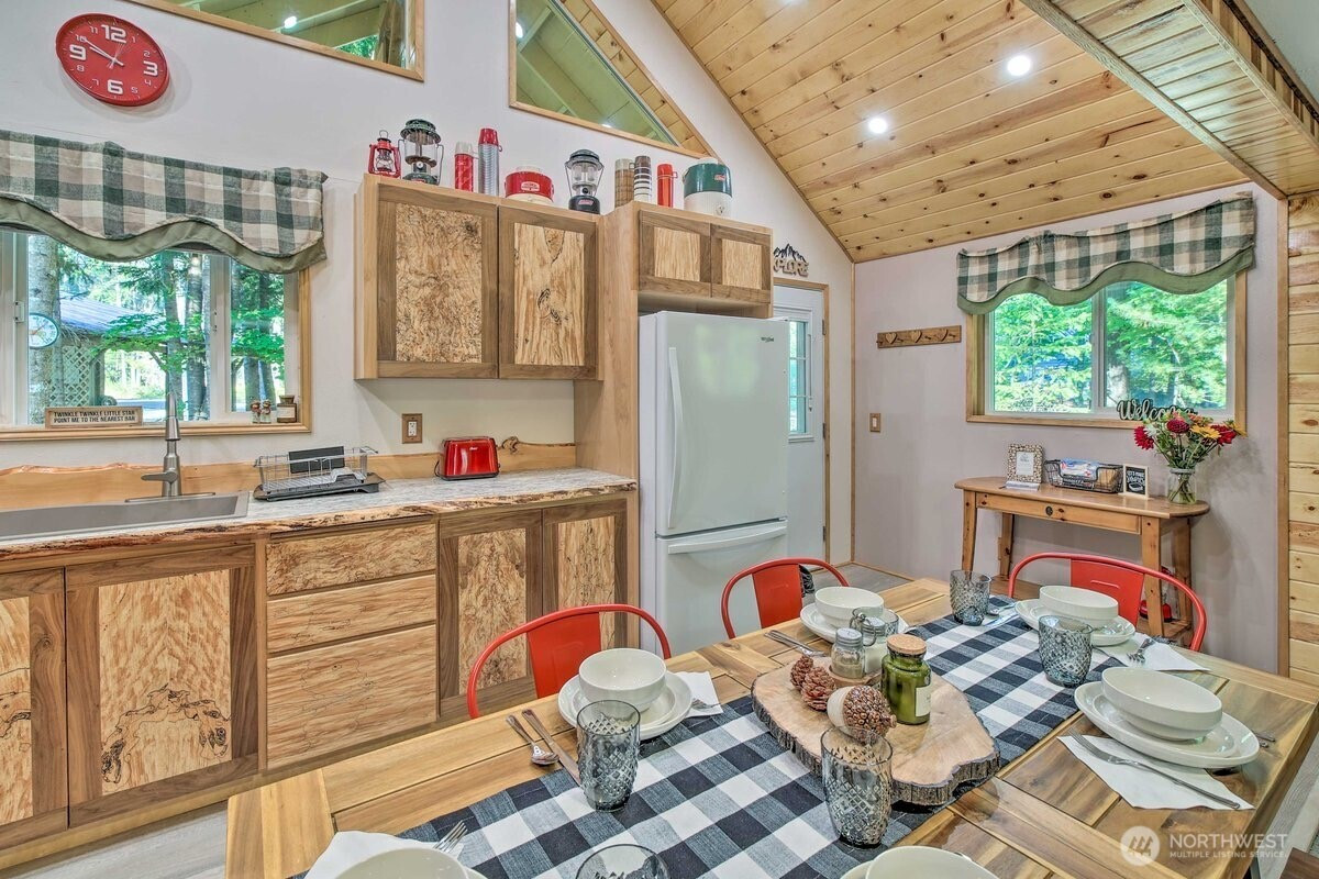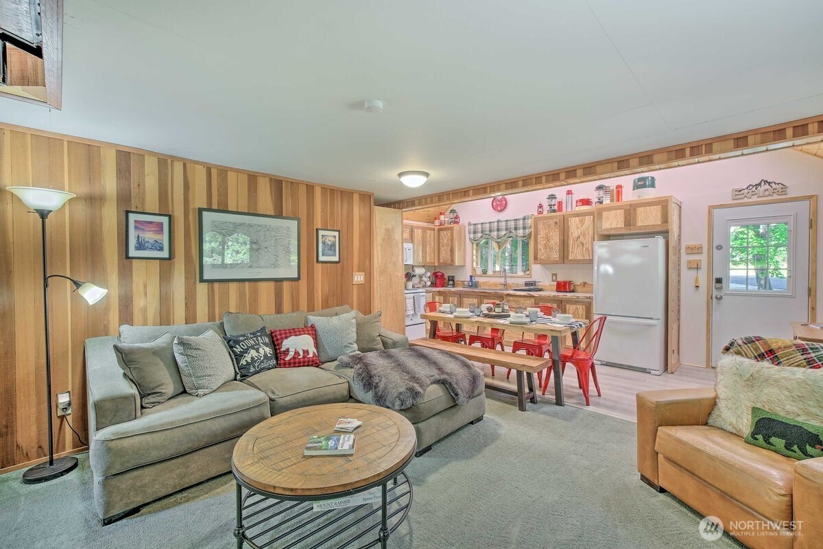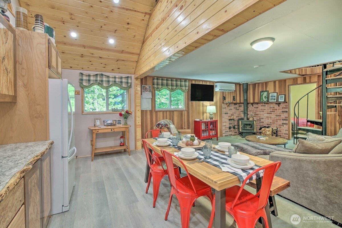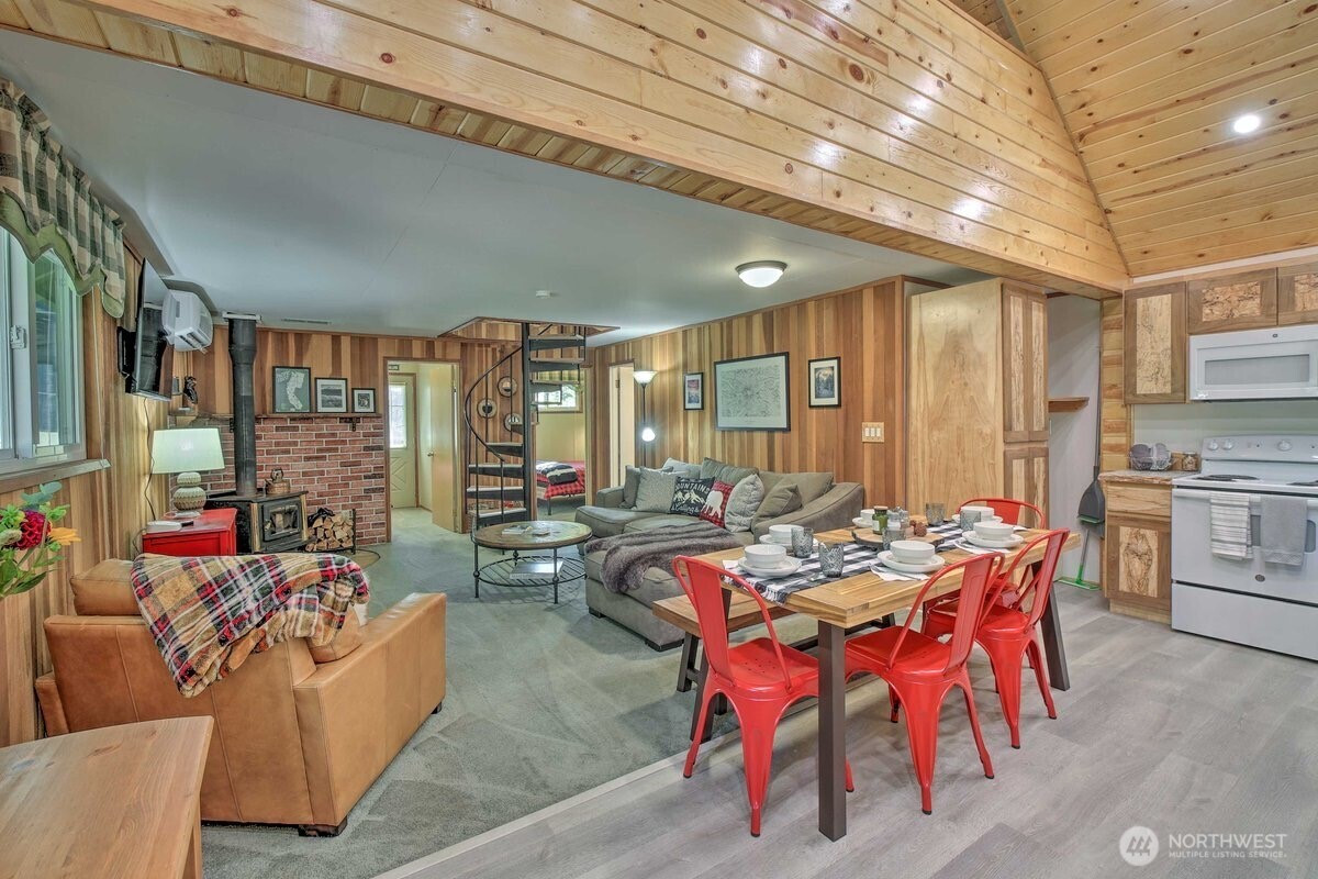 Tucked in the heart of Packwood, this charming mountain retreat offers the perfect blend of comfort, adventure, & Pacific Northwest beauty. Surrounded by towering evergreens and just minutes from year-round recreation, this home is an ideal getaway or full-time residence.Enjoy easy access to hiking, skiing at White Pass, & the stunning natural landscapes of Mount Rainier National Park. Inside, you’ll find a warm & inviting atmosphere with warm randle woods cabinetry, unique live edge countertops, & an efficient layout that maximizes space and comfort. The main level offers 2 bedrooms & full bath.A spiral staircase leads to a spacious loft with an additional bedroom. Enjoy both covered & open decks, a fire pit for evening gatherings, & year-round comfort with a ductless heat pump & woodstove. High Valley HOA amenities include pools, & a 9-hole golf course! Step outside to your private outdoor space—perfect for relaxing after a day of exploring or hosting under the stars. Whether you’re looking for a weekend escape, investment opportunity, or peaceful place to call home, this Packwood gem delivers.
