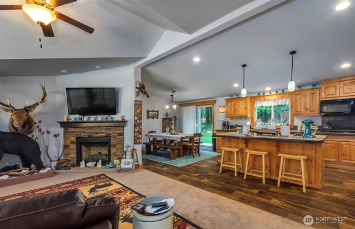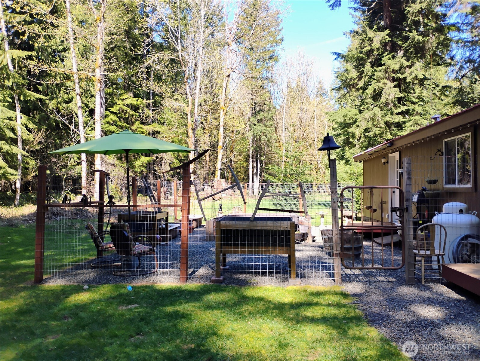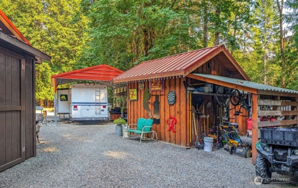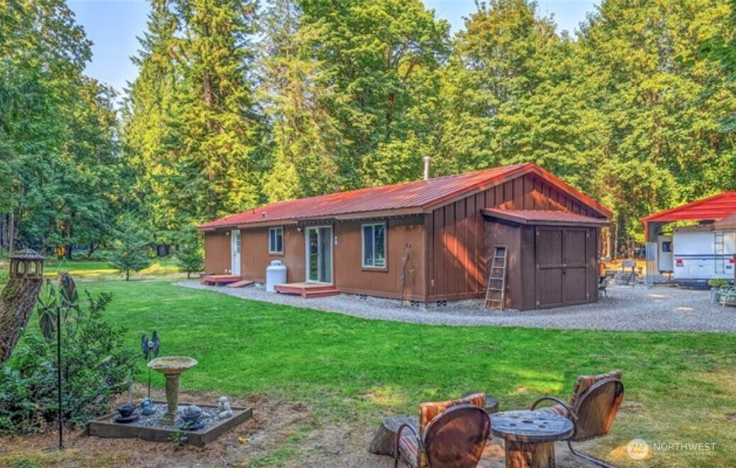 You have to see this! Gorgeous open living home in gated community in Packwood. 3 bedroom & 1 3/4 bath with so many extra true wood touches, vaulted ceilings, 36" wooden doors, lots of windows with wonderful views, dining room. Outdoor kitchen w/ power, propane stainless steel cook top, storage and water - gazebo eating area - fire pit - shop - bath house w/ shower & vanity - implement storage - smoker shed - plenty of storage on 1 beautiful acre! 2 RV hook-ups, 1 full w/ dump (30+50amp) & 1 w/ 30amp & water. This is truly amazing! Close to Packwood and Hwy 12. Enjoy hiking, skiing, biking, fishing or just relaxing!!! Community has walking path to the Cowlitz River too. Community water is $32 monthly or you can pay annually.