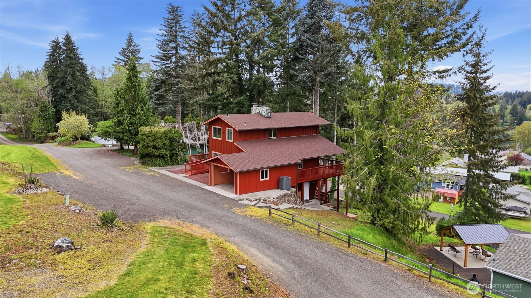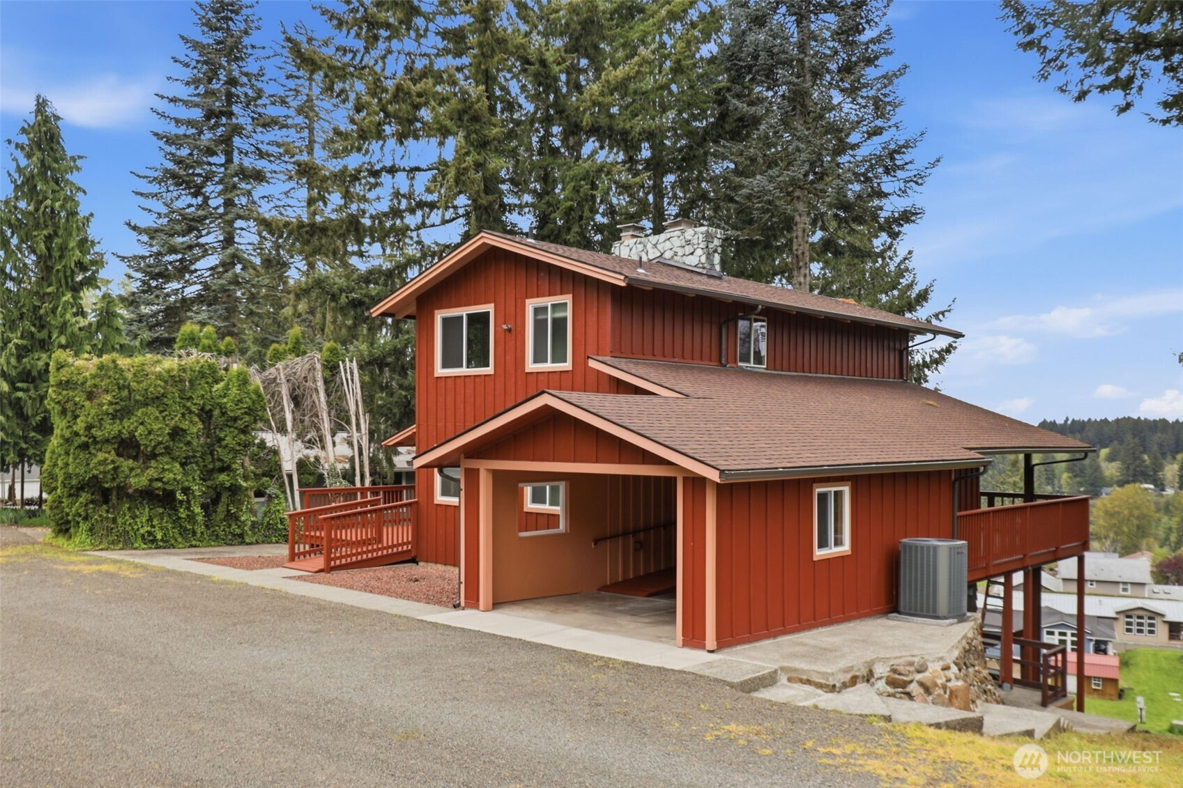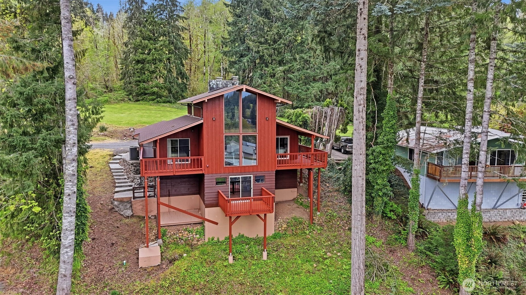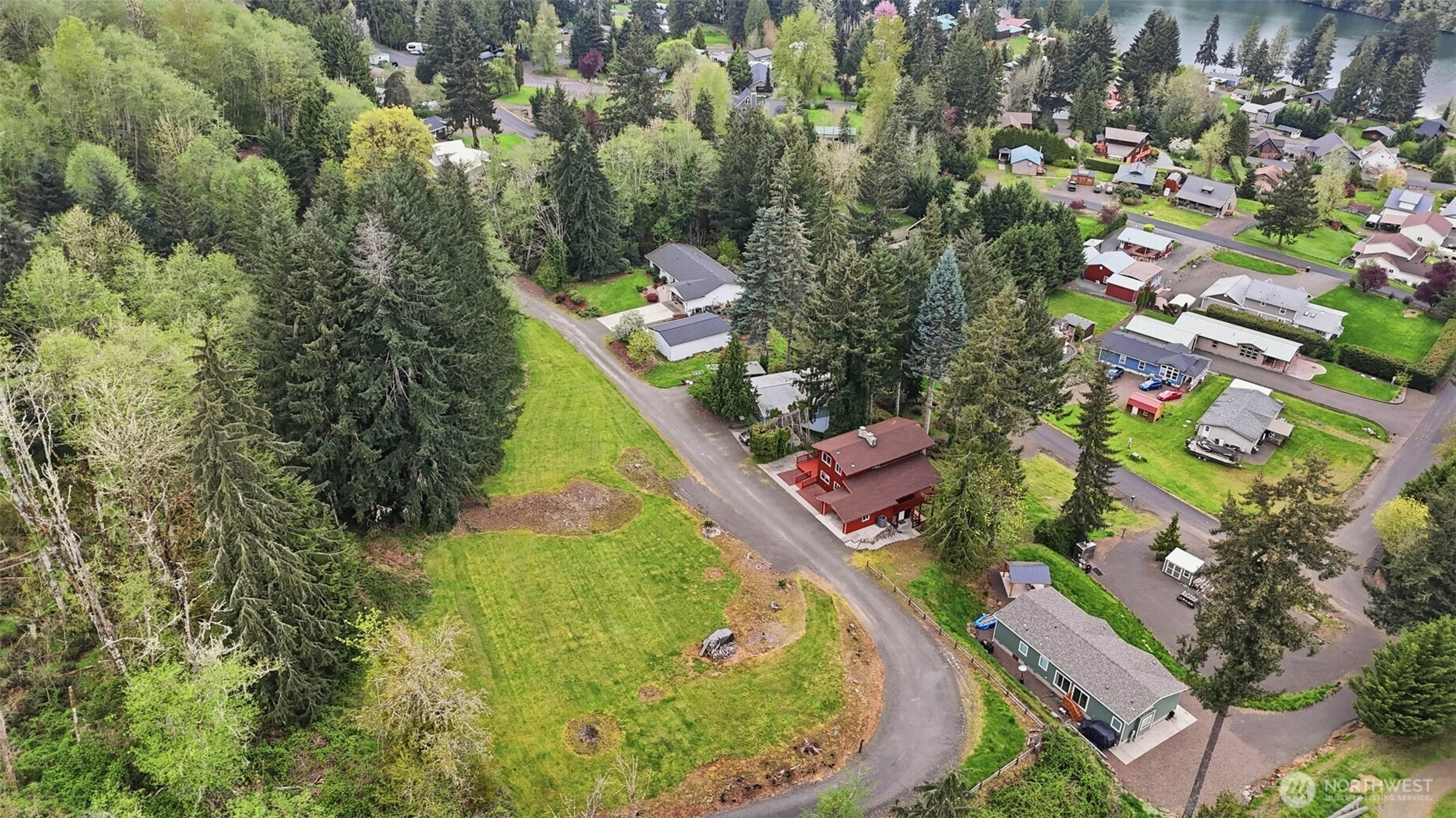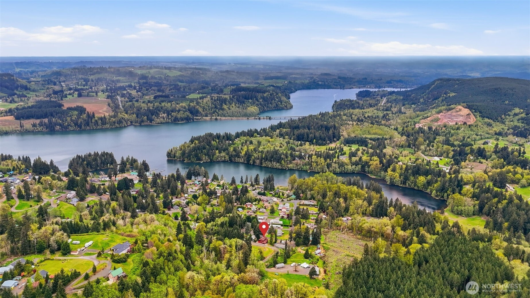 This is your opportunity to own a charming, turn-key home in the desirable Mayfield Lake Village area, paired with a rare 5+ acre lot just across the street. These two tax lots offer exceptional flexibility—live in the home as-is, expand, build, or hold as an investment in a location where opportunities like this are limited. Perched above surrounding hills & framed by evergreens, the home captures sweeping territorial & lake views, creating a peaceful retreat. Inside, you’ll find warm wood finishes, exposed beams, & expansive windows that bring the views front & center. The main living area features vaulted ceilings & a stunning Montana stone fireplace, while large sliders open to spacious decks—perfect for relaxing or entertaining. The layout includes multiple living spaces, with a lower level offering its own fireplace, ideal for guests or a private retreat. The kitchen is well-positioned with ample cabinetry & easy flow into the main living areas. Major updates have already been completed, including electrical & plumbing improvements, a new roof & windows, updated flooring, fresh exterior paint, & rebuilt decks—making this home truly move-in ready. The additional acreage provides valuable space & future potential, with a cleared area offering territorial & peekaboo lake views. Utilities are already on site, making it ideal for expansion or recreation. Enjoy privacy & a serene setting just minutes from Mayfield Lake, with a marina & boat launch nearby.