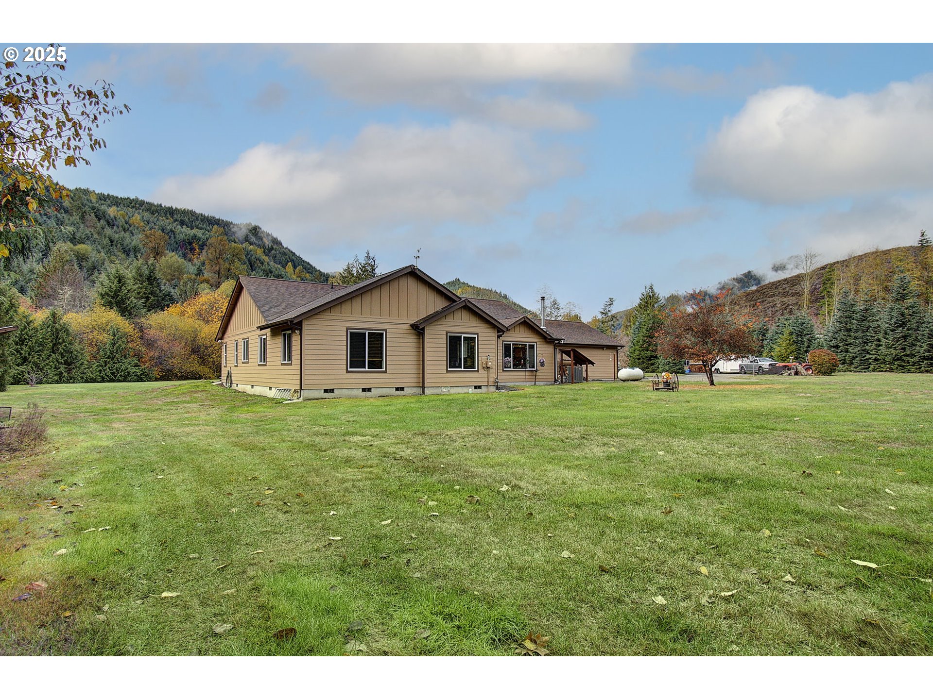 (503) 893-8874Hard-to-find single-level, no-step home on 5 private acres with room to grow and a creek—perfect for outdoor enthusiasts. This 2,208 sq ft home (built 2012) offers 3 beds, 2.5 baths, and a bright open-concept layout with vaulted great room and abundant natural light. Spacious kitchen features granite counters, large island w/bar sink, propane cooktop, convection oven, built-in microwave, birch cabinets, and walk-in pantry.Living area with cozy wood stove. Primary suite includes walk-in closet, patio access to hot tub, and accessible shower w/dual heads. Flexible space for guests or office. Guest bath with split layout and dual sinks.Features: 400 AMP service, Lennox heat pump, tankless hot water, 24x33 heated garage w/workshop space, no-step entry, wide doorways, mudroom/laundry.Private well (1,700-gal reservoir), septic, 16KW generator, RV hookup, pumphouse w/loft. Circle driveway, private walking path through wooded acreage to your own creek, fenced orchard, abundant wildlife.Plenty of room to build a shop. Peaceful Glenoma setting just ¼ mile to Hwy 12. White Pass Ski Area ~30 min, Riffe Lake ~10 min. Views of Kiona Peak.
