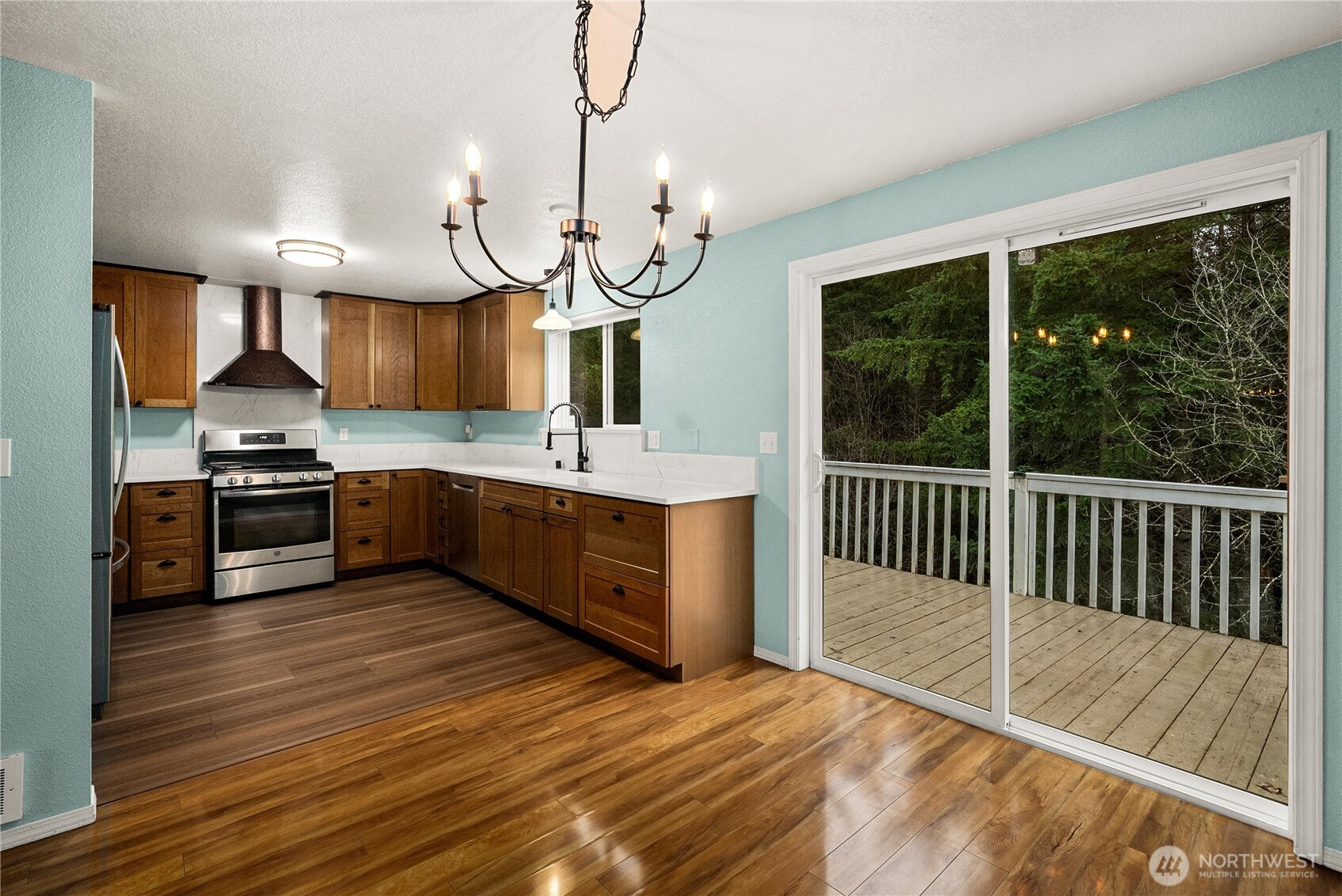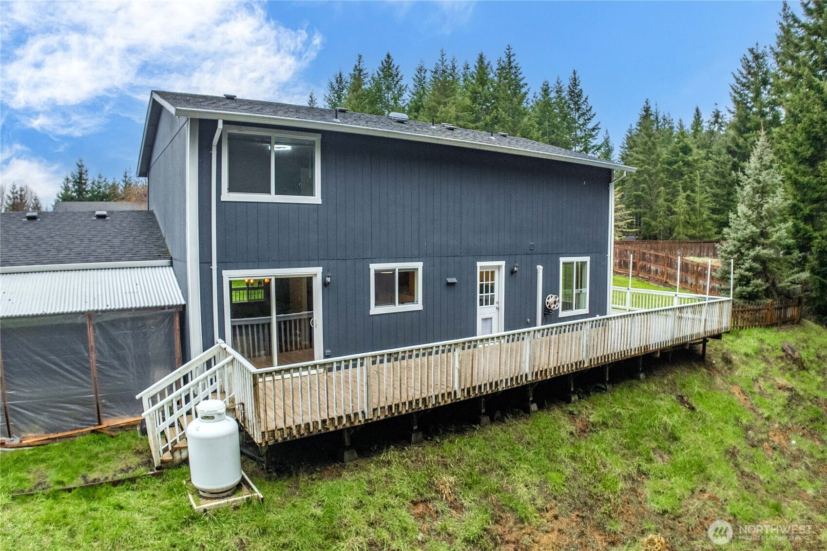 Welcome to your own little slice of country living on 5 beautiful acres. You’ll love the mix of open space and privacy with 1.5 acres of flat, cleared yard and 3.5 acres of woods with established trails to wander and explore. Complete with a true wrap-around porch, this exceptional property is ready for all of the relaxing, gardening and entertaining that you can dream up! Inside, the kitchen has been freshly and lovingly remodeled with quartz countertops and a dedicated dining area. You will love the ornate, custom copper range hood over the gas cooktop and the deep farmhouse sink that overlooks out over your own private woods. Downstairs offers a cozy sitting area with an efficient gas stove plus a roomy family room with easy access to the yard. There’s also a convenient half bath connected to the laundry room with plenty of storage and hanging space. Upstairs you’ll find three extra large bedrooms. Each one big enough for a king bed with room to spare. The primary bedroom includes a light and bright ensuite bathroom, and there’s a matching full guest bath, and a generous linen closet/pantry. Outside, there’s a two-car garage, an extra storage shed, and even space to park your RV or boat. Multiple mini-splits keep the home comfortable year-round. Warm in the winter and cool in the summer. Peaceful, private, and quiet, yet just minutes from town and everyday amenities—this property really gives you the best of both worlds.