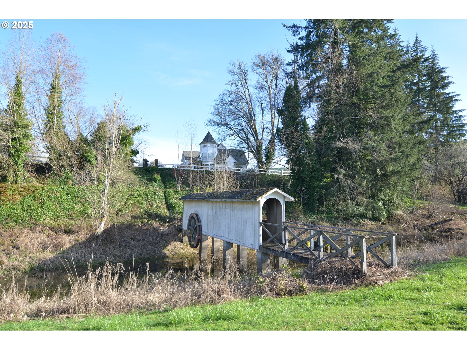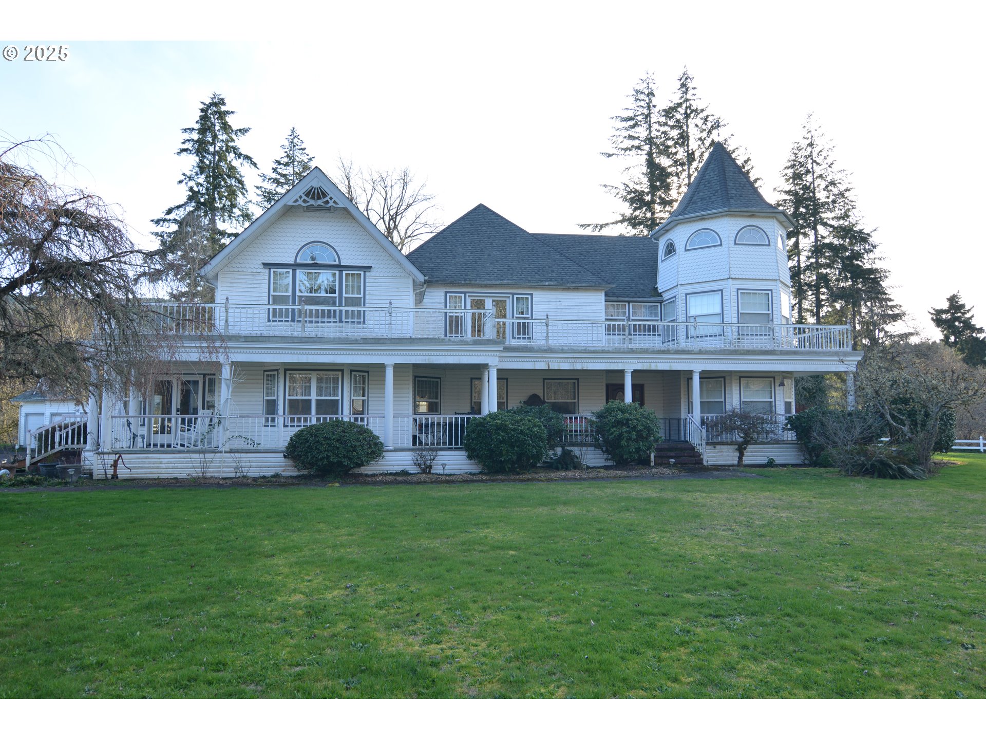 Stunning Victorian Estate on 20.55 waterfront acres! Luxurious residence boasting 5487 SF, 4 bedrooms, 3 bathrooms, Great Room living w/9' coffered ceilings, frml living rm w/FR doors to large patio. frml dining rm, gourmet oak kitchen w/replica stove/oven-island w/eating bar, immense family rm w/wet bar-Fr doors to viewing decks-FP, spacious primary bdrm-jetted tub-walk-in closet, heat pump & 4 car garage. The manicured grounds feature a gated entry-2 rail fence-creek frontage-pond w/covered bridge, 2740 SF shop w/kitchen-half bath-720 SF awning-144 SF porch, a 2350 SF shop w/half bath utility rm- 12,000 lb car lift & 720 SF RV carport w/hook-ups. The 2 shops are on a separate .54 acre commercial parcel.