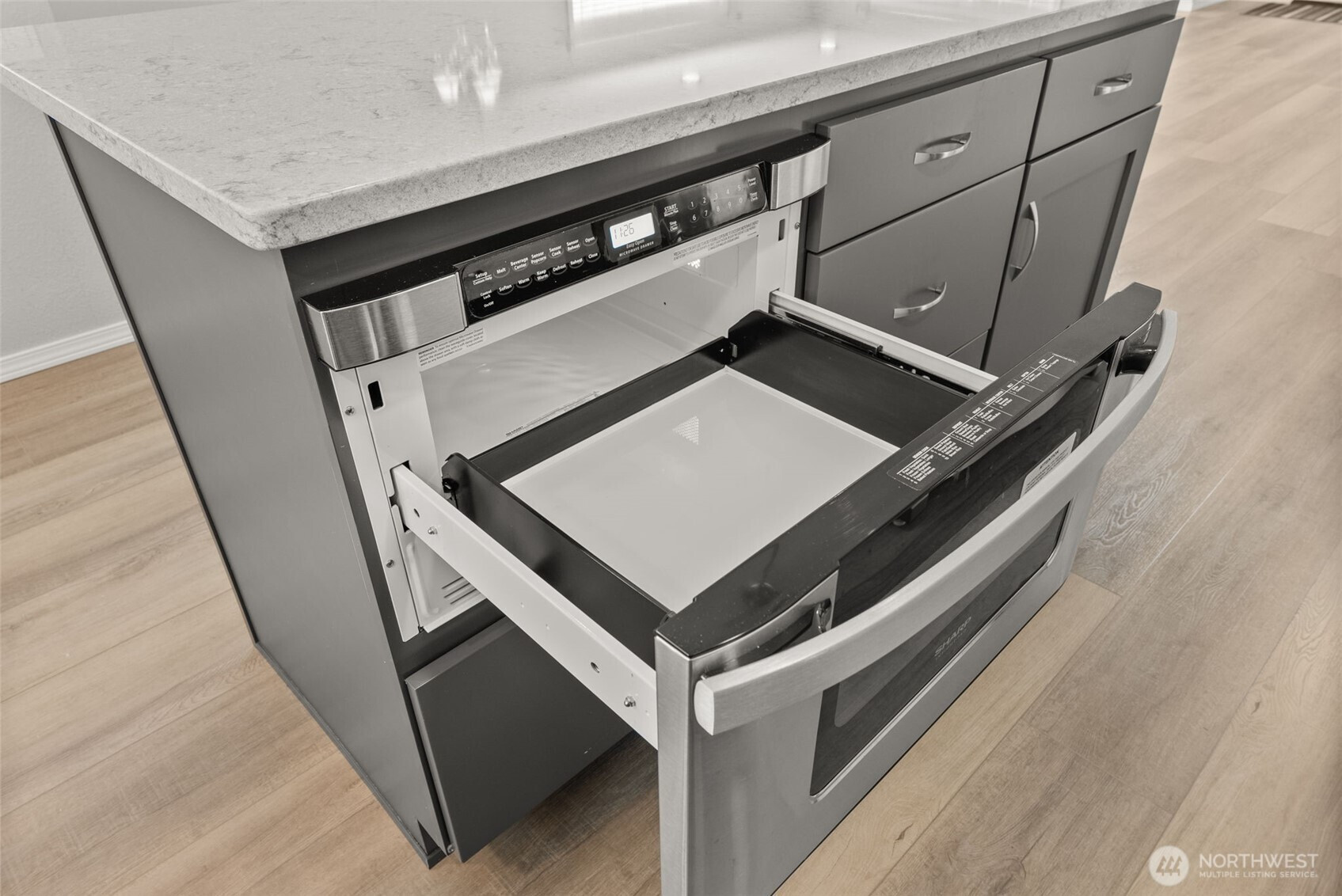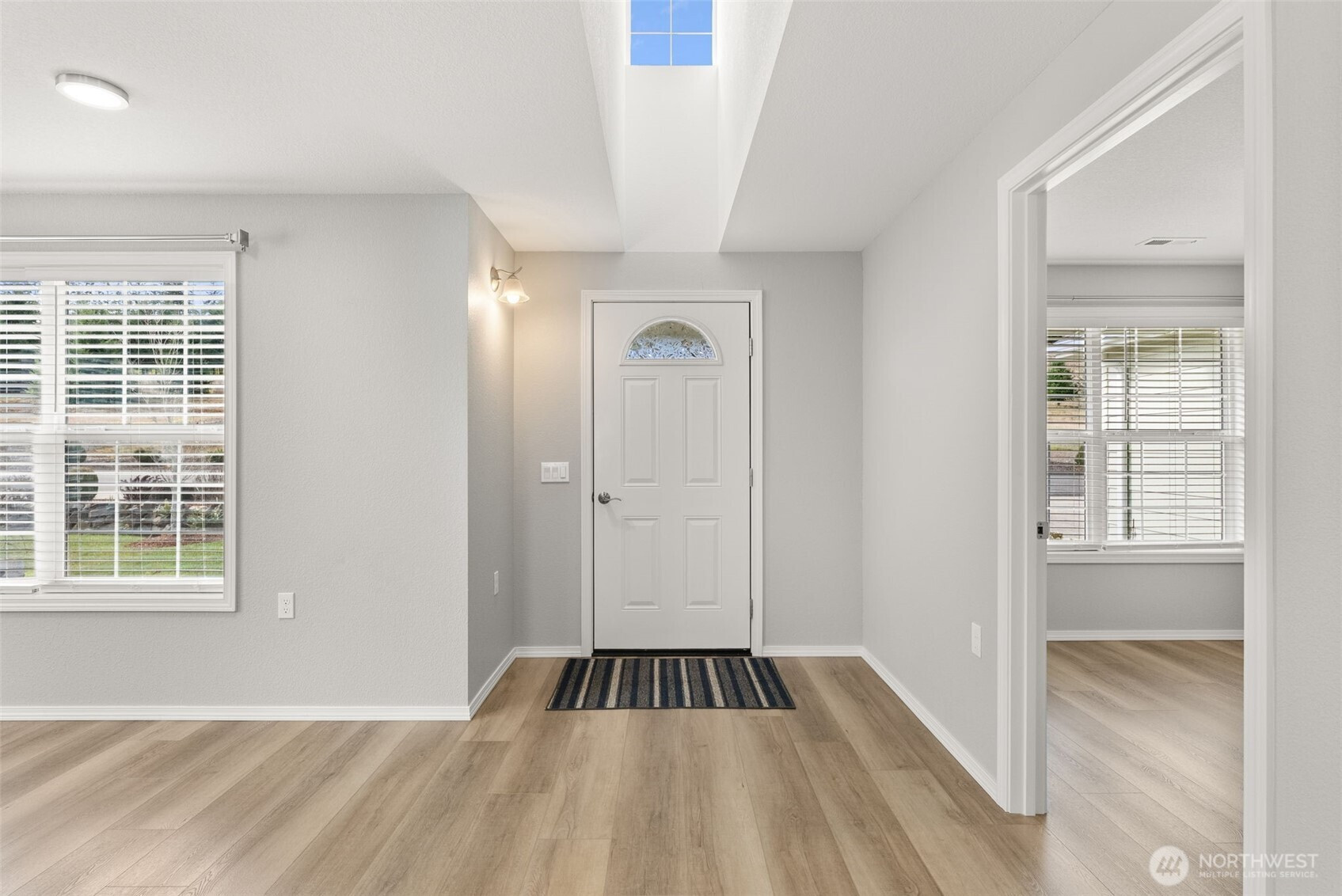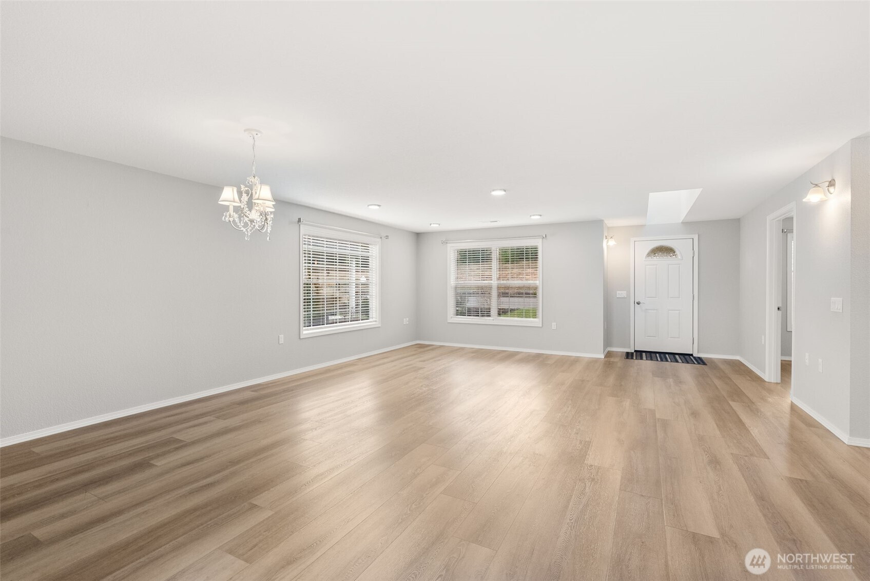 Lovely to look at, beautiful to behold, when you walk through the front door, you'll consider it sold! The simple yet elegantly designed Harrington floor plan offers 3 bedrooms & 1.75 baths with an inviting, easy-to-live-in open-concept layout. The Living, Dining, & Kitchen areas meld seamlessly together with laminate flooring— perfect for everyday living & entertaining. The kitchen's got tons of cabinetry w/pull-outs, a large pantry, quartz counters, tile backsplashes, SS appliances, plus a convenient MICROWAVE DRAWER in the island, making it easier & safer to handle hot foods. Primary suite has a private en suite bath & walk-in closet, while the nearby utility space features a newer front-load washer & dryer on pedestals, for your laundry supplies storage. Skylights & abundant windows fill the home with beautiful natural light throughout the day. Ease outside to enjoy a spacious deck off the main living area, ideal for relaxing or gathering with friends, plus an enlarged front patio where you can savor pleasant territorial views. A thoughtfully designed home that balances comfort, style, and functionality-- now's your opportunity to call it yours! Located in Stillwaters Estates, Lewis County's premier 55+ gated, NON-HOA, privately owned & professionally managed community, where all the homes are designed for quality living, secure covenants that include many amenities, & a clubhouse for activities. All homes include accessibility features. SWE Maint Fees $493-$572/mo.