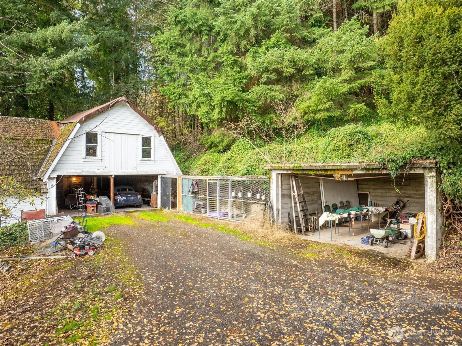 Fixer-Upper on just shy of 5AC w/huge potential features 1920s era home w/4Bd, 3Bth plus 1BD 1BTH attached apartment w/separate entrance. Upper portion of property has almost 3AC of Doug Fir & lower portion is almost 2Ac pasture w/steel cable horse fencing. Large Shop/Barn, concrete carport & vintage horse barn w/2 stalls. Home is connected to artesian spring well. City water has been plumbed to home & meter is in place but connection fees to be buyer's responsibility. Property has been surveyed, corners marked & BLA is in progress. Forced-Air Furnace, heat pump & water heater are about 5yr old. Most plumbing has been updated to Pex & Copper. Home is in need of repair and is being sold AS-IS. Additional 6AC is listed for sale MLS 2425791.