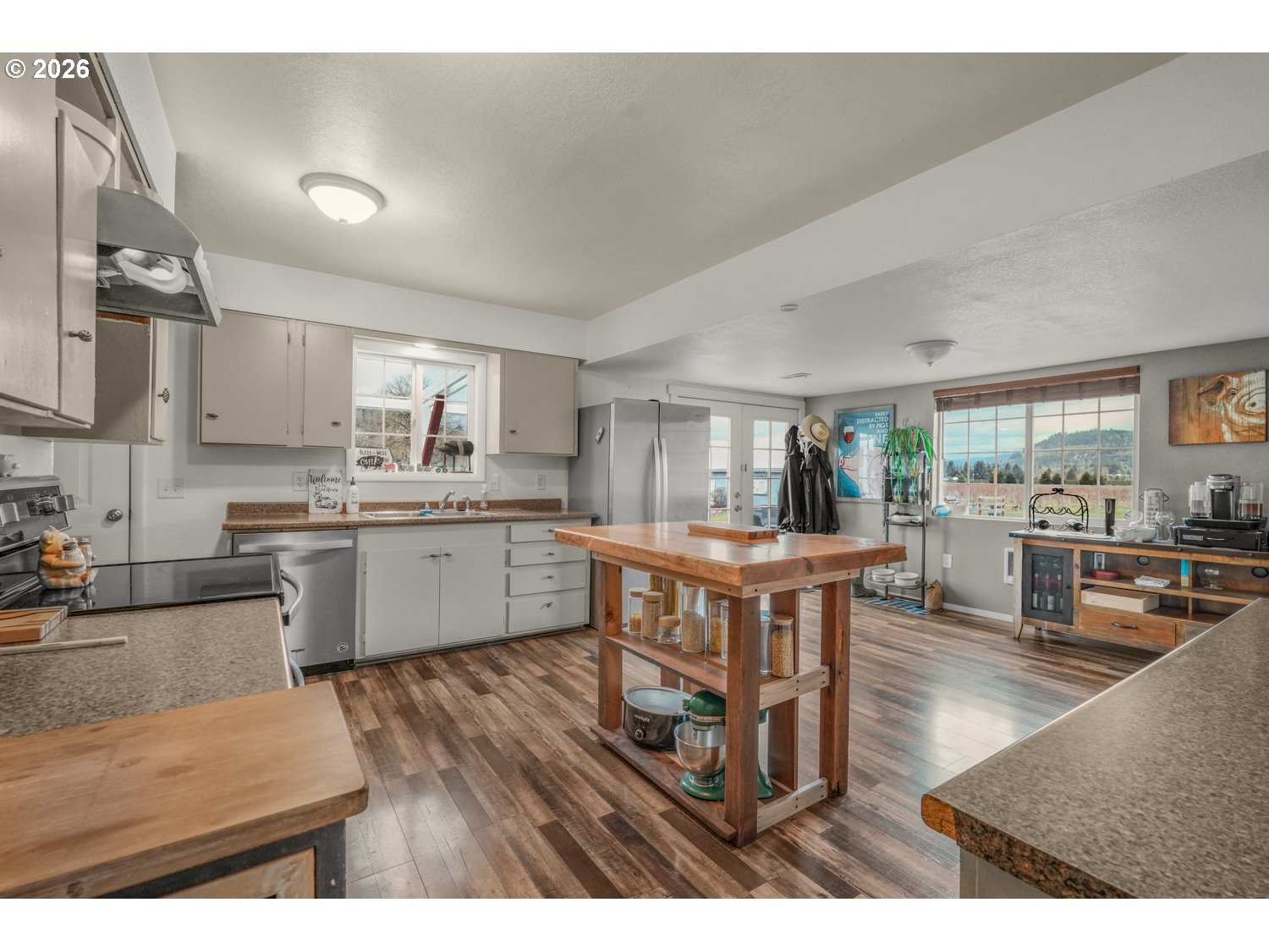 Charming, completely updated move-in ready home on 3.46 acres that's the perfect blend of peaceful country living and modern amenities. This unique property offers endless possibilities with plenty of room to spread out, garden, entertain, and enjoy the quiet beauty of the surrounding hills and trees. Relax on the large front deck and take in the serene views of rolling hills, trees, and open sky. Inside, the home is bright, sunny, and beautifully refreshed with new interior and exterior paint, flooring, windows, countertops, and appliances. The main level features attractive laminate flooring throughout and a welcoming layout ideal for everyday living and entertaining. The living room flows seamlessly into the dining area, creating great entertainment value. The spacious kitchen offers lots of cupboard and prep space, stainless steel appliances, and a cozy eating area with French doors leading outdoors that's perfect for indoor/outdoor dining. Two comfortable bedrooms and a full bathroom are located on the main level, while upstairs you’ll find a private and spacious primary suite complete with its own bathroom with a glass shower. A huge unfinished basement provides incredible potential for additional living space, a workshop, storage, or hobby area. Outside, enjoy the incredible outdoor amenities including a shop with carport and covered patio that's ideal for BBQs and gatherings. Garden enthusiasts will love the large garden area with greenhouse and raised beds. There is also plenty of room for toys, equipment, and RV parking. All of this in a peaceful country setting, yet just minutes from fun dining and fun local spots for a night out. A rare opportunity to own a beautiful home with space to truly enjoy the country lifestyle.