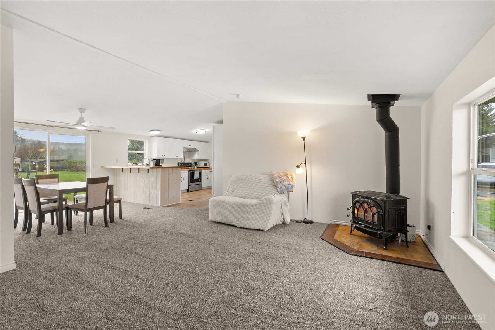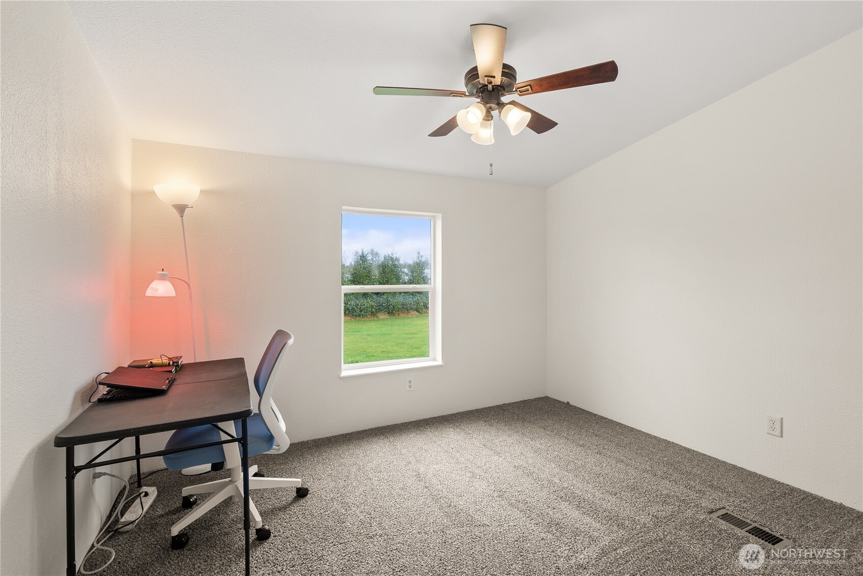1378 square foot 3 bedroom, 2 1/2 bath home on 2 acres. Fully fenced property with a 30x36 framed-in detached garage. 16x32 covered carport with electrical hook up for RV storage/parking, and a storage shed. The primary suite includes an attached office space, bathroom, and closet. There are 2 full baths plus 1/2 bath off utility room. The home has all new flooring, and kitchen cabinets with block countertops. Along with a new dishwasher, stove, and hot water tank. The home includes a individual well with a two-year-old pump, and gravity septic system.