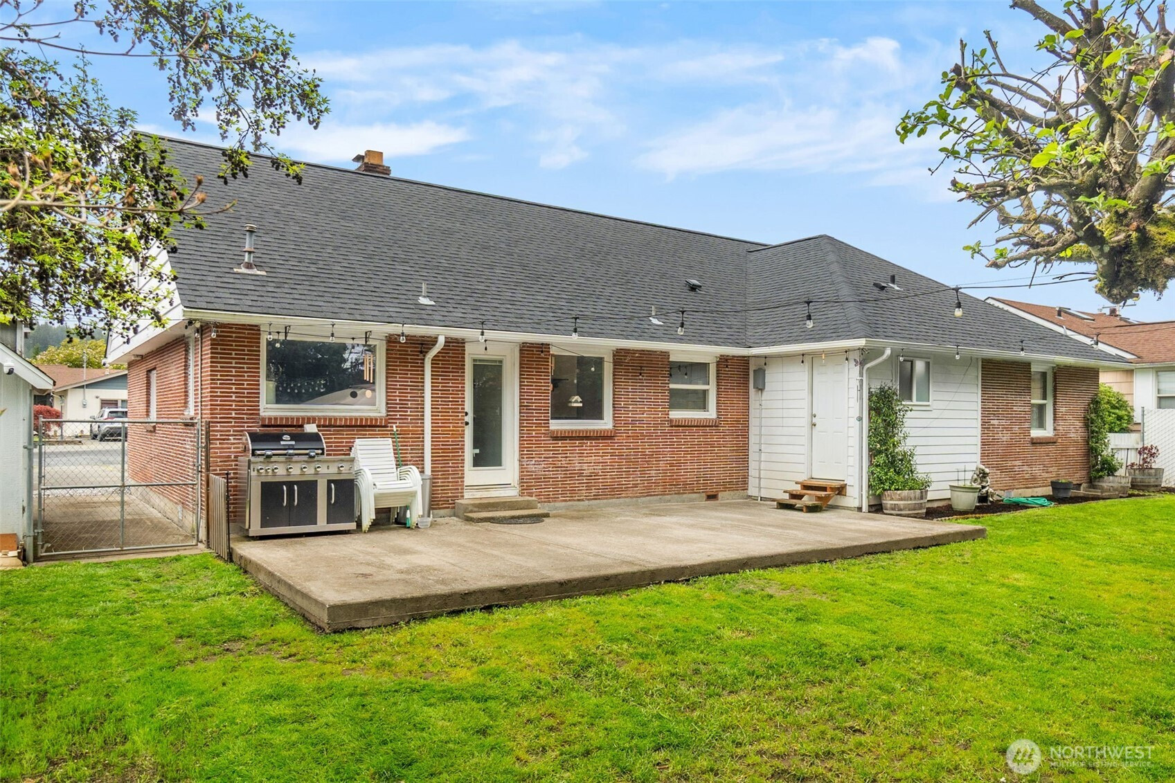 Welcome to this beautifully maintained 4-bedroom, 2-bath brick home featuring modern updates while maintaining traditional charm. Inside, you’ll find real hardwood floors that add timeless appeal throughout the main living spaces. The inviting living room features a cozy fireplace, perfect for relaxing evenings, while the separate dining room provides a great space for gatherings and everyday meals. The updated kitchen is both stylish and functional, featuring a farmhouse sink, rich butcher block countertops, and newer appliances—all included for your convenience. A mudroom adds practical everyday use, helping keep things organized. Upstairs, you’ll find two private bedrooms that provide great spaces for a WFH office, if needed, and a large attic perfect for storage or possible extra living space. Step outside to a fully fenced backyard set on a large lot, offering plenty of space for outdoor activities, gardening, or entertaining. An outbuilding with power adds even more versatility, ideal for a workshop or hobby space. Additional updates include a new roof installed in 2020, providing peace of mind for years to come. Located in the desirable Snively neighborhood, close to schools and with easy freeway access, this home offers a convenient commute while keeping you near the local amenities of downtown Chehalis and The Gail and Carolyn Shaw Aquatic Center and Penny Playground. A perfect blend of comfort, convenience, and value—this is one you won’t want to miss!