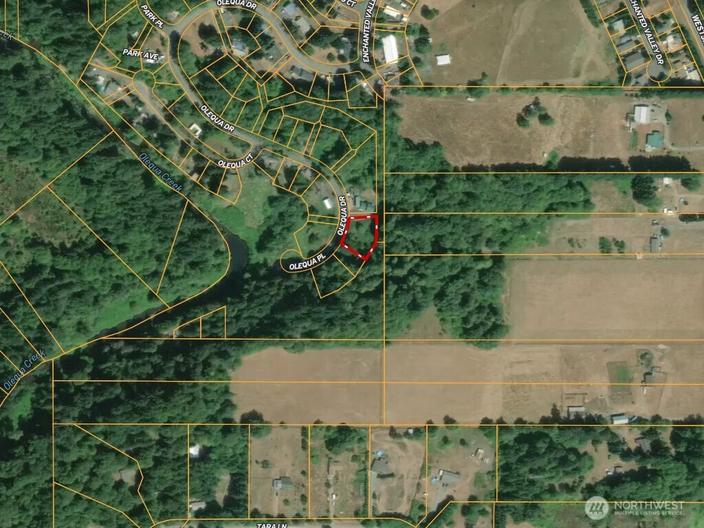VADER (ENCHANTED VALLEY) – 0.380 ACRES: 16,553 sf lot located on a quiet dead-end street in a remote setting with level to gently sloping topography. A seasonal creek runs along the north end of the property, with Olequa Creek just a short walk away at the end of the street. Conveniently situated 5 minutes to Vader for daily needs and approximately 30 minutes to Chehalis and Longview for expanded shopping, dining, and services. The surrounding area offers access to parks, lakes, rivers, and abundant wildlife. Zoned R2 with no HOA and located in the Castle Rock School District. Suitable for a manufactured home, park model, tiny home, or custom build, with ample space for development. Power and water are available in the street; septic required. No studies completed. Buyer to confirm feasibility for intended use.