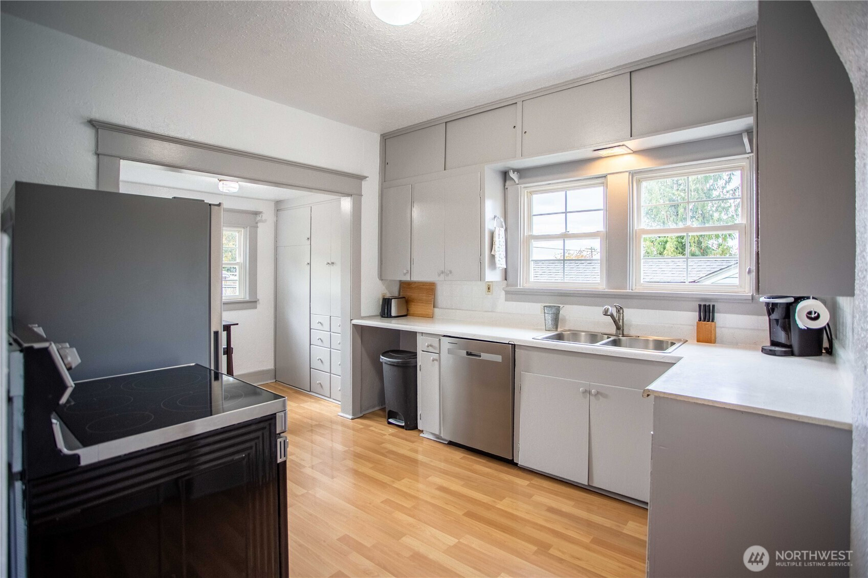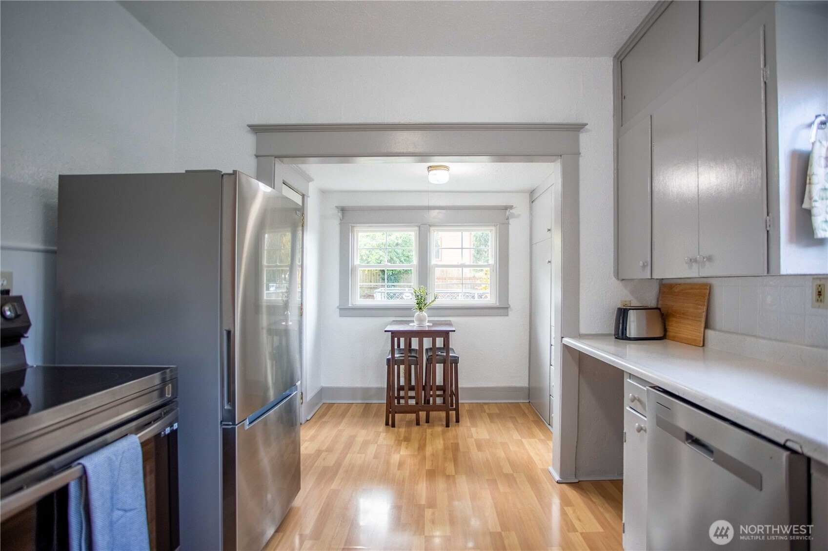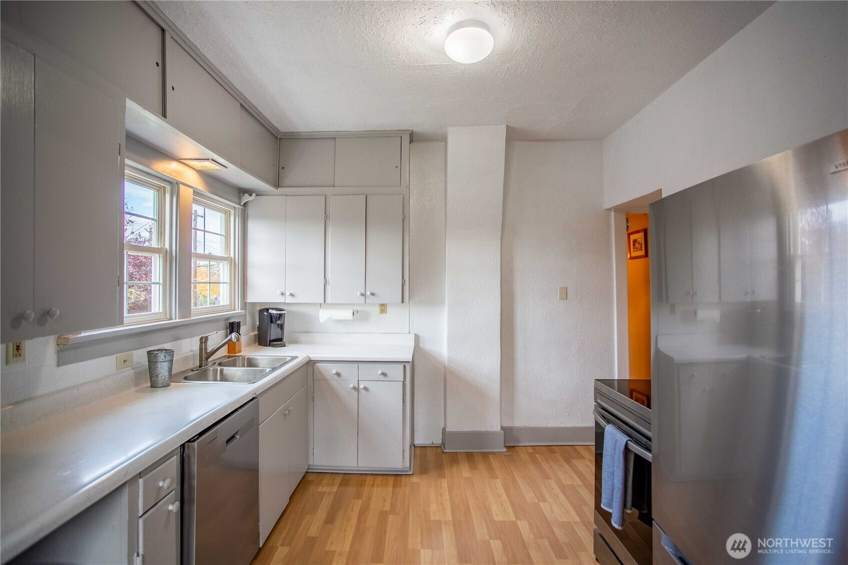 Charming 1925 Craftsman on a corner lot of the Hillside Historic District, first time on the market in 30 years! This home features high ceilings, warm natural light, spacious covered front and back porches perfect for BBQs and entertaining, and a beautifully landscaped yard with pear and plum trees plus extra garden space. Updates include new appliances, gutters, fold in multi-pane windows, bedroom carpet, and fresh paint on the porches and interior. Fully fenced and attached garage/unfinished basement space for storage, and a warm, friendly atmosphere close to schools and amenities. Home offers great bones and potential to build equity and make improvements. A rare blend of vintage charm and comfort, come fall in love before its gone!