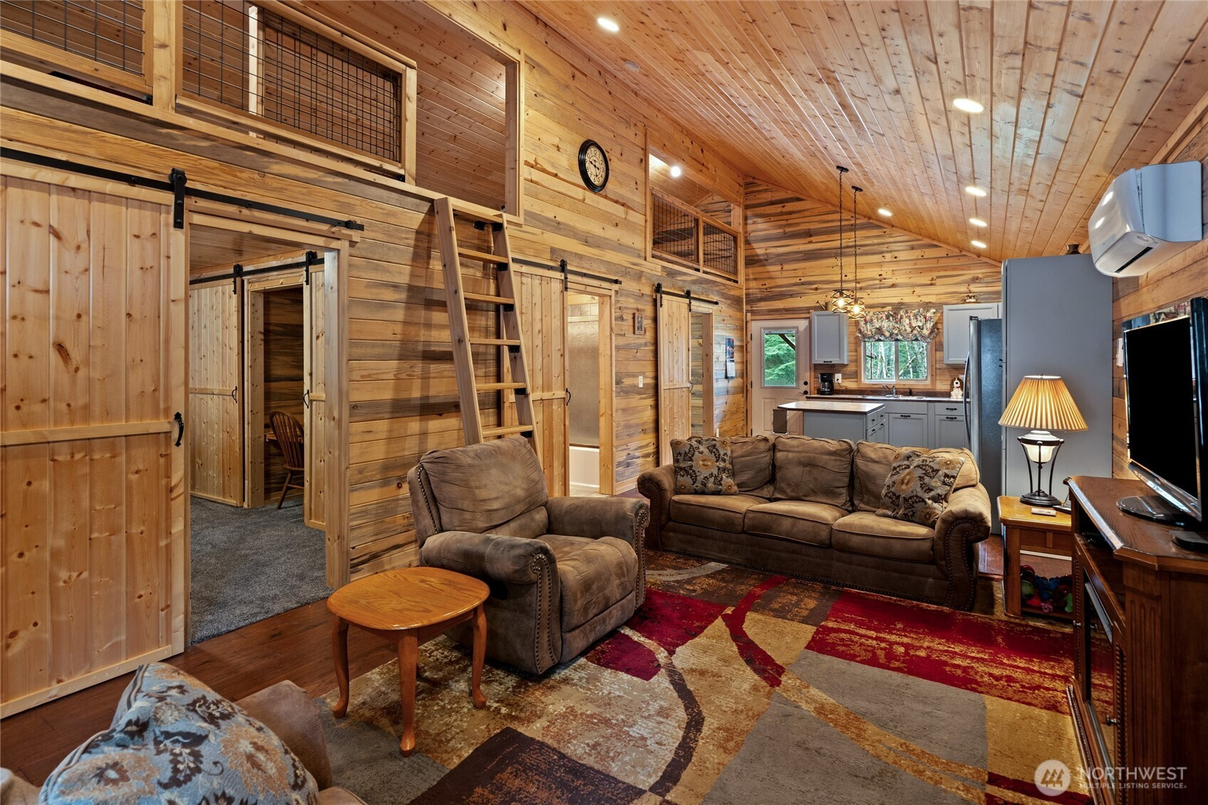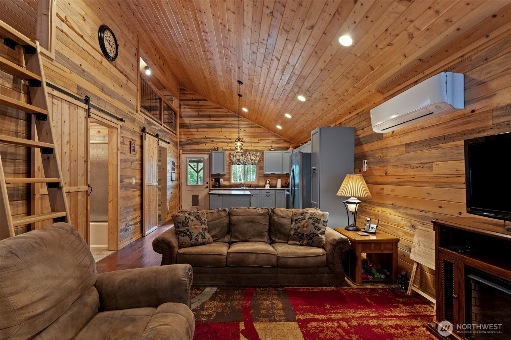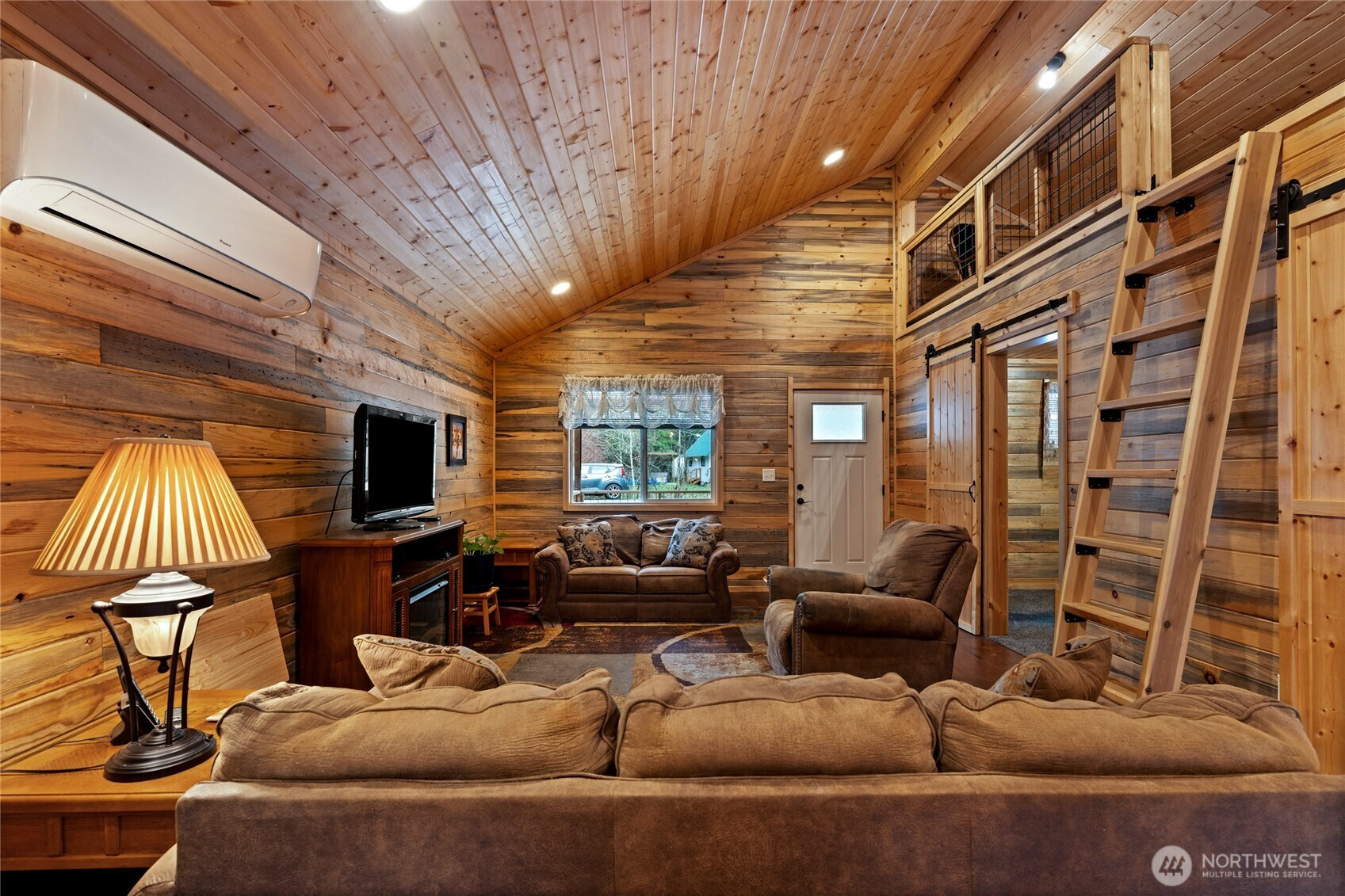 Nestled in the desirable Paradise Estates neighborhood this property exudes cabin charm. The interior of this home features an open floor plan with beautiful pine paneled walls and ceilings, two spacious bedrooms, one bathroom, as well as loft that spans the entire length of the home. In the back of the property you'll find a large covered back porch, that steps out to a fully fenced and gated backyard with a fire pit and two sheds. Additional features also include a metal roof, stainless steel appliances, a wired in generator for any power outages and ample parking in the front of the home. Paradise Estates has two private lakes, a covered picnic area and a playground. This property is just minutes from Mount Rainier National Park, Come see this home today and make your cabin dreams come true!