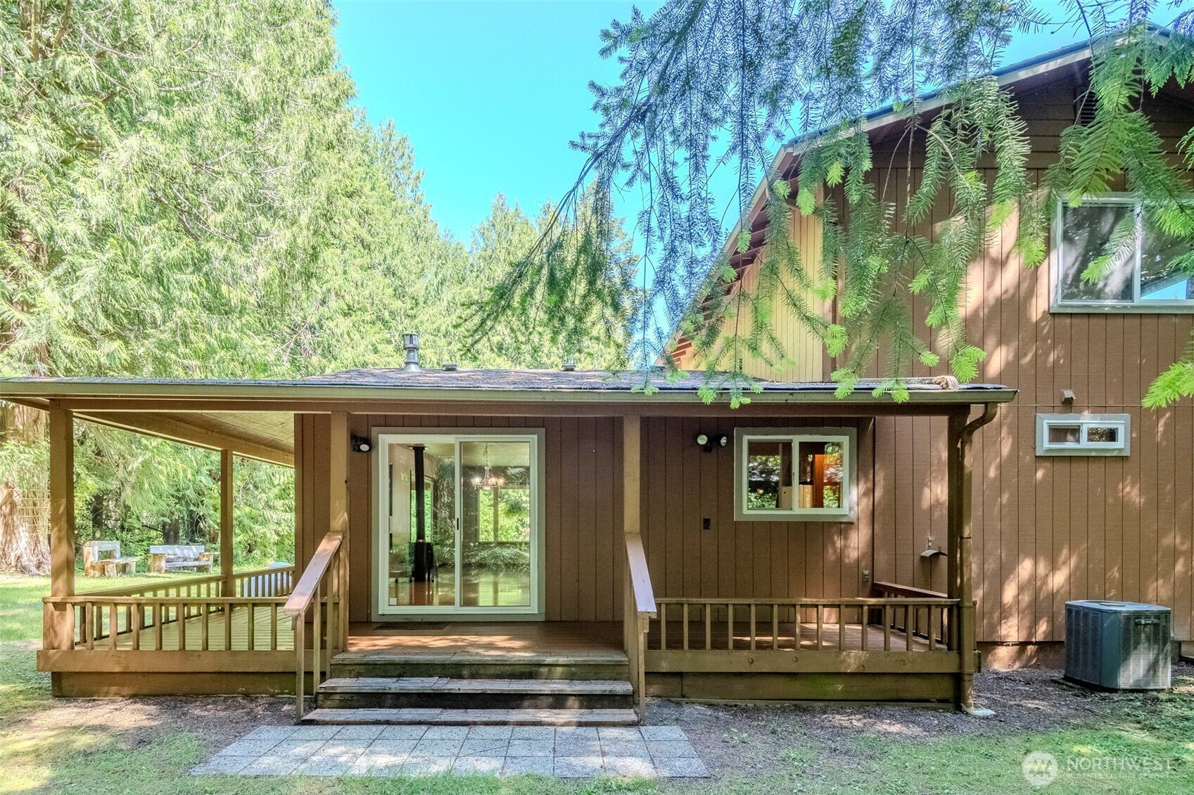 Discover your private sanctuary in this stunning estate, tucked away at the end of a dead end paved road and surrounded by nearly 10 acres of cedar and fir trees. This home seamlessly blends modern efficiency with PNW charm, featuring a classic covered wrap-around porch, newer energy-efficient windows, a newer roof, and a Trane heat pump with AC for year-round comfort. For cozy evenings, the freestanding propane stove provides a warm and inviting living space. Check out the extensive trail system throughout the property featuring both seasonal, and year-round creeks. Versatile outbuildings include a 900 sq ft two-car garage and shop, which houses a finished studio apartment complete with electric heat and water. Outdoor entertaining is effortless at the 320 sq ft powered gazebo, finished with a wood deck and festive party lights. For those dreaming of a homestead, the large chicken coop and irrigated raised-bed garden area are ready for your hobby farm ambitions. This meticulously maintained retreat offers a rare combination of seclusion, modern comforts, and functionality. Be sure to ask your agent for the complete list of extensive upgrades and features!
