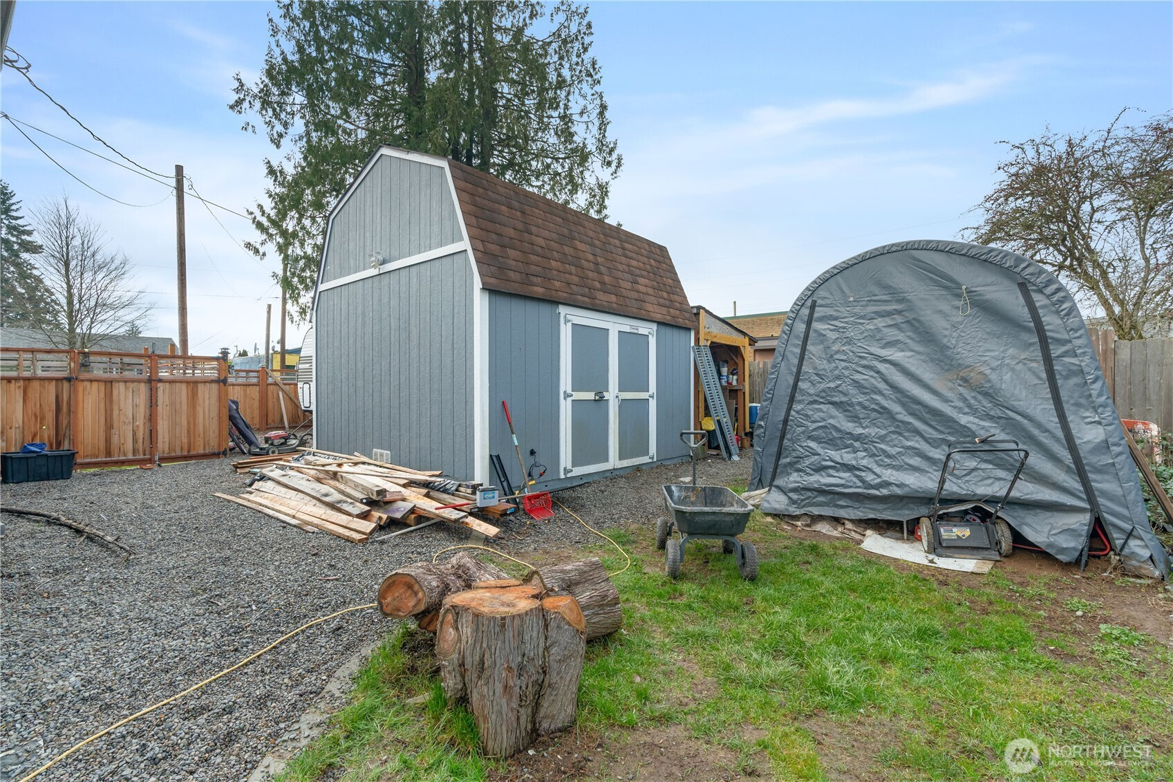 One level home offering 5 bedrooms and 2 bathrooms with room to spread out! It is situated on a big inviting corner lot, right in the heart of Napavine. The outdoor space has a fully fenced and level yard with 2 outbuildings, a green-house, covered cooking/bbq area, garden space & producing fruit trees, RV parking, new gravel and plenty of perimeter parking. You can't beat the location-close to convenient amenities & schools, way up on the hill with no worry of flooding! The exterior has had an overhaul including a new roof, gutters, Hardi plank siding, paint & trim, and a nicely updated covered front porch. The living room is spacious & lined with windows letting in the natural light, new flooring has been installed throughout the home. Come put your finishing touches on this classic 1930 built home, it is ready for new owners!