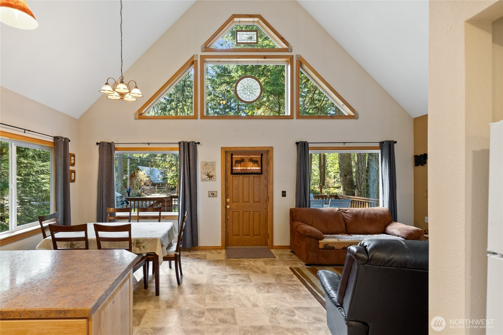Relax and unwind just minutes from Mt Rainier National Park! This charming cabin is the perfect outdoor retreat, showcasing pride of ownership and quality craftsmanship throughout. From the moment you arrive, you’ll notice the beautiful Alaskan white cedar siding, durable metal roof, and expansive front deck—ideal for enjoying the peaceful surroundings. Step inside to an inviting open-concept main living area with soaring ceilings, large windows for an abundance of natural light, and a cozy gas fireplace. The dining area flows seamlessly into the kitchen, featuring custom spalted alder cabinetry, a gas range, and ample storage space. The main floor also offers a spacious laundry room, a comfortable bedroom, and a full bath. Upstairs, the oversized loft with built-in storage/desk provides flexible space for guests, a home office, or additional bedroom. Being sold fully furnished—including everything you see, plus BBQ and a generator—this property is truly turnkey. Whether you're looking for weekend getaways, a full-time escape, or an easy Airbnb investment, this cabin is ready to enjoy. Paradise Estates community amenities include a private lake, clubhouse, covered picnic area, and playground—adding even more to love about this exceptional property!