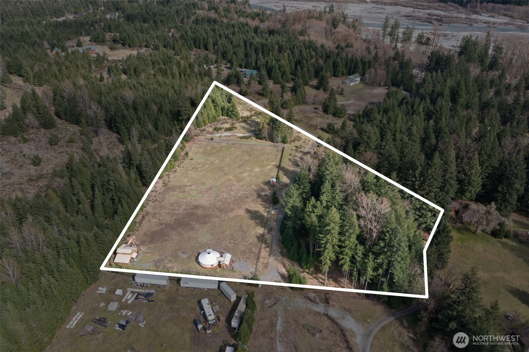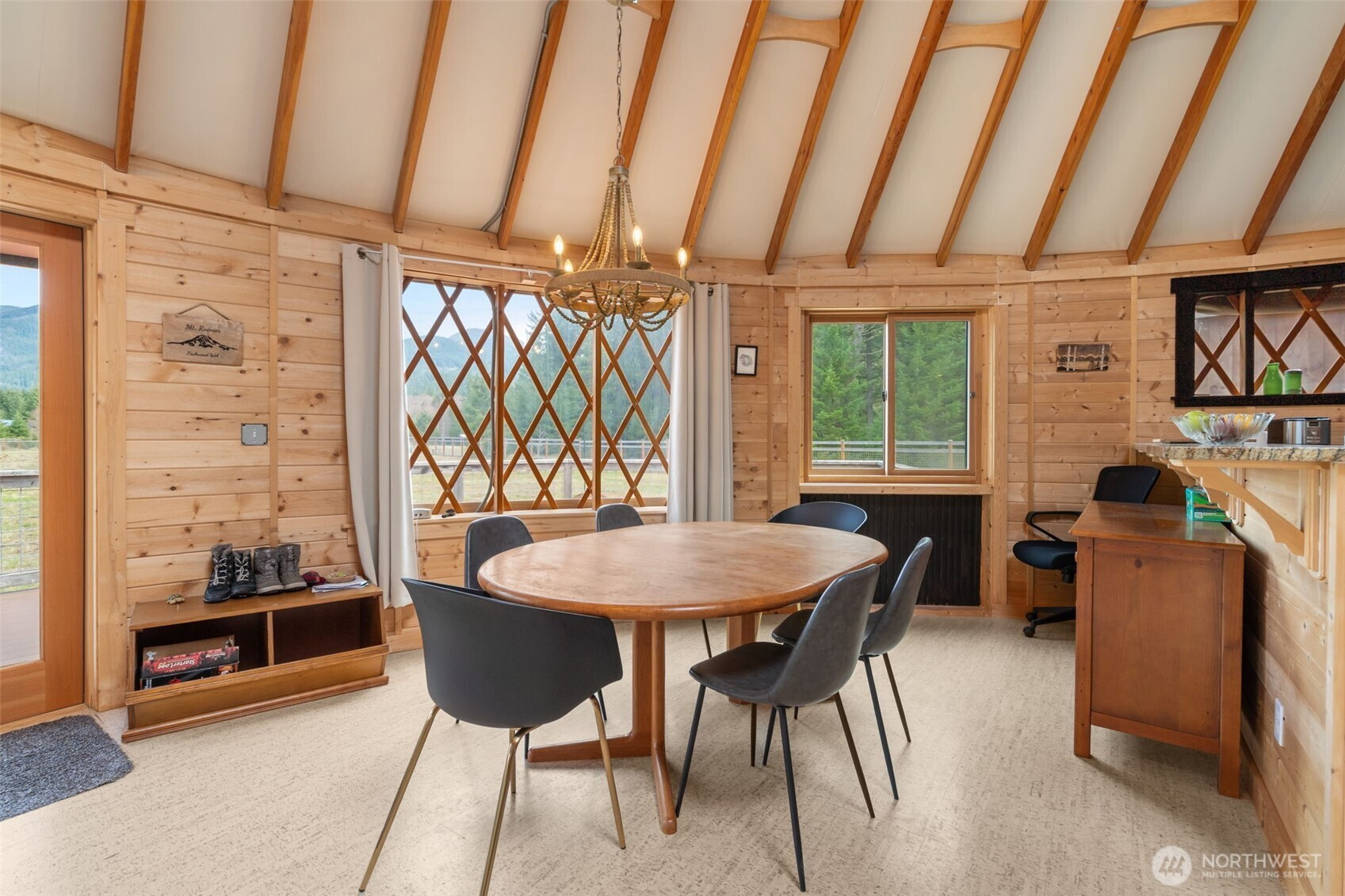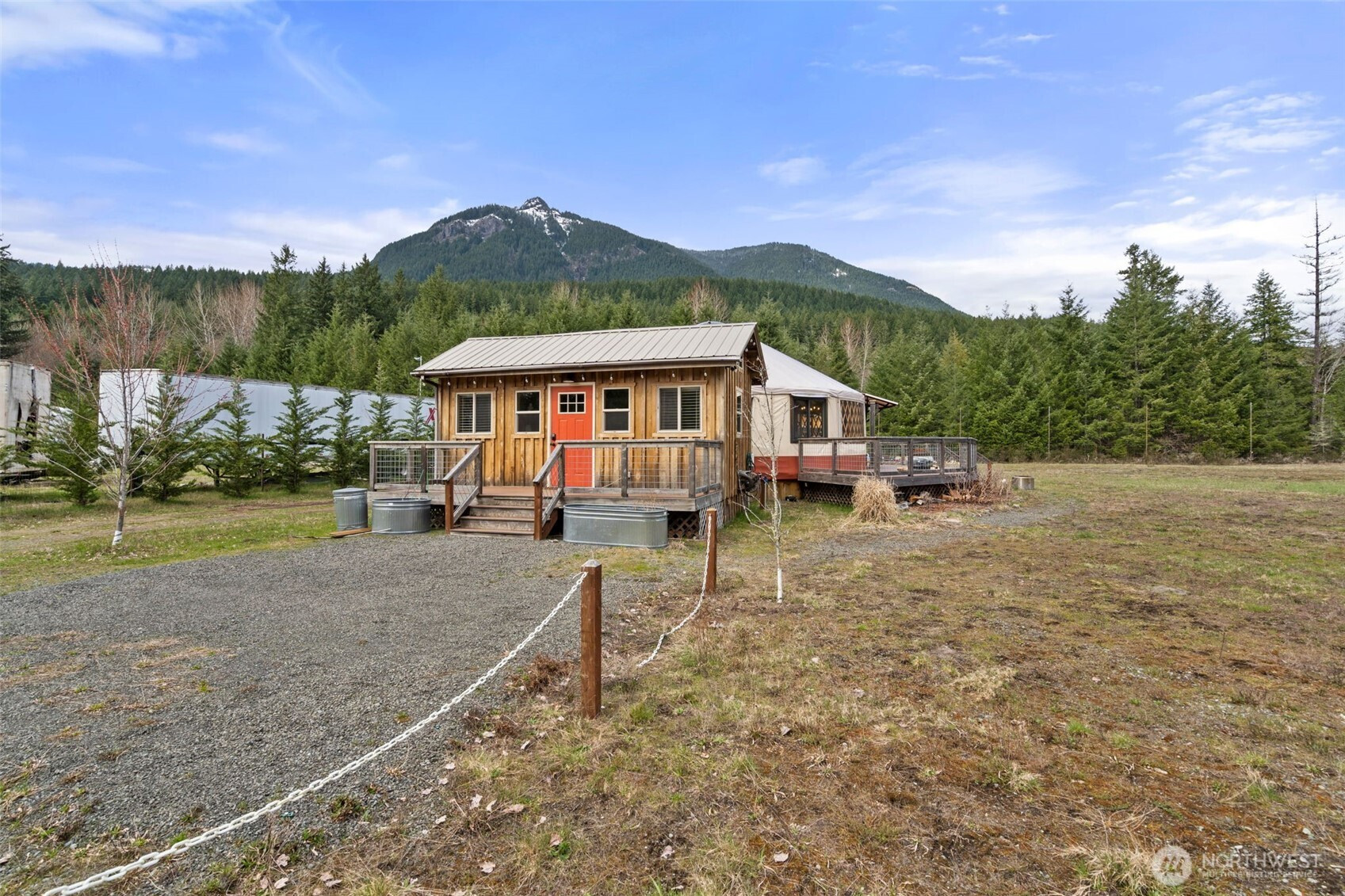Discover the rare versatility of this scenic 6-ACRE property, set in a quiet, desirable area with incredible territorial views and a peaceful seasonal creek. Thoughtfully improved, the property is ready to enjoy now while offering exceptional future potential. Infrastructure includes 200-amp power, a septic system with two tanks (approved for 6 bedrooms), and approximately 3 acres fenced. A road maintenance agreement is in place for the private road and small bridge, providing ease of access year-round. Existing structures support both comfortable living and income potential. A top-of-the-line Rainier Yurts model yurt is paired with a well-appointed bathhouse featuring two full bathrooms, plus a spacious deck to take in the surroundings. A storage building with additional cabin living space, bathroom and an RV hookup add flexibility for guests, rentals, or extended stays. The cabin apartment has rented consistently for several years. For those looking to build, the upside is significant. The property offers SUBDIVISION POTENTIAL for up to 3 additional homes and 2 ADUs, with plans for a 3-parcel short plat available upon request—ideal for creating a private compound or developing multiple homesites, including a high-end custom residence. Located just minutes from Mount Rainier National Park and White Pass Ski Area, this is a rare opportunity to enjoy as-is, generate income, or bring your dream build to life in the heart of Pacific Northwest recreation.