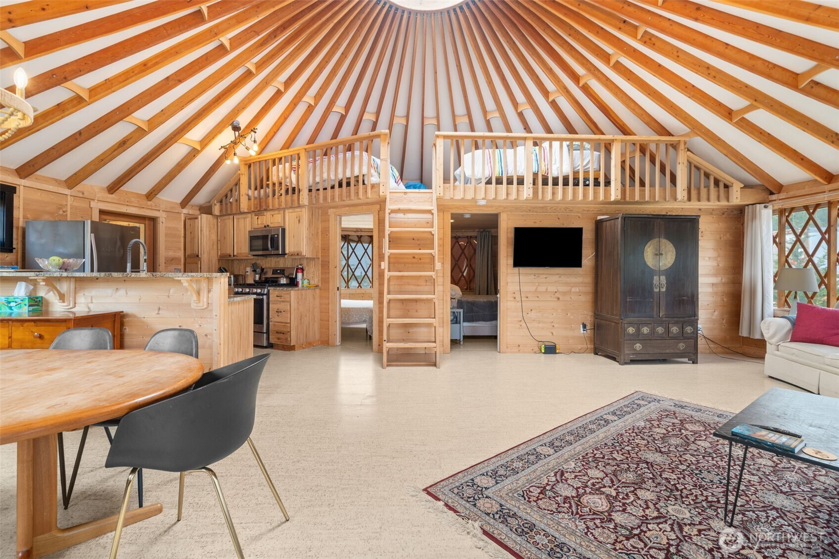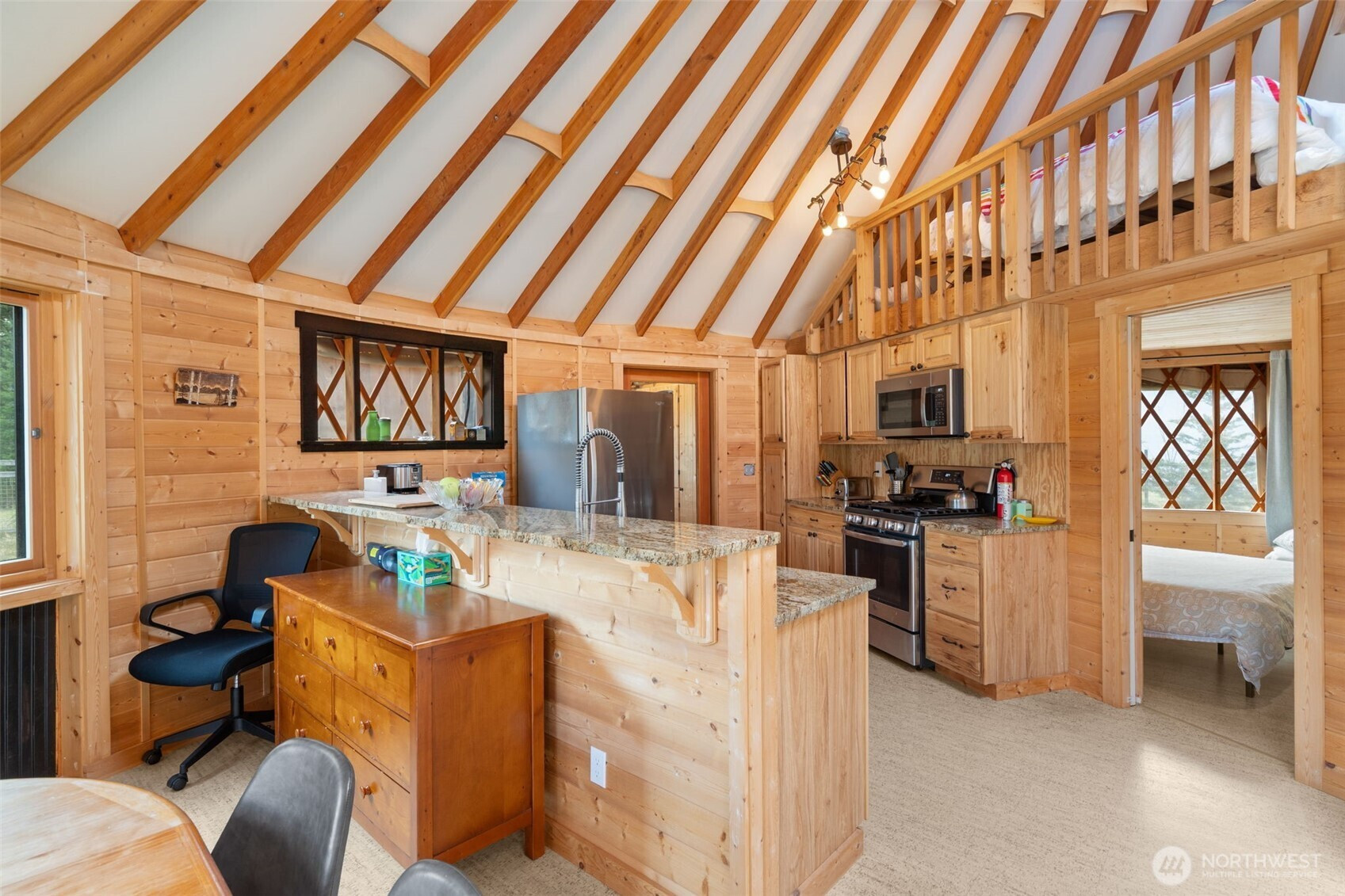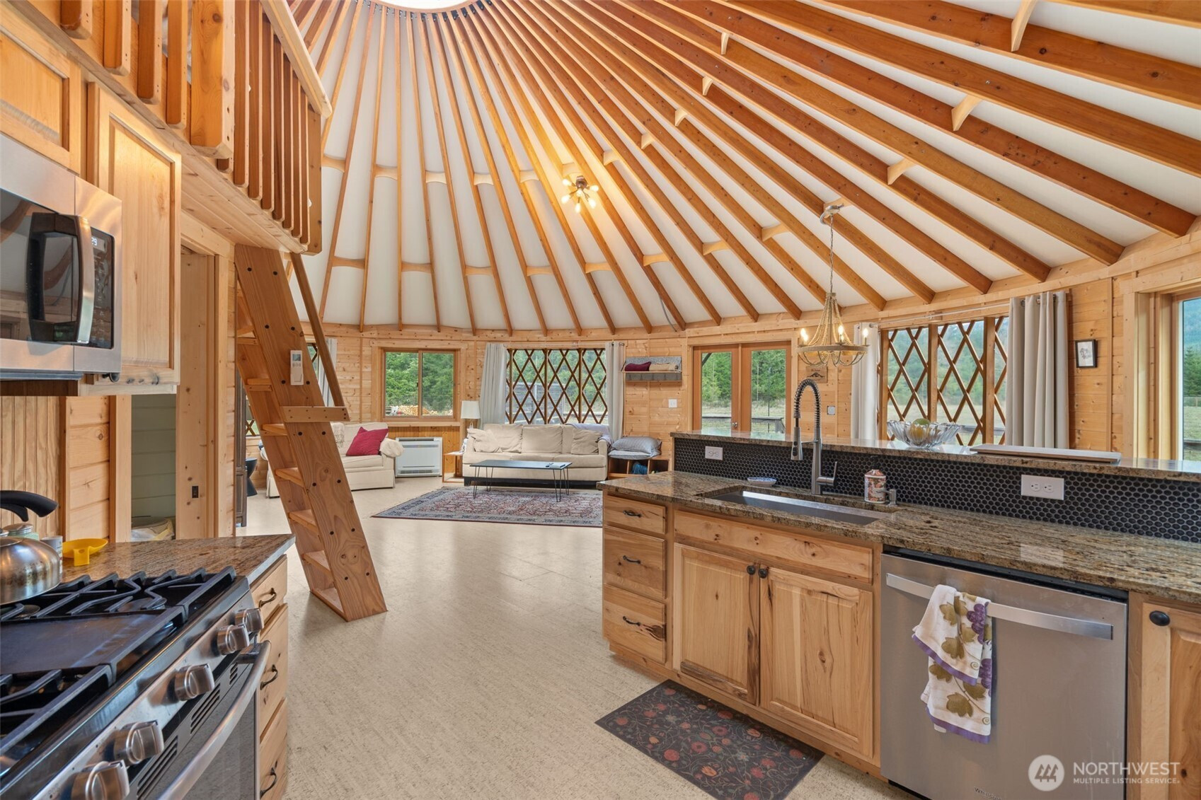 Discover the rare versatility of this scenic 6-ACRE property, set in a quiet, desirable area with incredible territorial views and a peaceful seasonal creek. Thoughtfully improved, the property is ready to enjoy now while offering exceptional future potential. Infrastructure includes 200-amp power, a septic system with two tanks (approved for 6 bedrooms), and approximately 3 acres fenced. A road maintenance agreement is in place for the private road and small bridge, providing ease of access year-round. Existing structures support both comfortable living and income potential. A top-of-the-line Rainier Yurts model yurt is paired with a well-appointed bathhouse featuring two full bathrooms, plus a spacious deck to take in the surroundings. A storage building with additional cabin living space, bathroom and an RV hookup add flexibility for guests, rentals, or extended stays. The cabin apartment has rented consistently for several years. For those looking to build, the upside is significant. The property offers SUBDIVISION POTENTIAL for up to 3 additional homes and 2 ADUs, with plans for a 3-parcel short plat available upon request—ideal for creating a private compound or developing multiple homesites, including a high-end custom residence. Located just minutes from Mount Rainier National Park and White Pass Ski Area, this is a rare opportunity to enjoy as-is, generate income, or bring your dream build to life in the heart of Pacific Northwest recreation.