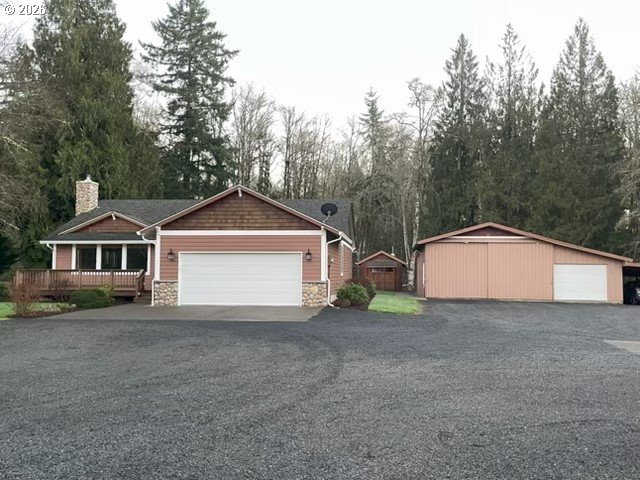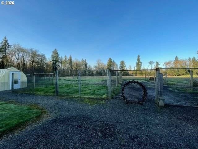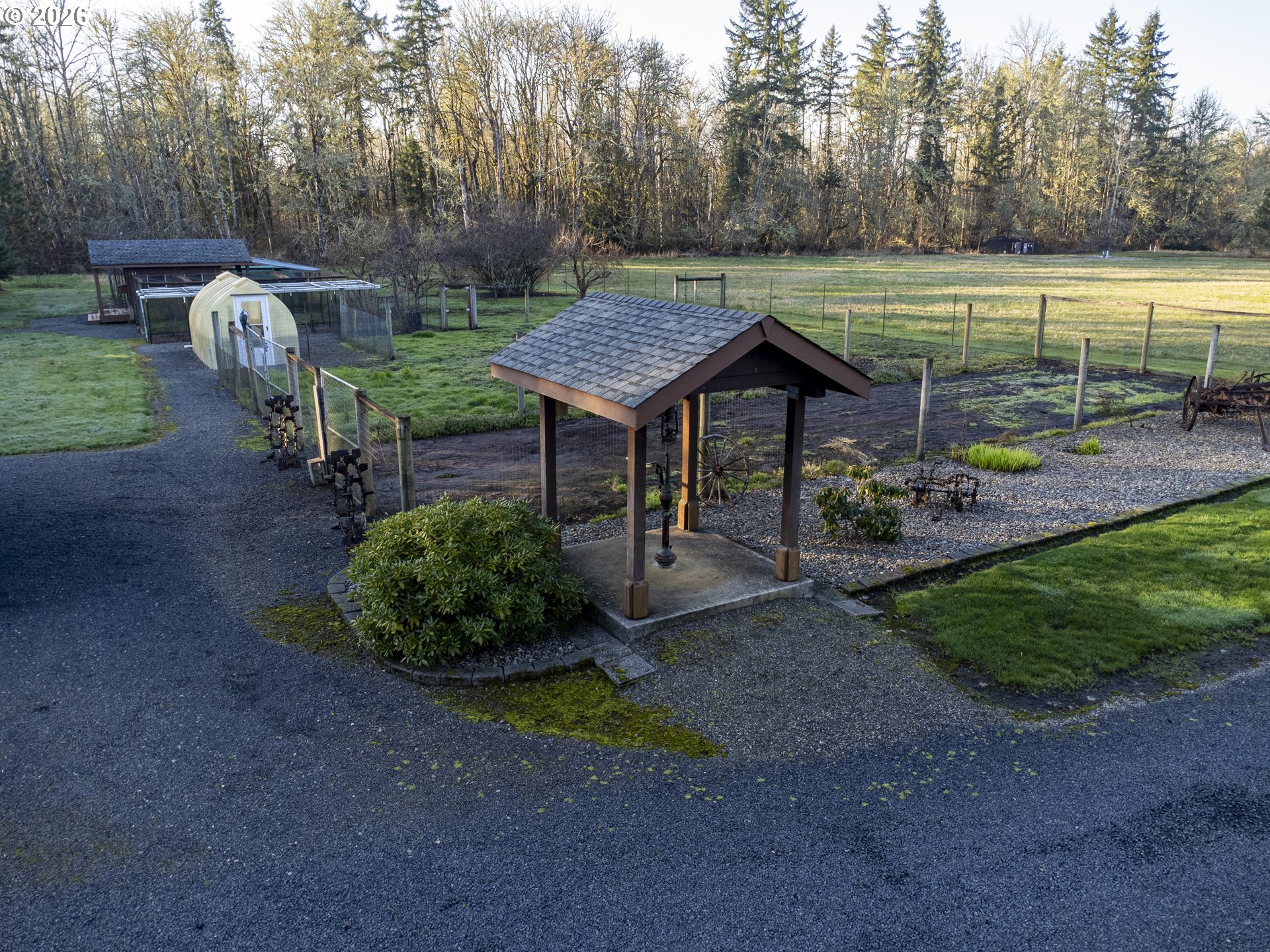This gorgeous and immaculate 3 bedroom, 2 bath home blends comfort, privacy, and peaceful country living just three miles from I 5, yet is completely secluded. The warm living room features a cozy wood stove and a beautiful stone hearth beneath vaulted ceilings. An open layout connects the family room, dining area, and kitchen, creating an inviting space for entertaining. Step outside to a quiet back patio, a spacious yard, and a relaxing sauna with its own shower. For year round comfort, the home includes a mini split heat pump system and a central vacuum system. The property offers a 2 car garage, a high ceiling 36x36 ft shop with wood stove, a storage shed, a large chicken coop, a generous garden area, and a greenhouse. The serene 8.77 acres of flat, usable land include a secondary well with a hand pump. A gated drive and security system provide peace of mind, while covered parking for nine vehicles, RV parking, and generator readiness add convenience. The property also includes two cords of firewood. A fruit orchard completes this peaceful retreat.