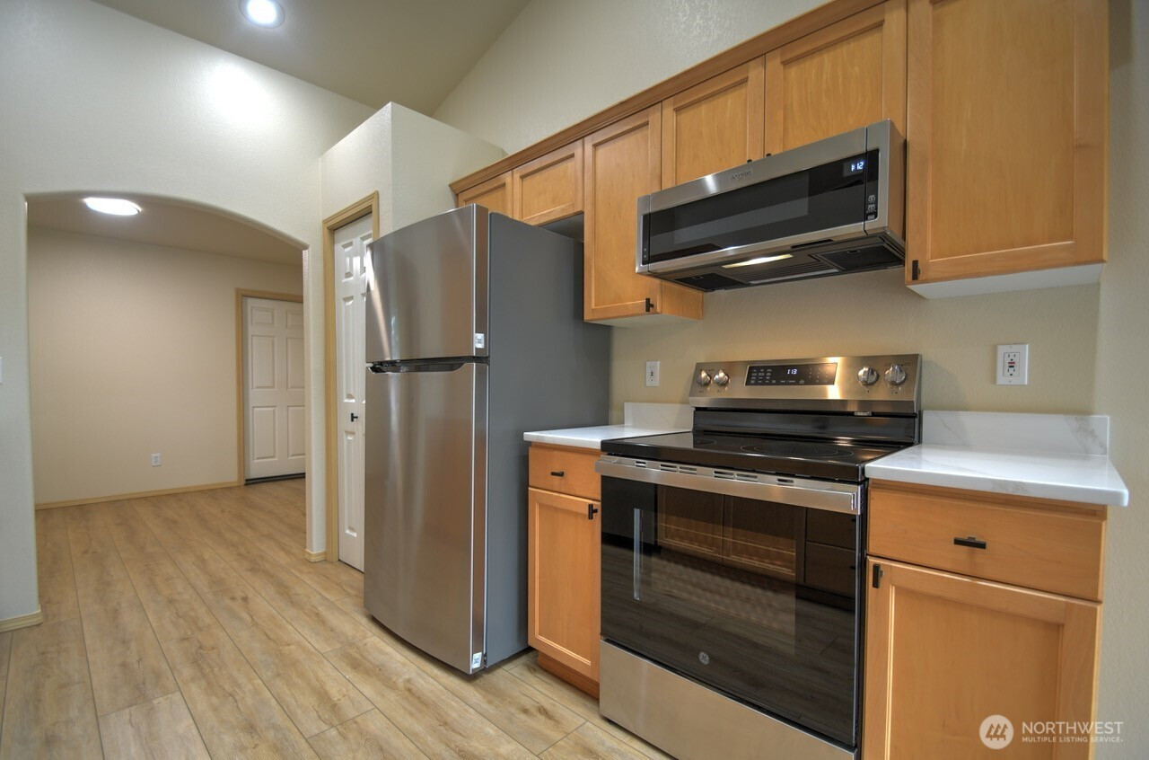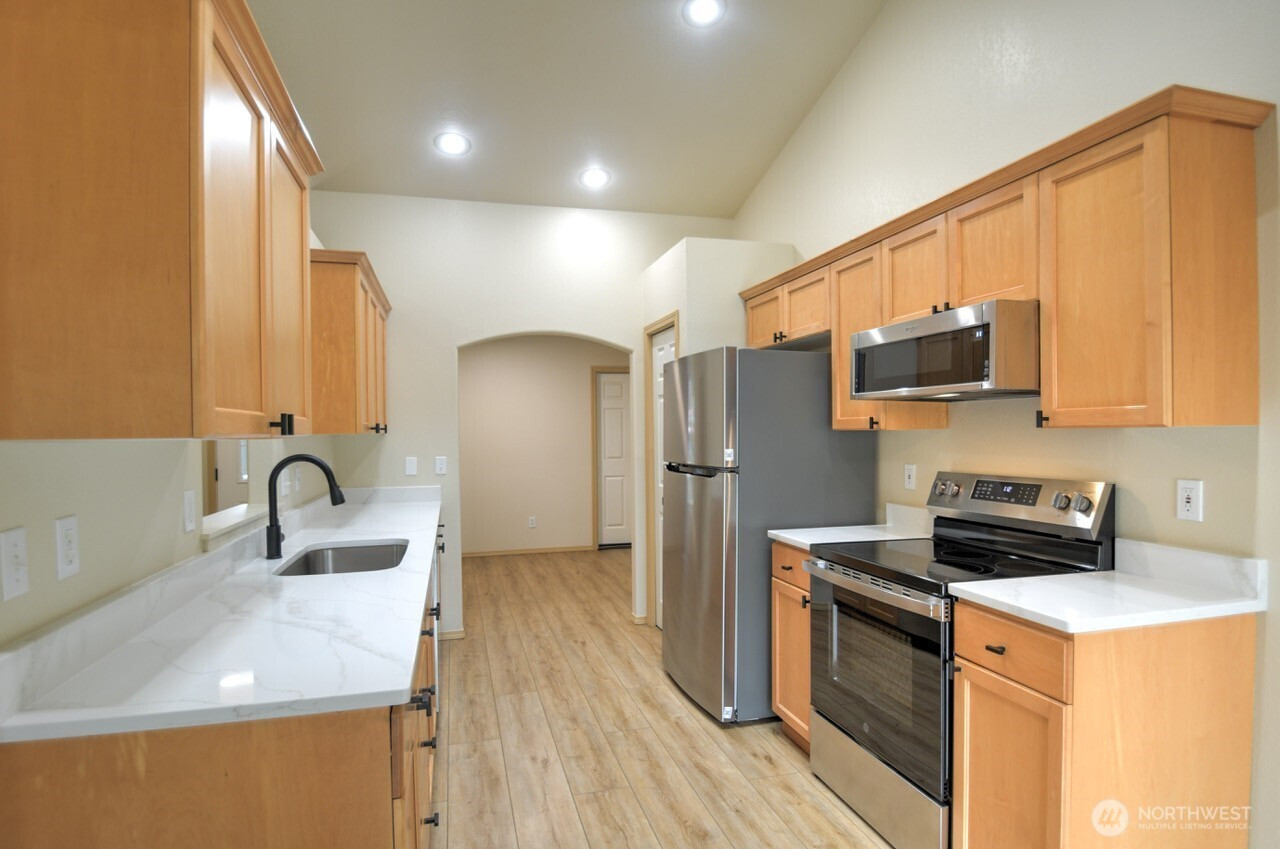 Looking for a beautiful home that is low maintenance? Look no further! 3 bed, 2 bath, 1416 sq ft condo with an attached 2 car garage. No step entrance into this rambler that has fresh paint, planked flooring, new countertops, and appliances. A new deck that overlooks the backyard. Newer roof and well-maintained siding and exterior paint. Gas fireplace in the living room with stone surround. Low condo dues that include insurance and yard care. Extra bonus of selling offering financing with 20% down, and 7% interest! Located just minutes from town, but in a quiet setting.