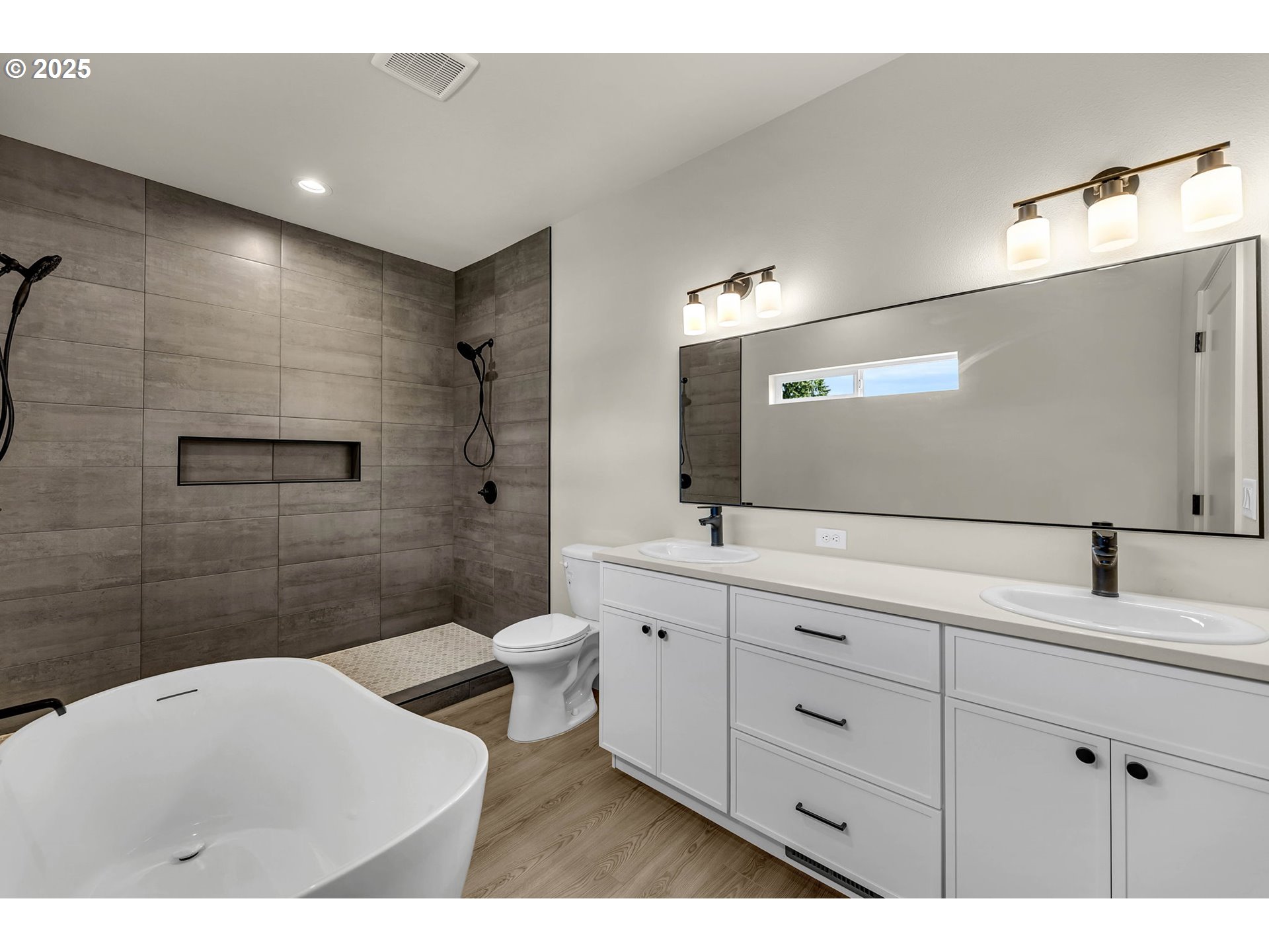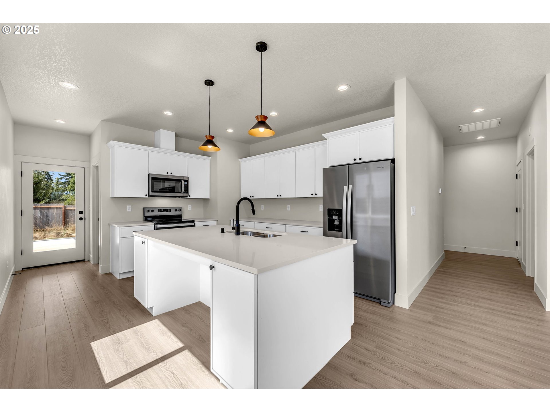 (503) 893-8874Welcome to this brand-new 1,631 sq. ft. single-level home in the desirable Winlock Heights community. Thoughtfully designed with zero-entry steps from the garage, this home offers comfort, style, and accessibility. Featuring 3 bedrooms and 2 bathrooms, the open floor plan provides a bright and spacious layout. The kitchen is perfect for entertaining with a large island with eat-at bar, quartz countertops, stainless steel appliances, and a walk-in pantry. The primary suite is a true retreat with a soaking tub, walk-in tile shower with double shower heads, dual vanity, and a generous walk-in closet. Efficient year-round comfort is provided by a heat pump forced air system. Sitting on an almost quarter-acre lot, the property includes a fully fenced backyard, large covered back patio and fresh sod in the front yard, offering curb appeal and outdoor space ready to enjoy. Modern, functional, and move-in ready—this home has it all!