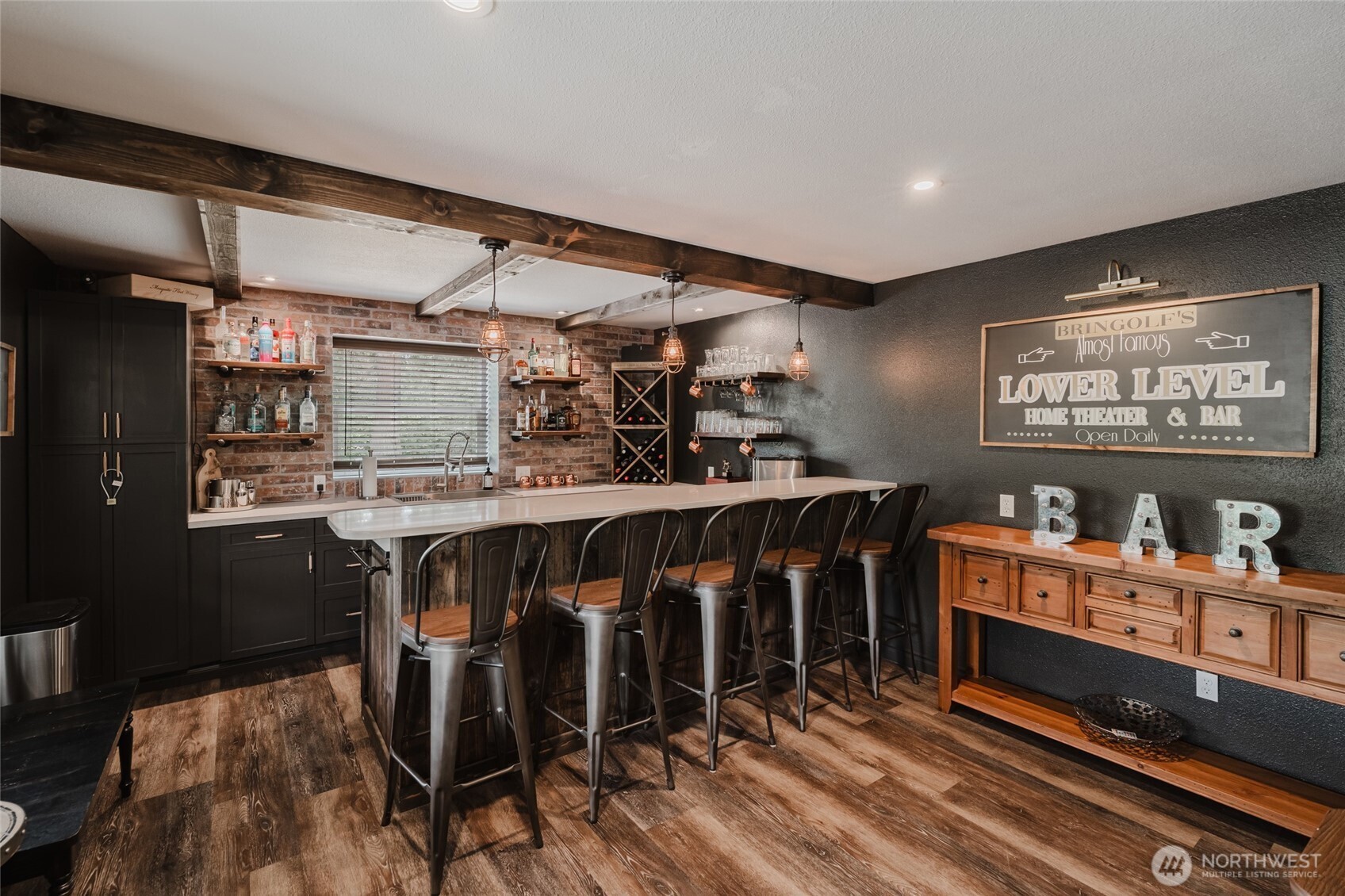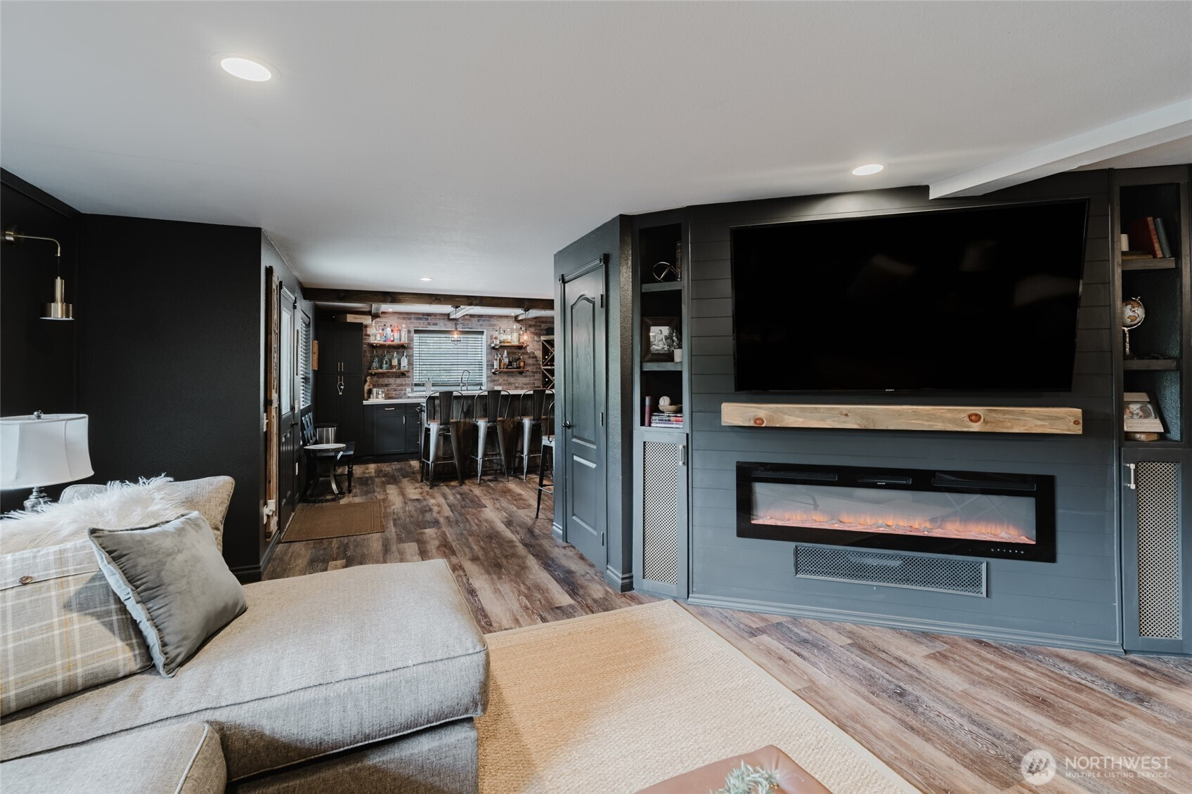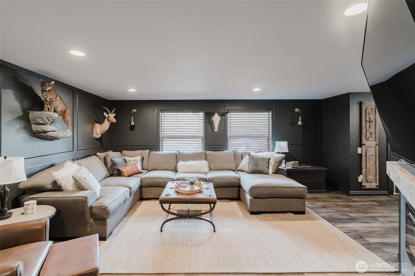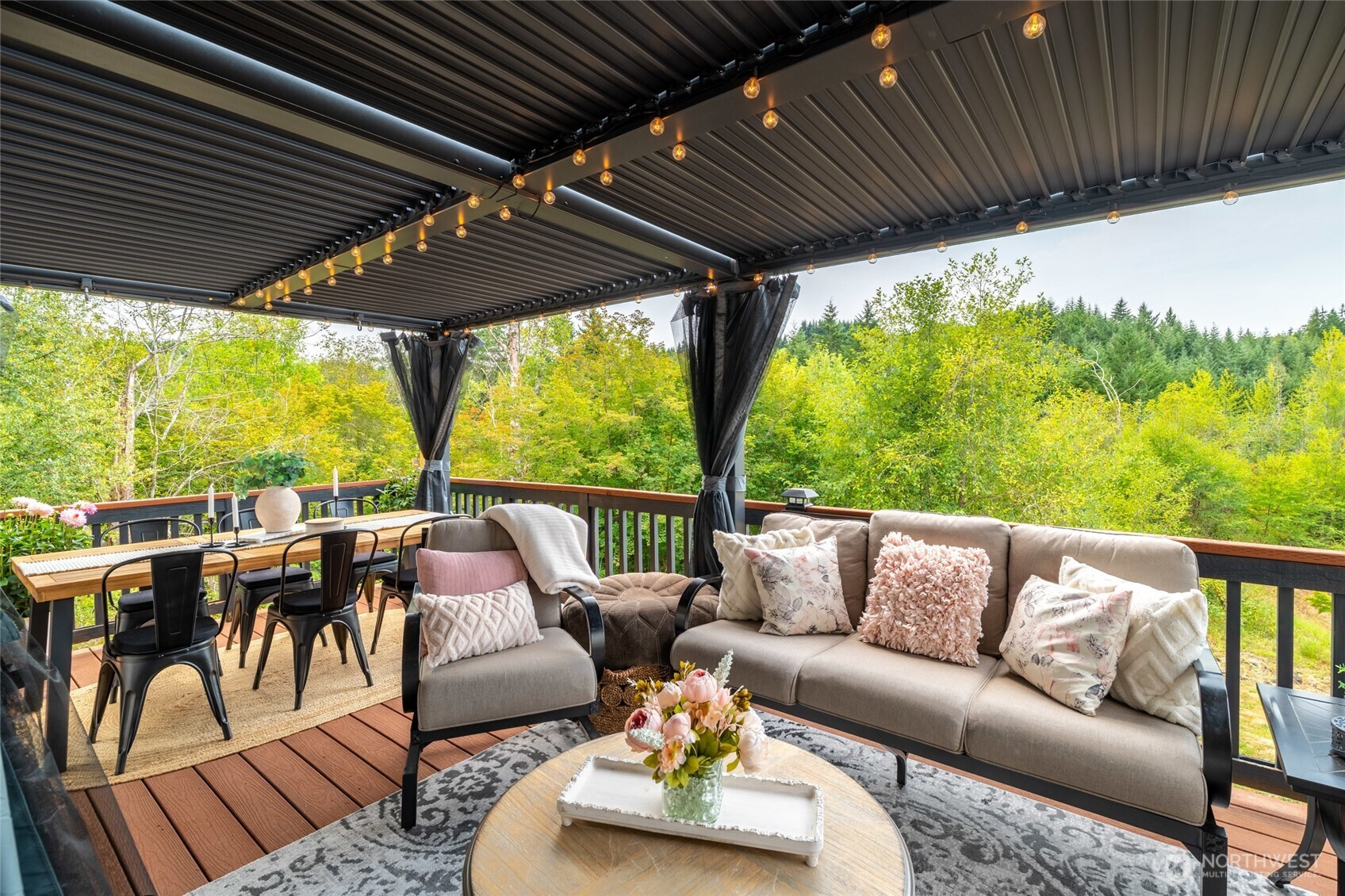 Charming & beautifully renovated home nestled on 5 private, tree-lined acres, offering space, flexibility, and endless possibilities. With 3,046 sq ft, this property features 2 spacious bedrooms plus a versatile bonus room (could be a potential 3rd bedroom) & office/ craft room, 2.25 bathrooms, multiple living areas, & flexible spaces that could easily accommodate additional sleeping or workspace needs. The luxurious primary suite includes a walk-in closet & spa-inspired bath with dual sinks, soaking tub, & rain shower. The updated kitchen shines with quartz countertops, engineered hardwood floors, under-cabinet lighting, and a generous walk-in pantry, creating the perfect space for everyday living and entertaining. Enjoy two separate living areas, including a fully finished lower-level family room complete with an electric fireplace and full bar, ideal for movie nights, gatherings, or extended living space. A bonus room currently used as a gym, along with an additional office/den, provides incredible flexibility for work-from-home, hobbies, or expanded living options. Step outside to an expansive wrap-around deck with a 10x20 louvered gazebo, perfect for enjoying the peaceful surroundings. The impressive 24x48 three-bay shop with RV hookups offers abundant space for storage, projects, or recreational vehicles. Recent updates include a new roof in 2022, making this move-in ready property the perfect blend of comfort, privacy, & functionality just minutes from town or I-5.