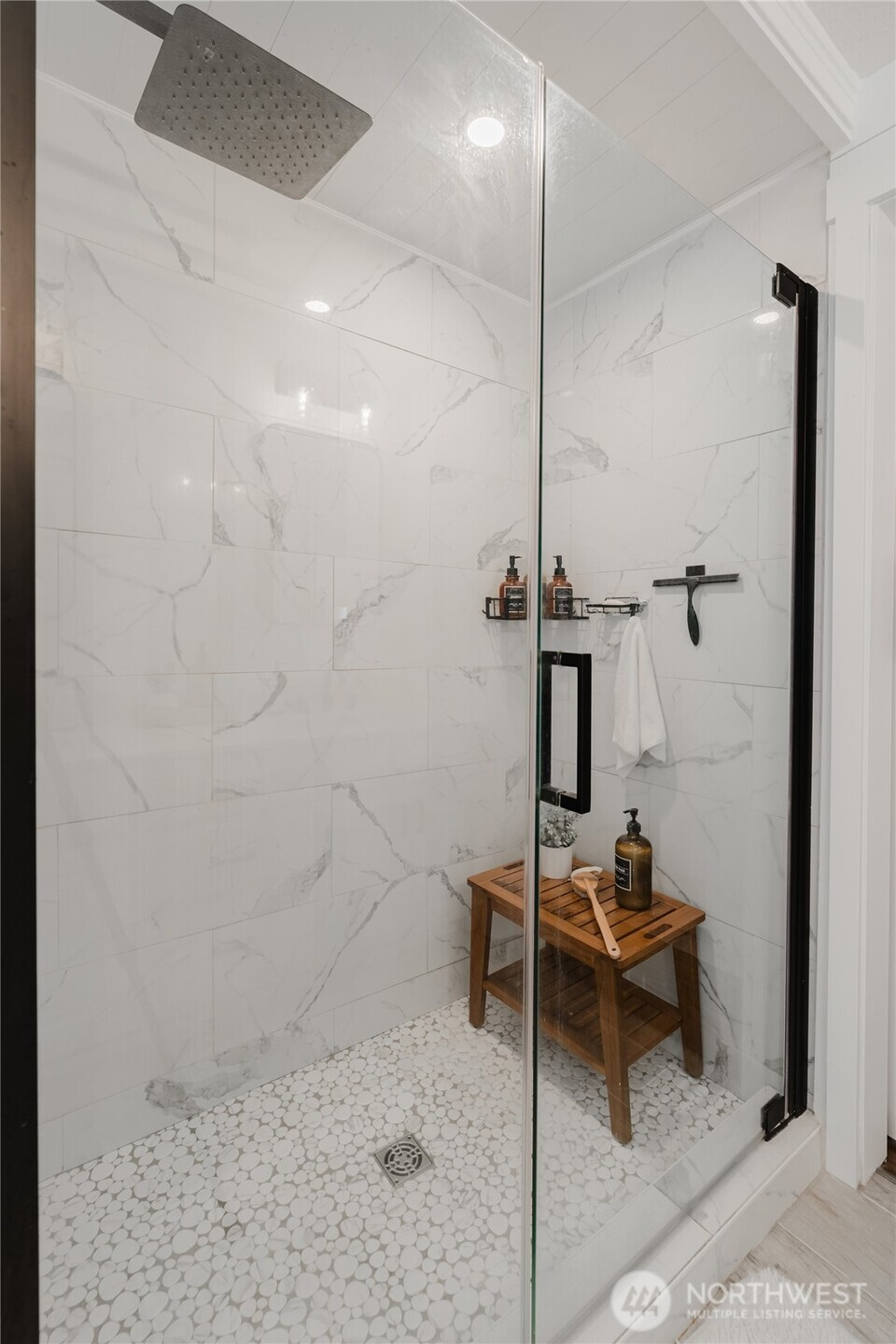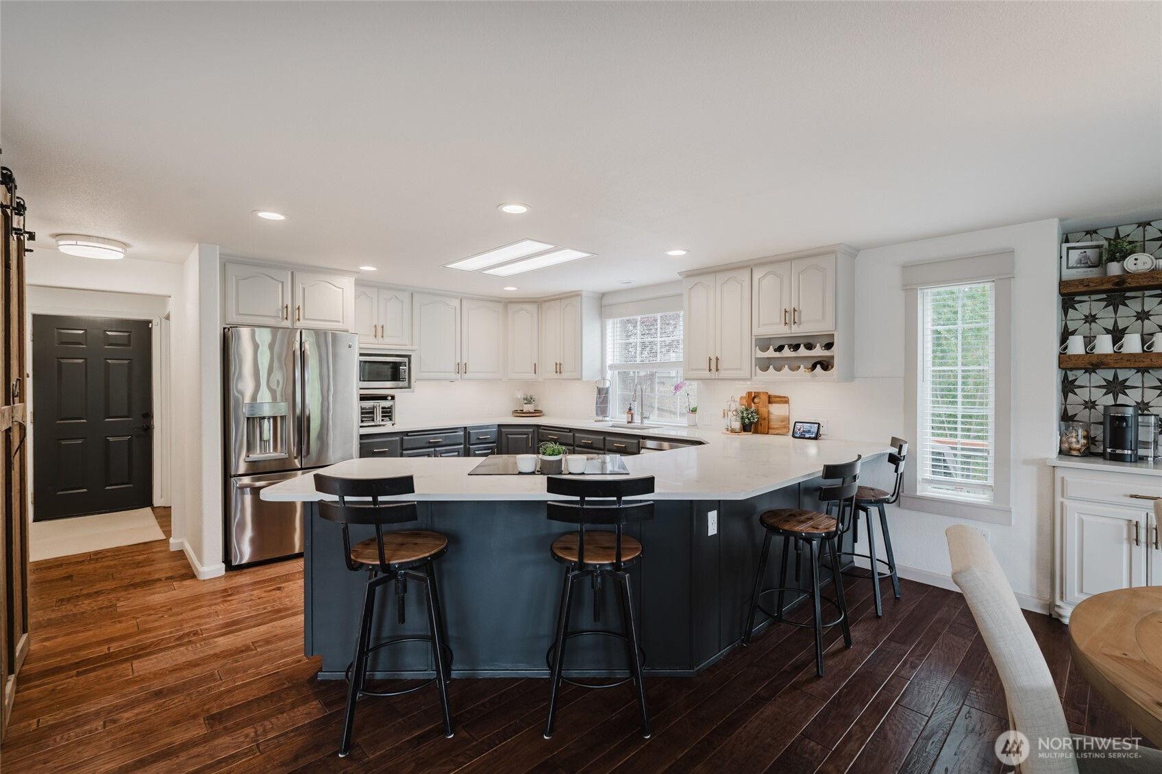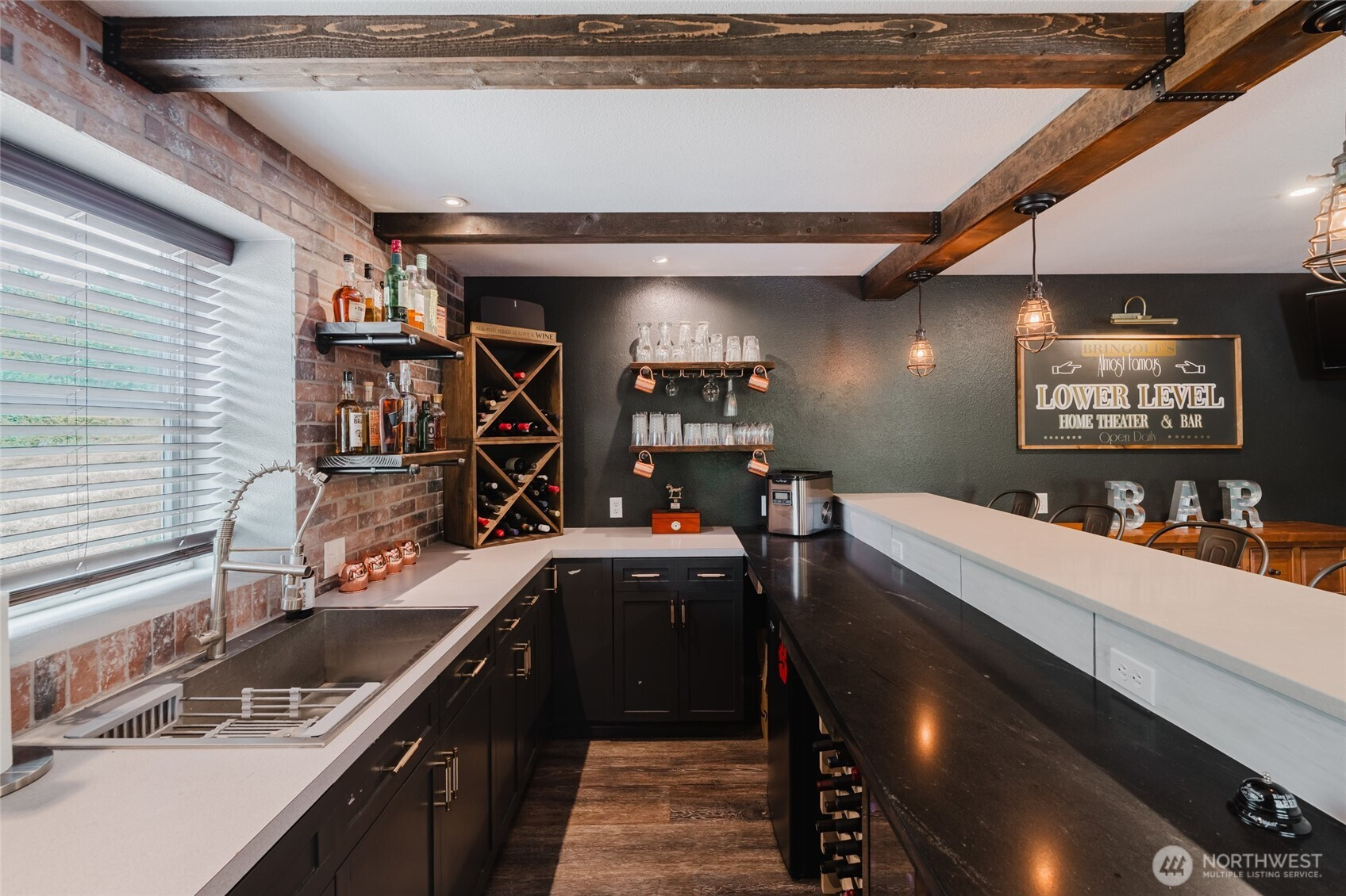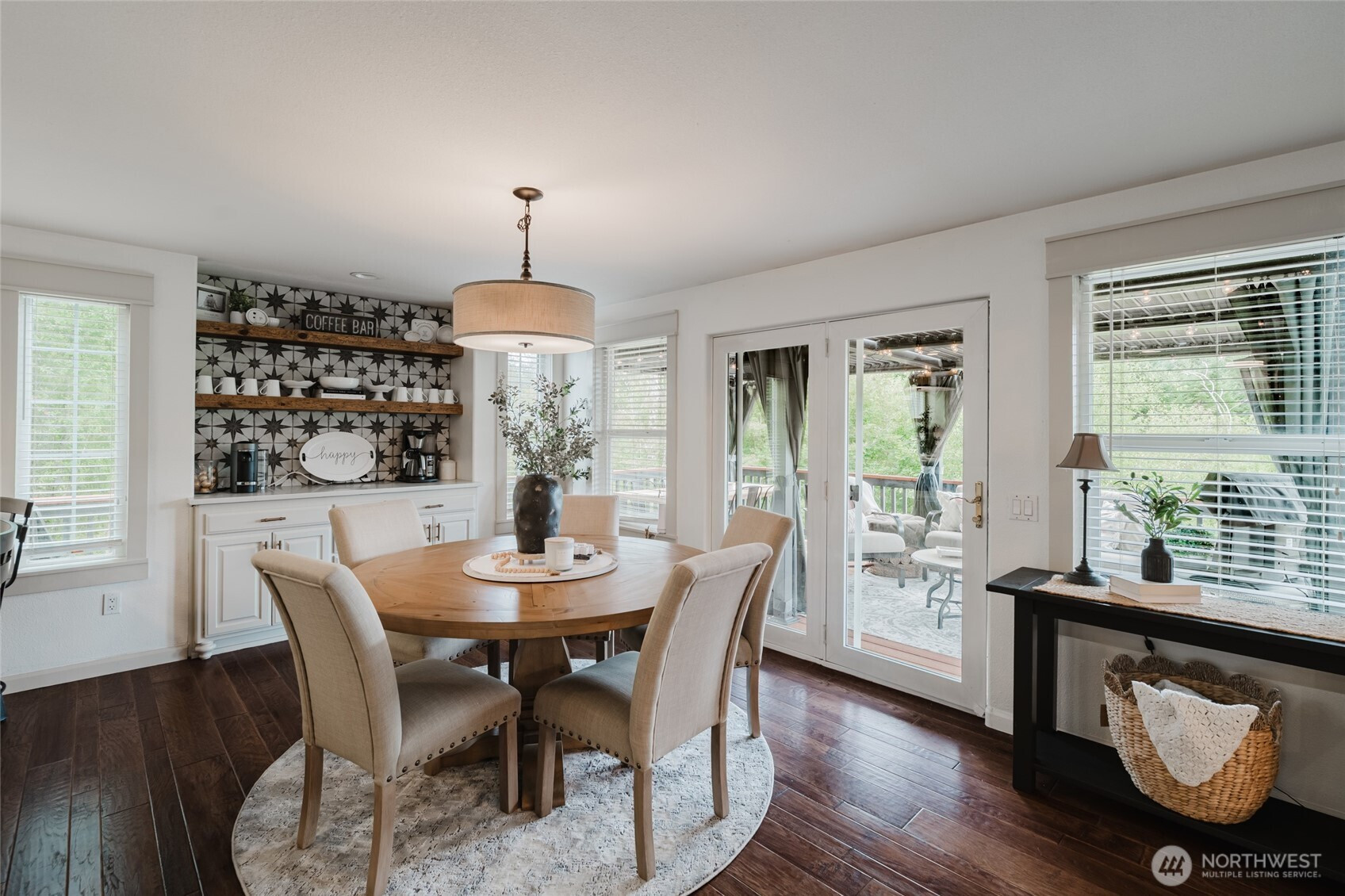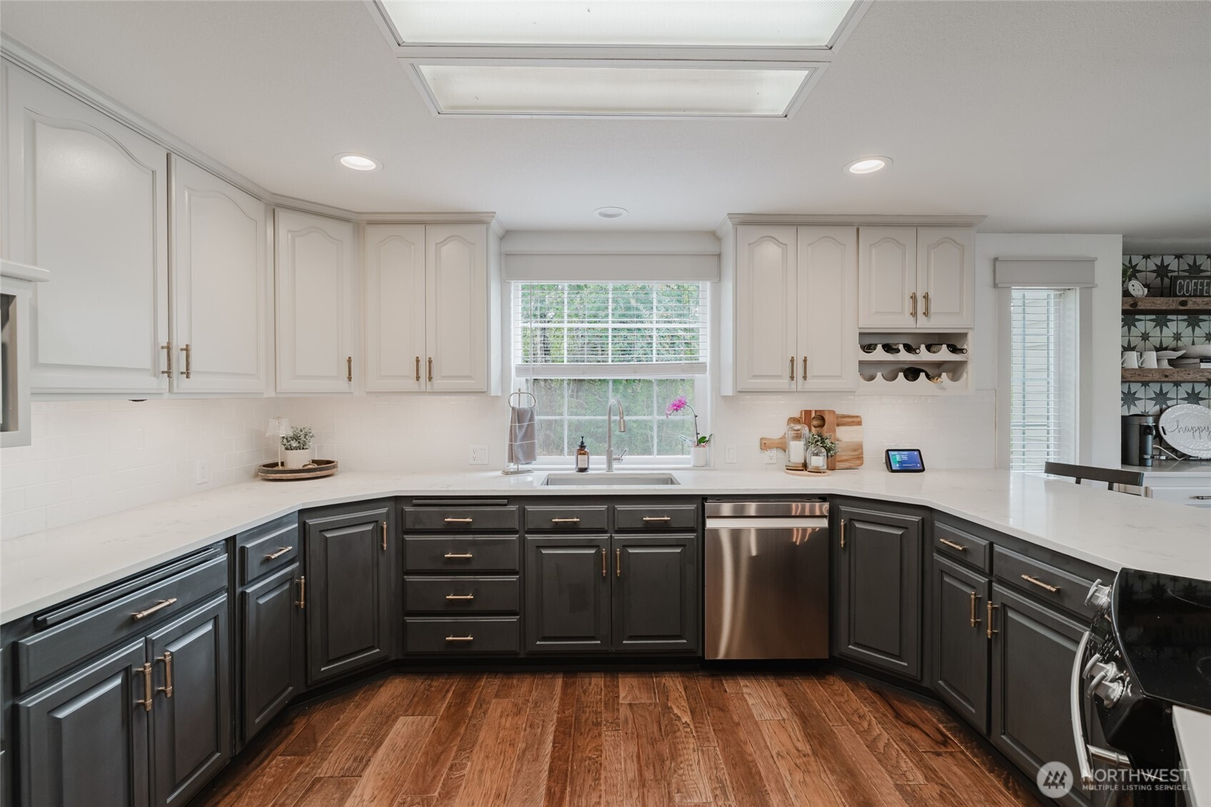 Charming & beautifully renovated home nestled on 5 private, tree-lined acres, offering space, flexibility, and endless possibilities. With 3,046 sq ft, this property features 2 spacious bedrooms plus a versatile bonus room (could be a potential 3rd bedroom) & office/ craft room, 2.25 bathrooms, multiple living areas, & flexible spaces that could easily accommodate additional sleeping or workspace needs. The luxurious primary suite includes a walk-in closet & spa-inspired bath with dual sinks, soaking tub, & rain shower. The updated kitchen shines with quartz countertops, engineered hardwood floors, under-cabinet lighting, and a generous walk-in pantry, creating the perfect space for everyday living and entertaining. Enjoy two separate living areas, including a fully finished lower-level family room complete with an electric fireplace and full bar, ideal for movie nights, gatherings, or extended living space. A bonus room currently used as a gym, along with an additional office/den, provides incredible flexibility for work-from-home, hobbies, or expanded living options. Step outside to an expansive wrap-around deck with a 10x20 louvered gazebo, perfect for enjoying the peaceful surroundings. The impressive 24x48 three-bay shop with RV hookups offers abundant space for storage, projects, or recreational vehicles. Recent updates include a new roof in 2022, making this move-in ready property the perfect blend of comfort, privacy, & functionality just minutes from town or I-5.