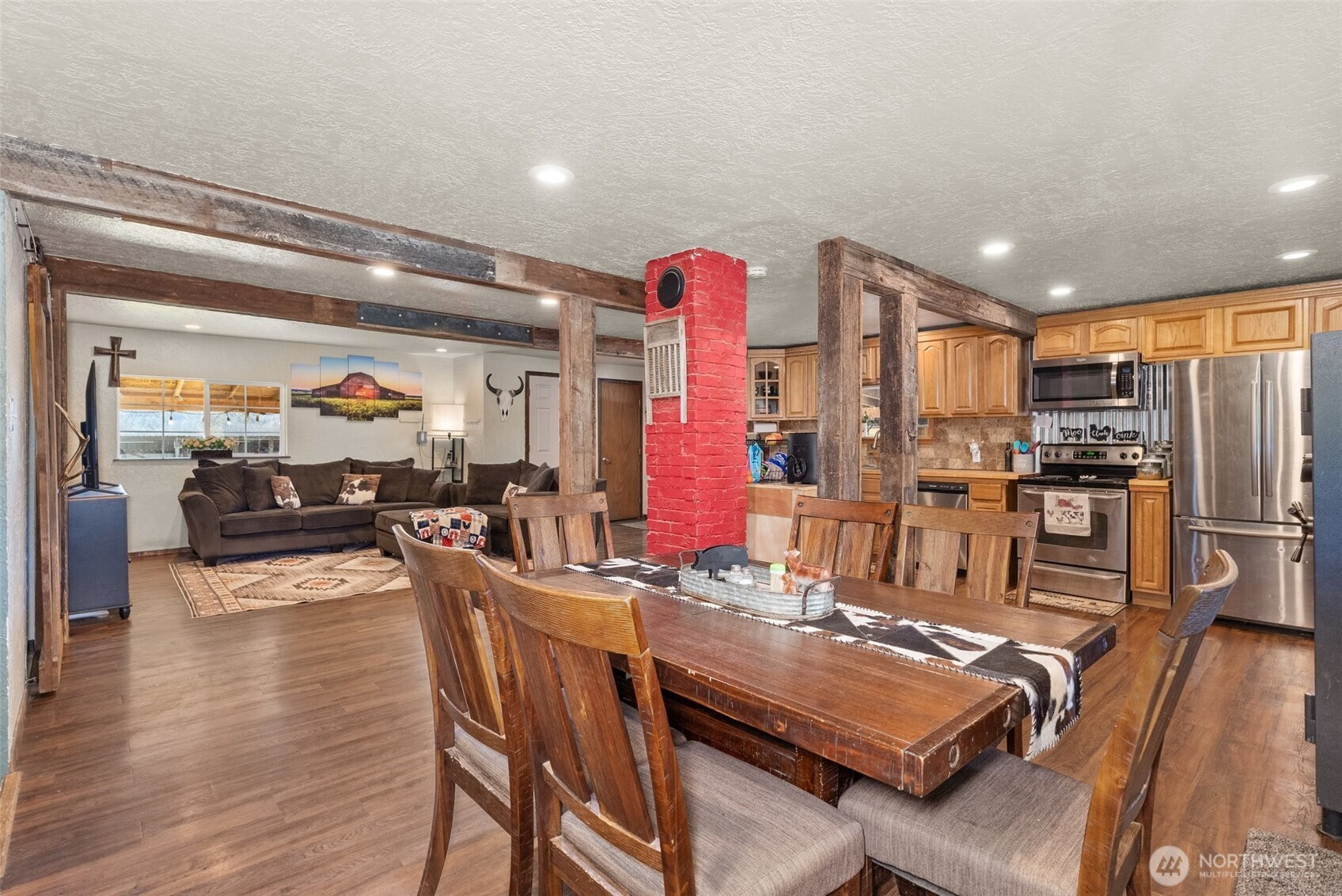 Don’t miss this charming farmhouse on nearly 5 acres, blending comfort, function, and country living. Offering 2,072 sq. ft. of open-concept space, the main level features inviting living areas and a fully finished basement with 2 bedrooms and a bonus room—perfect for guests or hobbies. The entire upper level is a spacious primary suite, creating a private retreat. Recent updates include a new roof, a ductless heat pump with A/C, a new water heater, a 3-bedroom septic system in 2022, and brand new exterior paint. Enjoy the wrap-around covered porch, patio, 4-stall barn with hay shed, cross-fenced pastures, outdoor arena, and shop—plenty of space for animals, projects, and all your toys. Peaceful country setting with lots of room to grow.