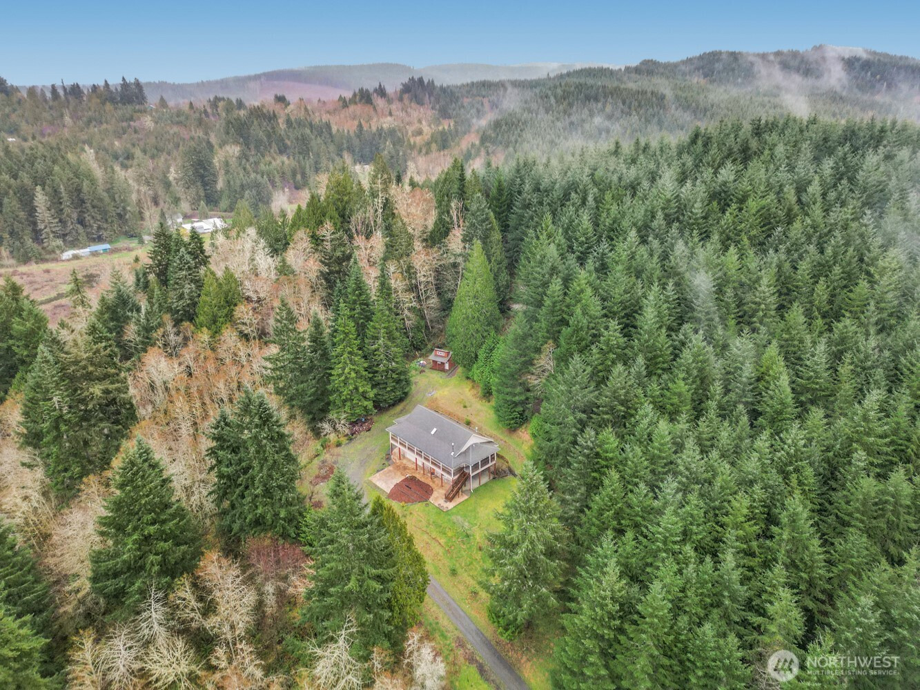 Perched atop 3.62 private acres, exceptional property offers sweeping views over treetops & peaceful setting surrounded by nature. Home sits well off road, creating sense of seclusion while still being just minutes from town. Mature forest blends beautifully into open grassy meadows, w/ established rhododendrons and variety of fruit trees including pear & apple. Adjacent to Port Blakely Tree Farm, neighboring land provides added privacy w/ minimal nearby development. Custom-built home features high-end finishes throughout. Open-concept main level w/ real hardwood flooring, vaulted ceilings & stunning living room w/ built-in cabinetry, sunny bay window & gas fireplace w/ natural rock surround. Chef’s kitchen w/ granite countertops, SS appliances, custom cabinetry, island w/ eat bar & French doors to covered deck. Primary suite w/ large jetted tub, oversized walk-in closet & French doors to covered wrap-around deck. Lower level w/ two more bedrooms, one featuring cozy wood stove & French doors, along w/ full guest bath & expansive laundry room w/ storage. Additional highlights include private well w/ its own water system, sprinkler system for landscaping, new storage shed at top of the property & recently installed tankless water heater. Wrought iron fencing & gates are currently being added for enhanced privacy & security. Enjoy the best of country living w/ the convenience of being just 10 minutes from dining, shopping, parks & Providence Centralia Hospital.