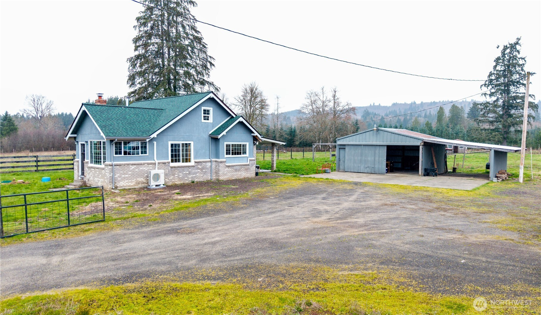 Turnkey hobby farm on 17+ acres of level, dry agricultural land! Charming 2-story, 3 bed/2 bath farmhouse features an open-concept layout with tasteful updates throughout. Main-level primary suite and spacious bath with soaking tub & separate shower. Cozy wood stove for crisp Northwest days. Farmhouse kitchen exudes rustic charm, while the mudroom adds everyday practicality. Enjoy the covered back patio, fenced yard, and open fields—perfect for animals to roam. Massive 36x48 shop with heated tack room, 3 bays, loft storage, and lean-to for equipment or livestock. Ready for your country living dreams!