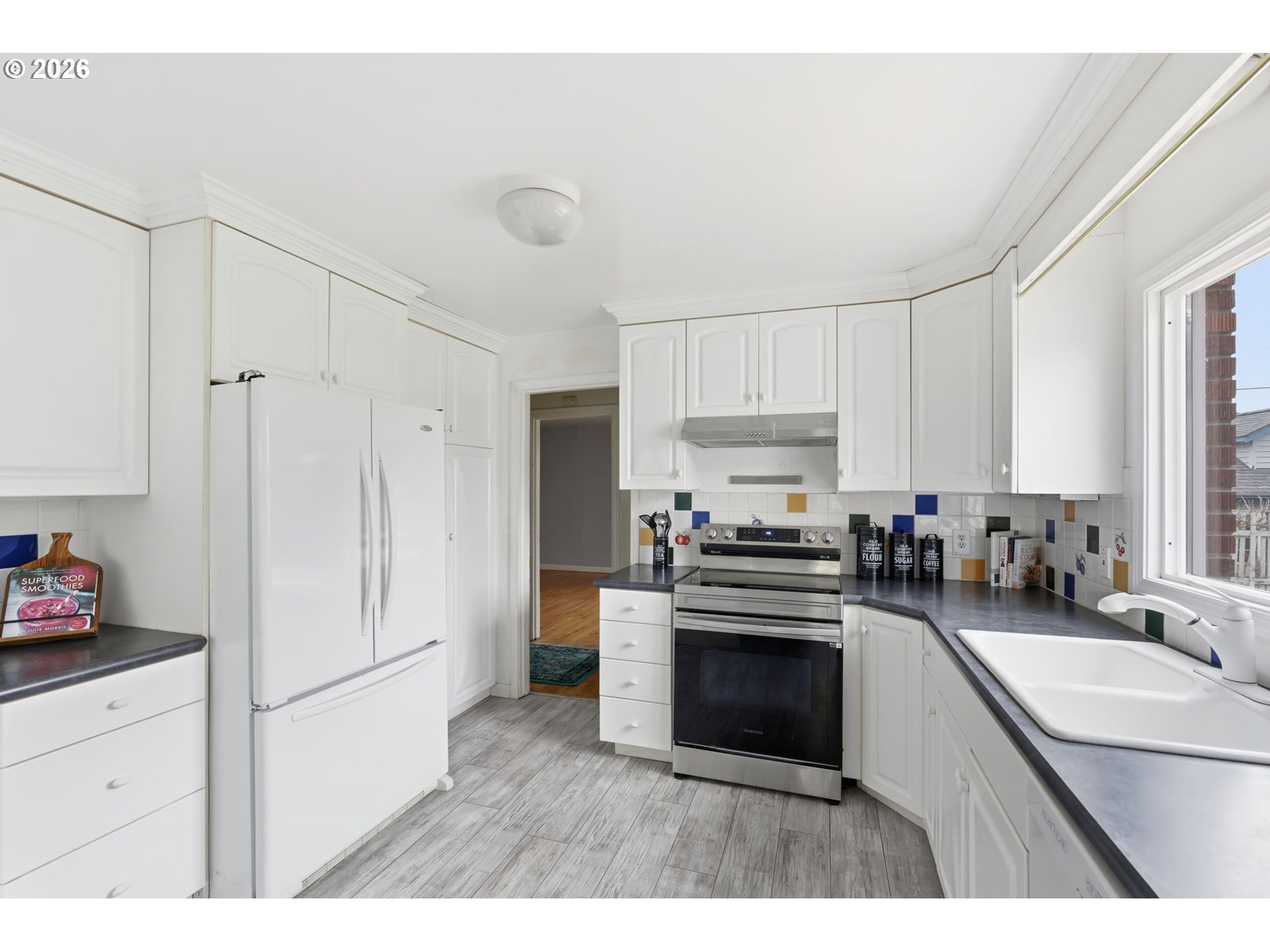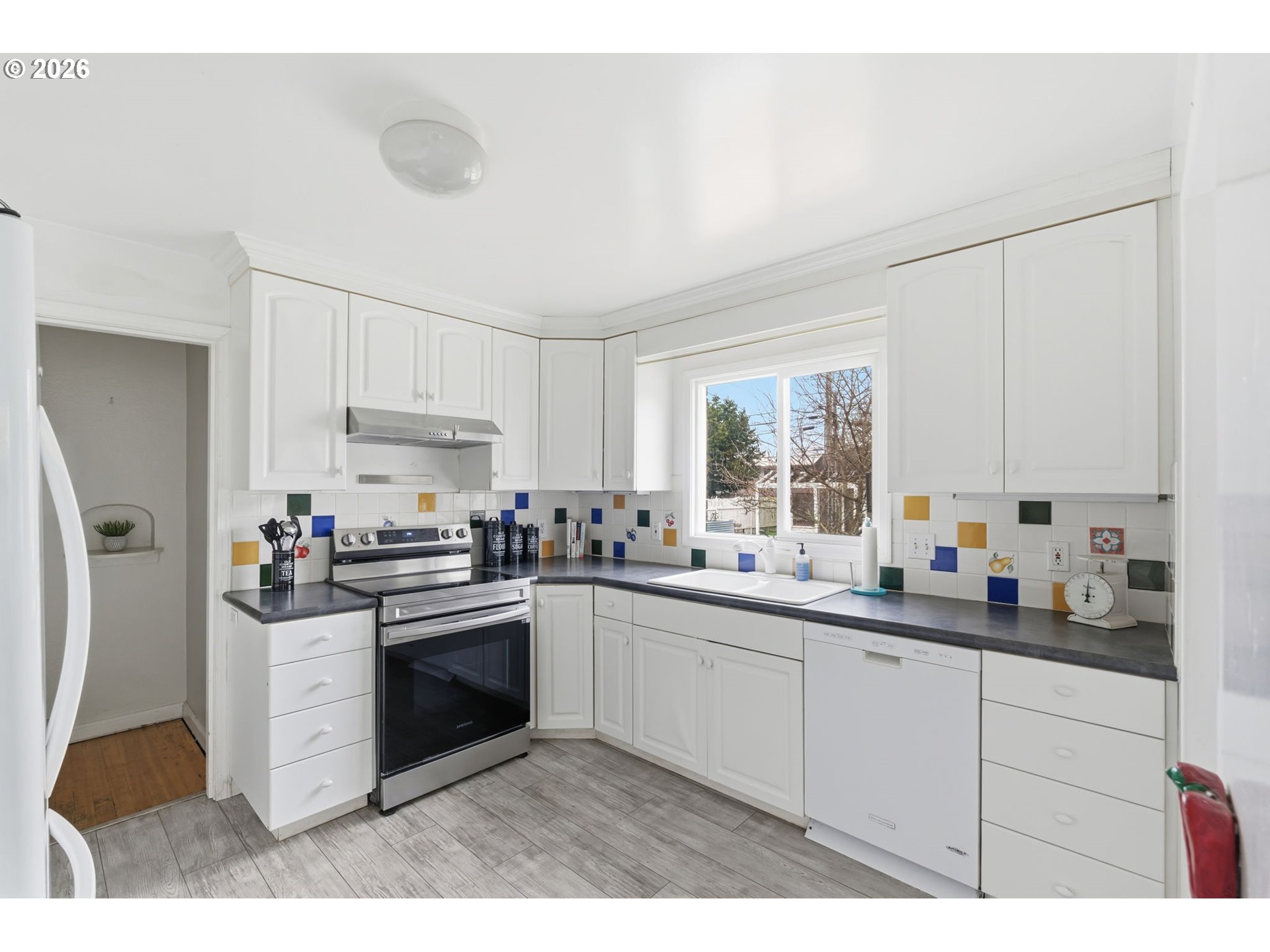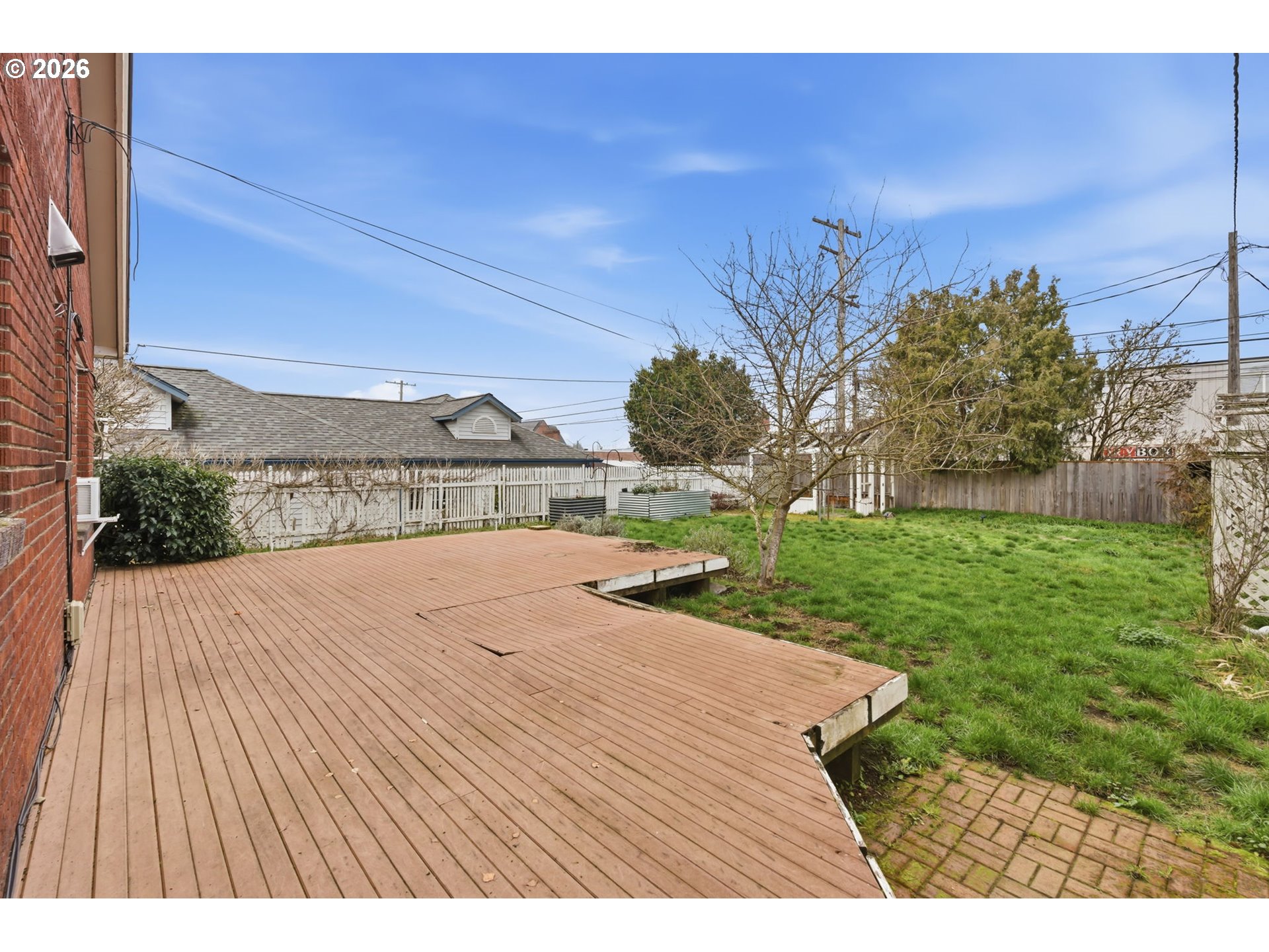 Charming mid-century brick home with 3 bedrooms and 2 baths, offering 2,652 sq ft of living space just a short walk to Centralia College and close to all major amenities. Enjoy spacious rooms with hardwood floors, a cozy wood-burning fireplace in the living room, and a kitchen with eating area. Features include an office, bonus room, covered ceilings, and elegant arched doorways. Step outside to a deck, fenced yard, and raised garden beds, plus a detached one-bay garage/workshop. The basement offers a partially finished room with a 3/4 bath and plenty of potential to create even more living space. A perfect blend of character, charm, and opportunity!