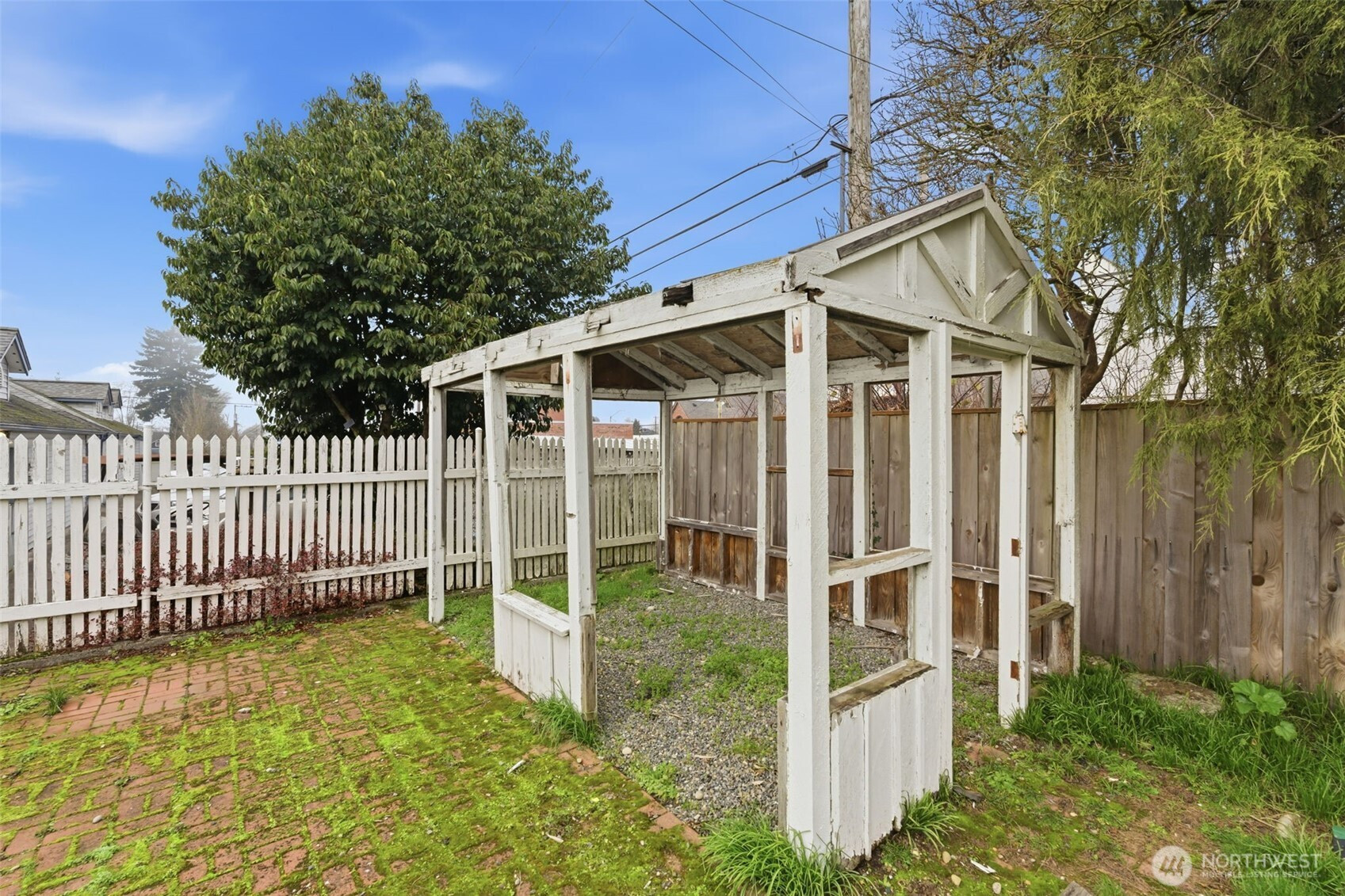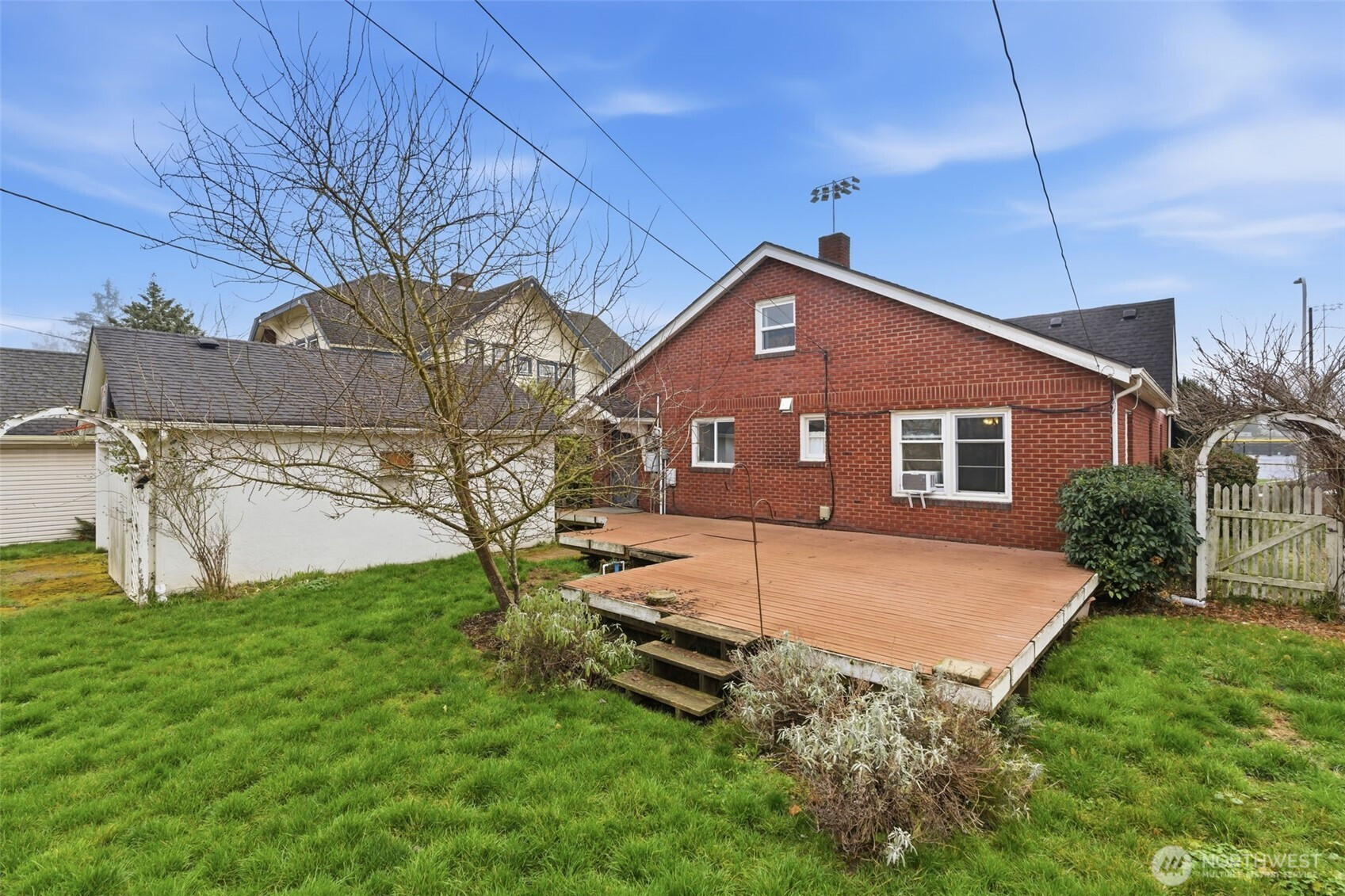 Charming mid-century brick home with 3 bedrooms and 2 baths, offering 2,652 sq ft of living space just a short walk to Centralia College and close to all major amenities. Enjoy spacious rooms with hardwood floors, a cozy wood-burning fireplace in the living room, and a kitchen with eating area. Features include an office, bonus room, covered ceilings, and elegant arched doorways. Step outside to a deck, fenced yard, and raised garden beds, plus a detached one-bay garage/workshop. The basement offers a partially finished room with a 3/4 bath and plenty of potential to create even more living space. A perfect blend of character, charm, and opportunity!