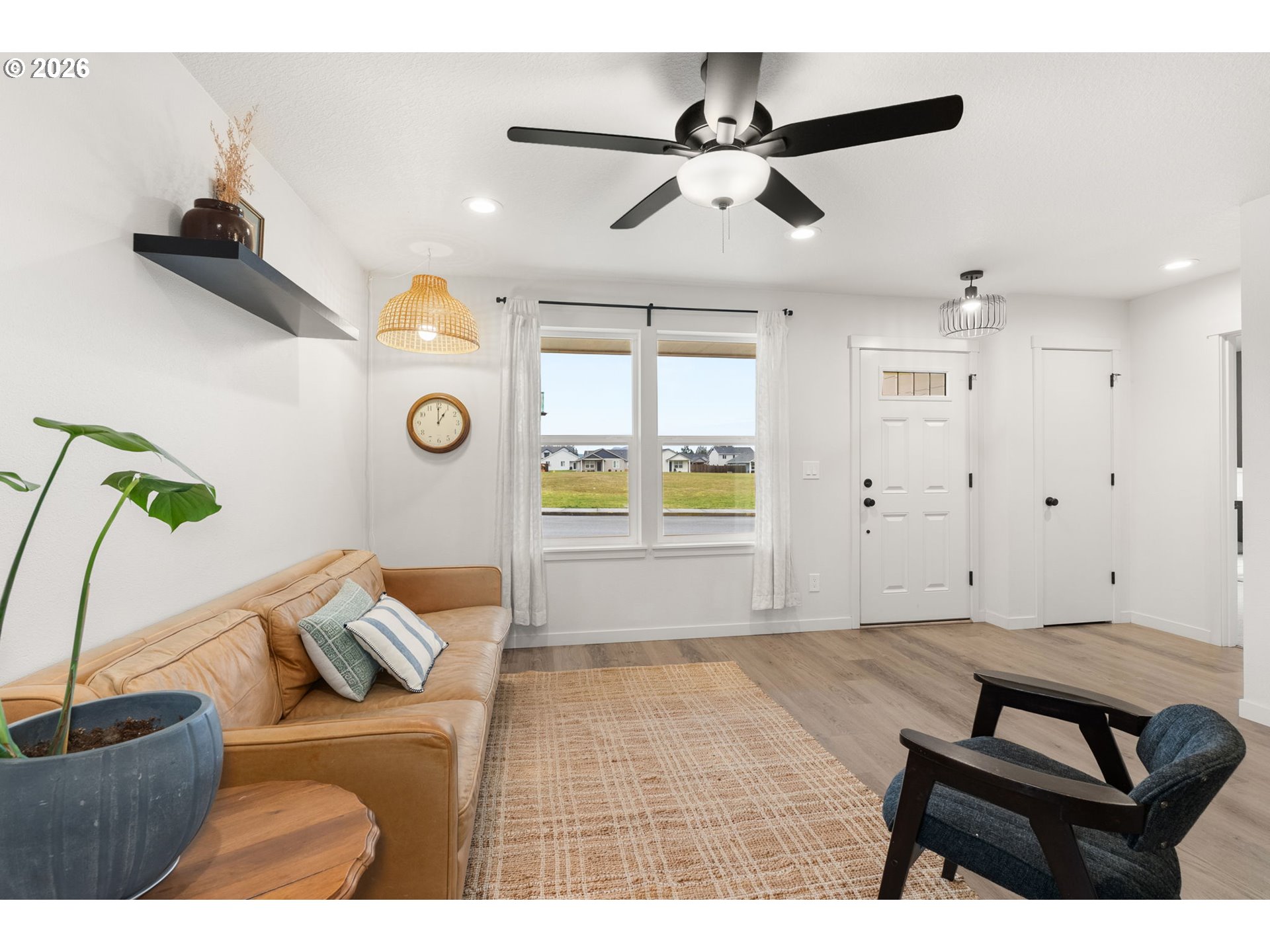 Welcome to this well-maintained 3-bedroom, 2-bath home in desirable Grand Prairie Estates! Offering over 1,200 sq ft of comfortable living space, this home features an open floor plan that feels bright and welcoming. The kitchen is thoughtfully designed with stainless steel appliances, tile backsplash, ample cabinet space, and an eat-at bar—perfect for casual meals or entertaining. Stay comfortable year-round with an energy-efficient heat pump mini-split system providing both heating and cooling. Step outside to a fully fenced yard, ideal for pets, play, or relaxing outdoors. Enjoy the convenience of being directly across the street from a park and just 5 minutes from I-5, making commuting a breeze. A great blend of comfort, efficiency, and location—this home is move-in ready and waiting for you!