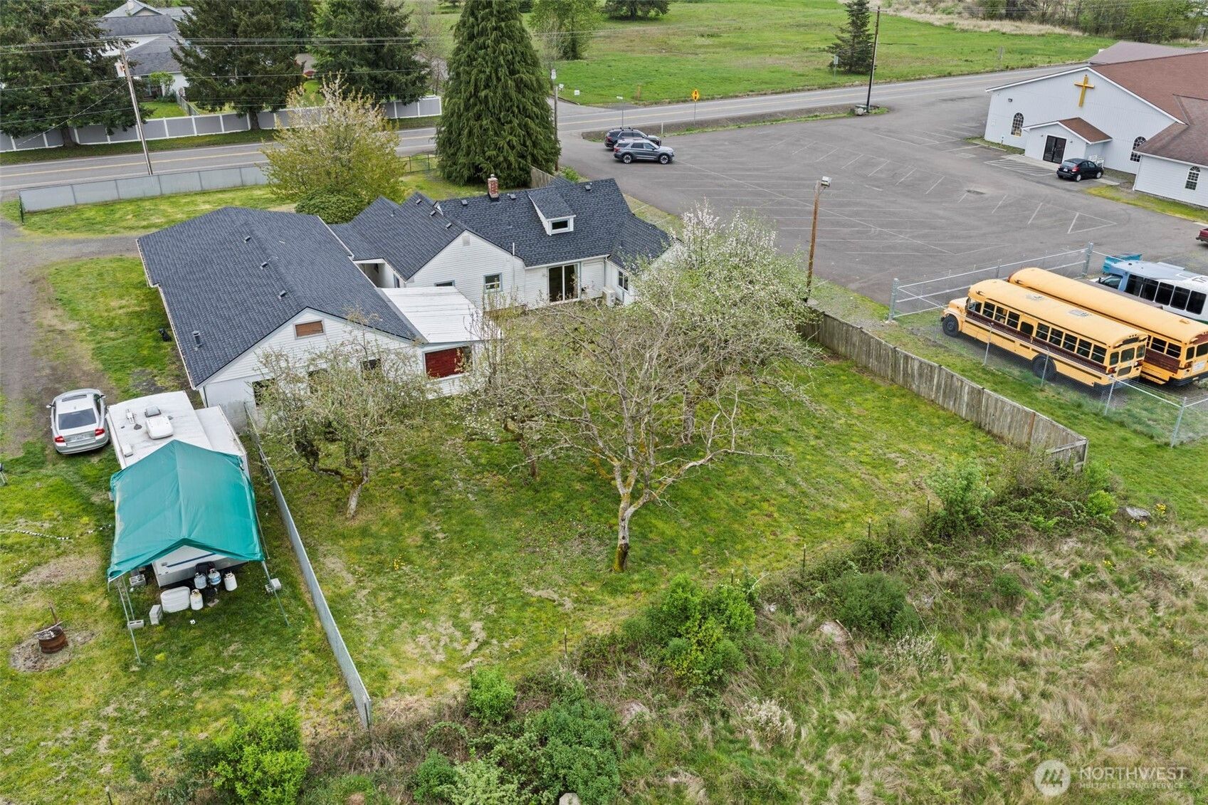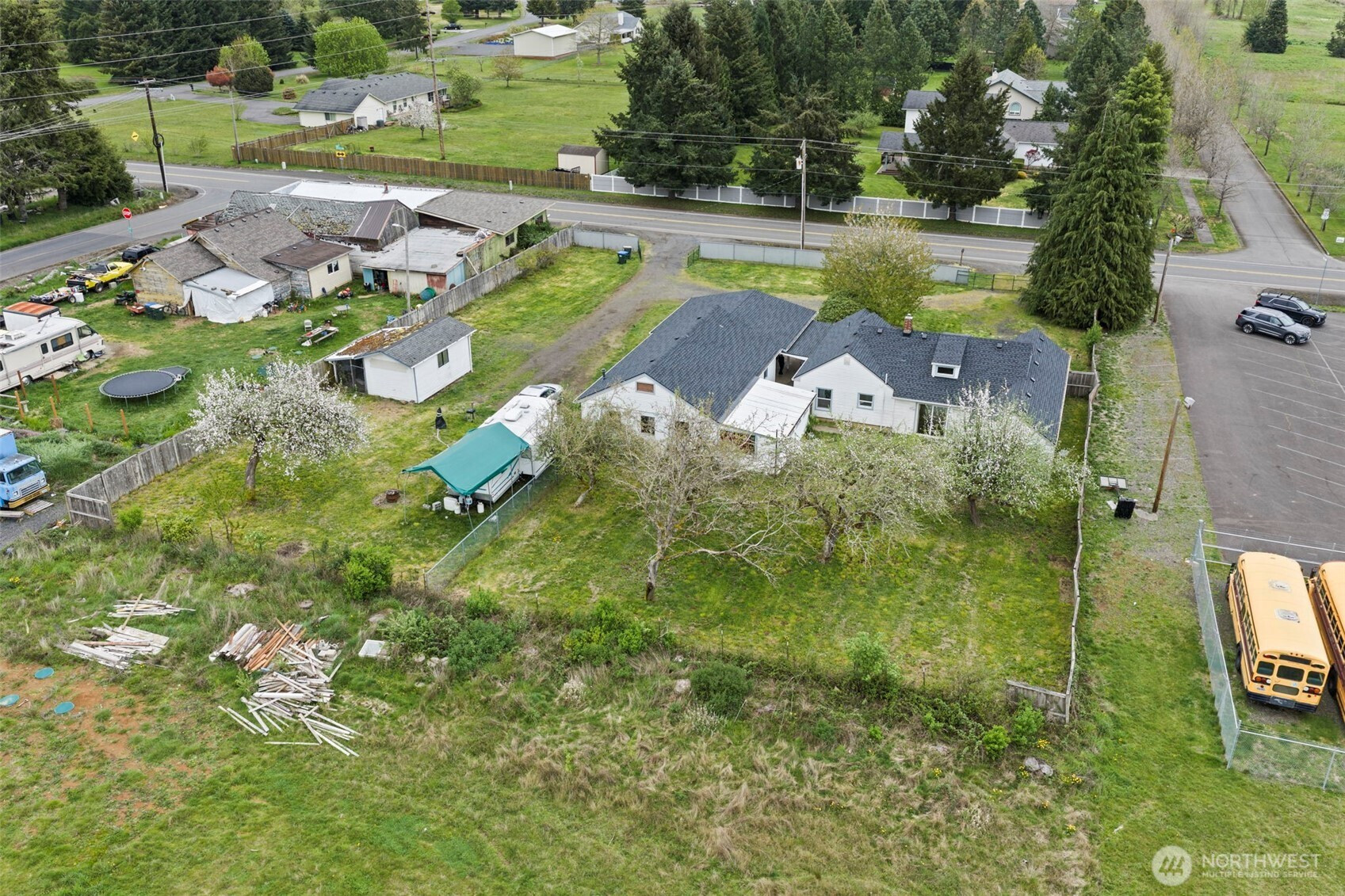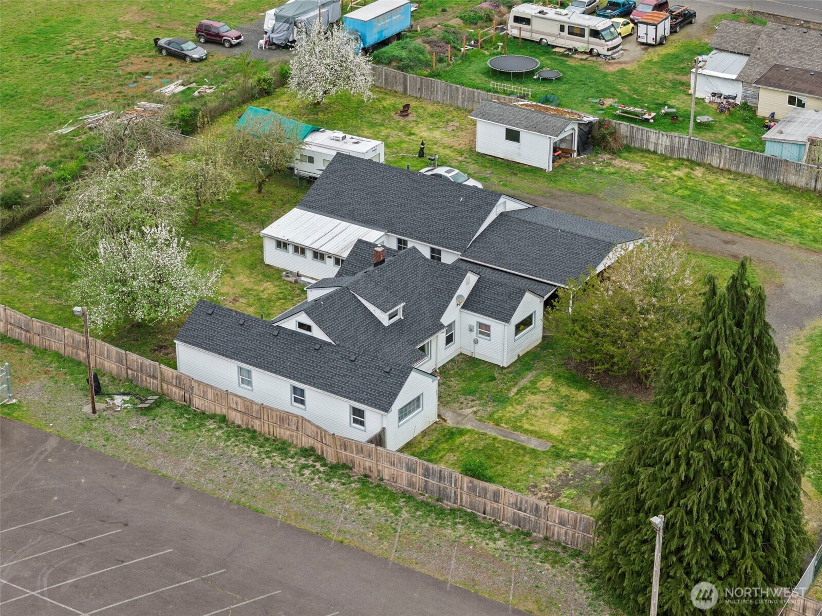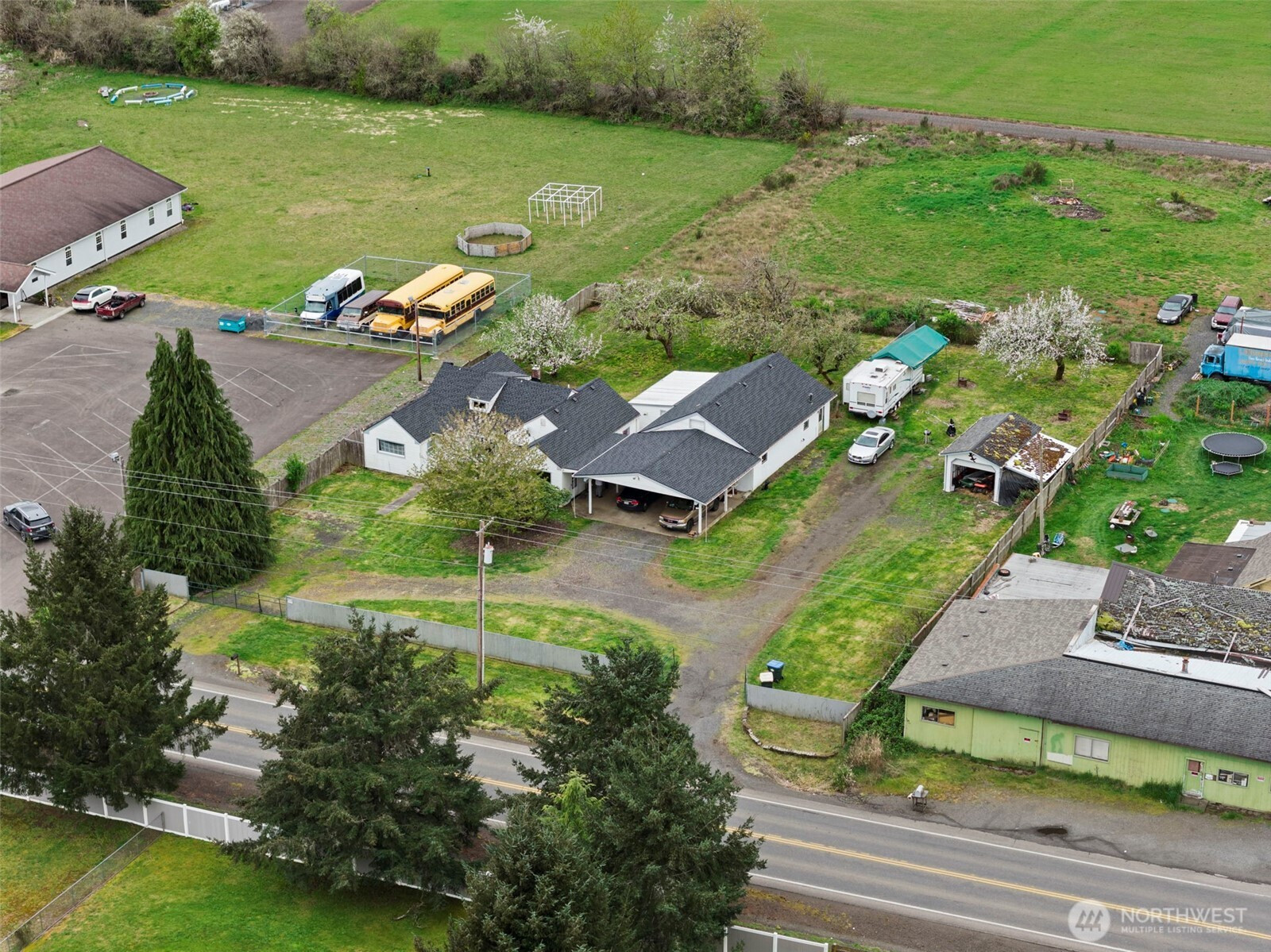 Your opportunity on .69 acres with commercial zoning, offering endless potential for residential living, business use, or investment! This versatile property features a comfortable main home plus a detached garage with a fully equipped one-bedroom, ¾ bath guest space complete with its own kitchen and living area—ideal for extended living, rental income, or workspace. The fully fenced grounds provide privacy and security, while mature fruit trees add charm and a touch of self-sufficiency. Enjoy abundant parking, including ample space for RVs, equipment, or clients. Conveniently located less than 5 minutes to I-5, this property combines accessibility with flexibility—perfect for those looking to live, work, and invest all in one place.