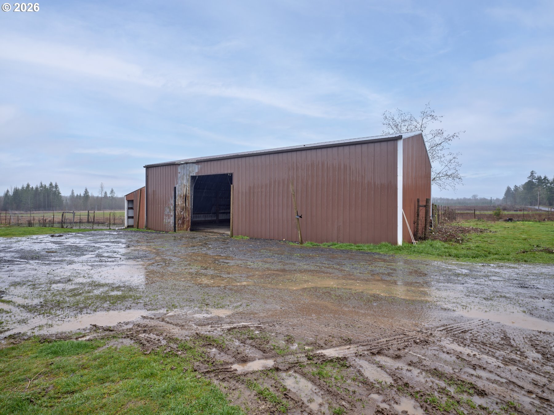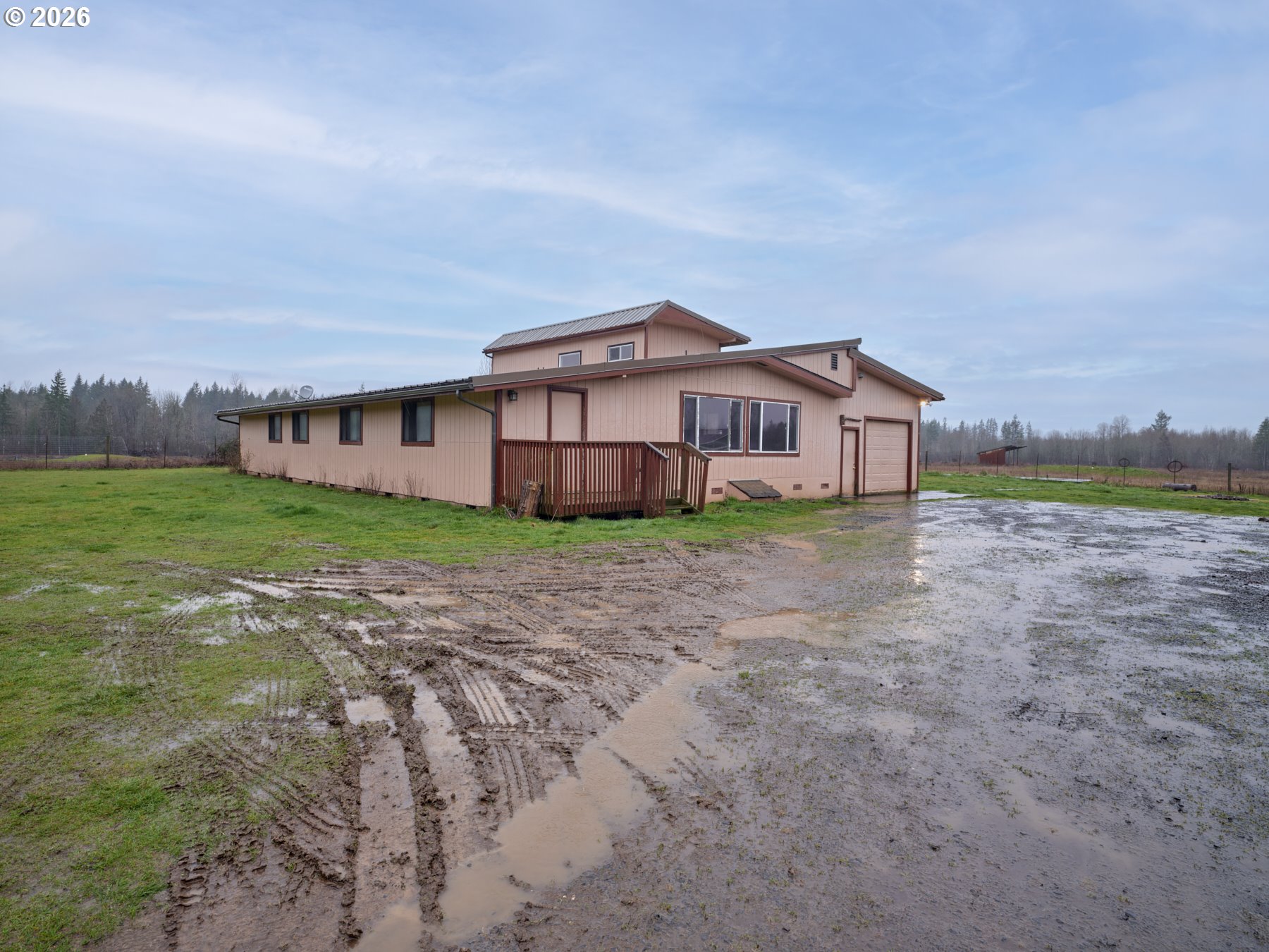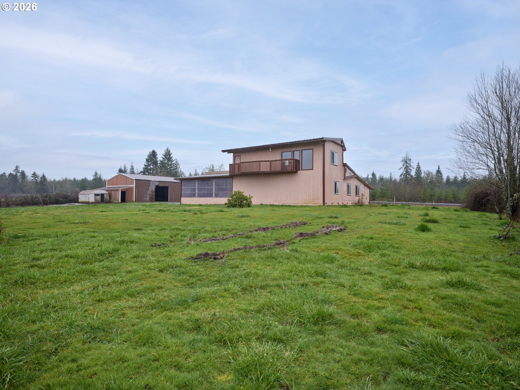 Full of opportunity, this nearly 4000 square foot home on 2 flat acres, being offered in as-is condition offers a host of possibilities and potential. The living structure has an expansive breezeway/mud-porch type enclosure before you enter the main area of the house. Inside there is a very large living room w/pellet stove with wall to wall carpet, followed by an expansive kitchen w/a considerable amount of counter & cabinet space + full set of appliances. 3 Bedrooms on main level including the Primary w/attached bath. Office area w/built-ins off kitchen in addition to a large flex space/utility room. Upstairs there is an office area w/an exterior deck/balcony plus a bedroom w/closet. Approximately 30' x 18' 2-car attached garage. Across the driveway from the house there is a 30' x 48 shop' w/ 8' x 30' enclosed lean-to (perfect to store hay or tools). Property is served by an individual well and septic system. Property is perimeter fenced and has posts in ground at driveway; making it gate-ready. Located on a paved County road inside the Toledo School District. High speed fiber internet available through Toledotel. Less than 6 miles to I5. Ideal location for a home business or small farm property.