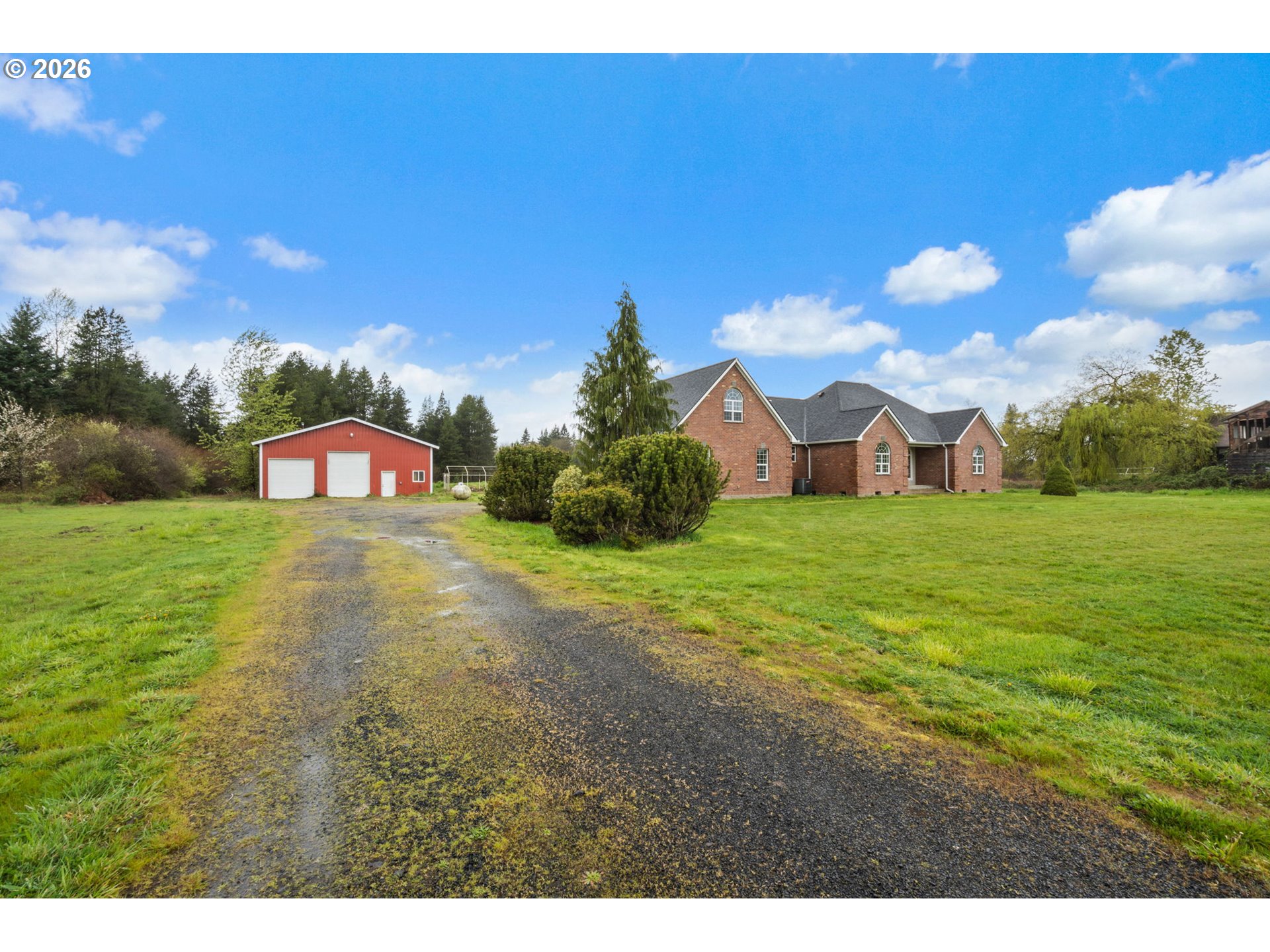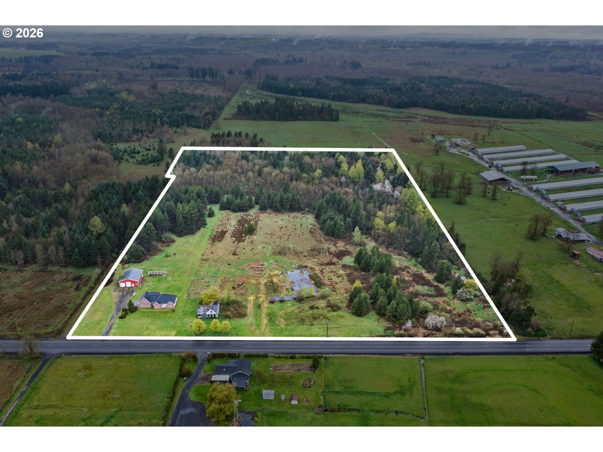 Beautiful, custom home and shop w/RV parking on nearly 26 acres. Home is built with quality materials. The split floor plan has an open, comfortable feel to it. Great room has 12 ft ceiling, gas fireplace, and opens to covered back patio overlooking the rest of the property. Well laid out kitchen has ample storage. There is a breakfast nook on one end and formal dining on the other. Primary suite includes walk-in closet and primary bath w/soaking tub. Attached 2-car garage with bonus room and ¾ bathroom and extra attic storage, above. Outside, the 40x48 shop has a 3/4 bathroom, an RV sewer dump, wood stove, and its own electrical panel. About 10 acres are timbered with 40+ year old trees. North and west sides adjacent to timber and agricultural land. Minutes to Cowlitz River boat ramps, well known for its salmon fishing. 2.5 mi from Lewis and Clark State Park with walking, horse trails, and camping opportunities. Close to lakes and mountains. Less than 10 minutes to I-5 midway between Portland and Seattle. Old home and singlewide on property of no value.