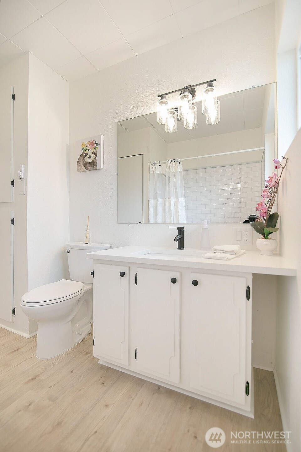 Centralia — UPDATED Single Level Home -- 3 Bedroom / 1 Bathroom -- 1408 SqFt -- Living Room -- Kitchen w/ Quartz Countertops -- Stainless Steel Appliances -- Microwave, Stove, Dishwasher -- Tile Backsplash -- Dining Space -- Primary Bedroom w/ Walk in Closet -- 2nd Bedroom has Double Closets -- NEW Laminate Flooring -- NEW Fixtures -- NEW Interior & Exterior Paint -- Wall Heat -- Newer Roof -- Huge Mudroom / Laundry Room has Extra Storage -- Covered Porch -- RV Parking -- Dead End Street -- Minutes to Shopping -- Approximately 37 Minutes to Olympia