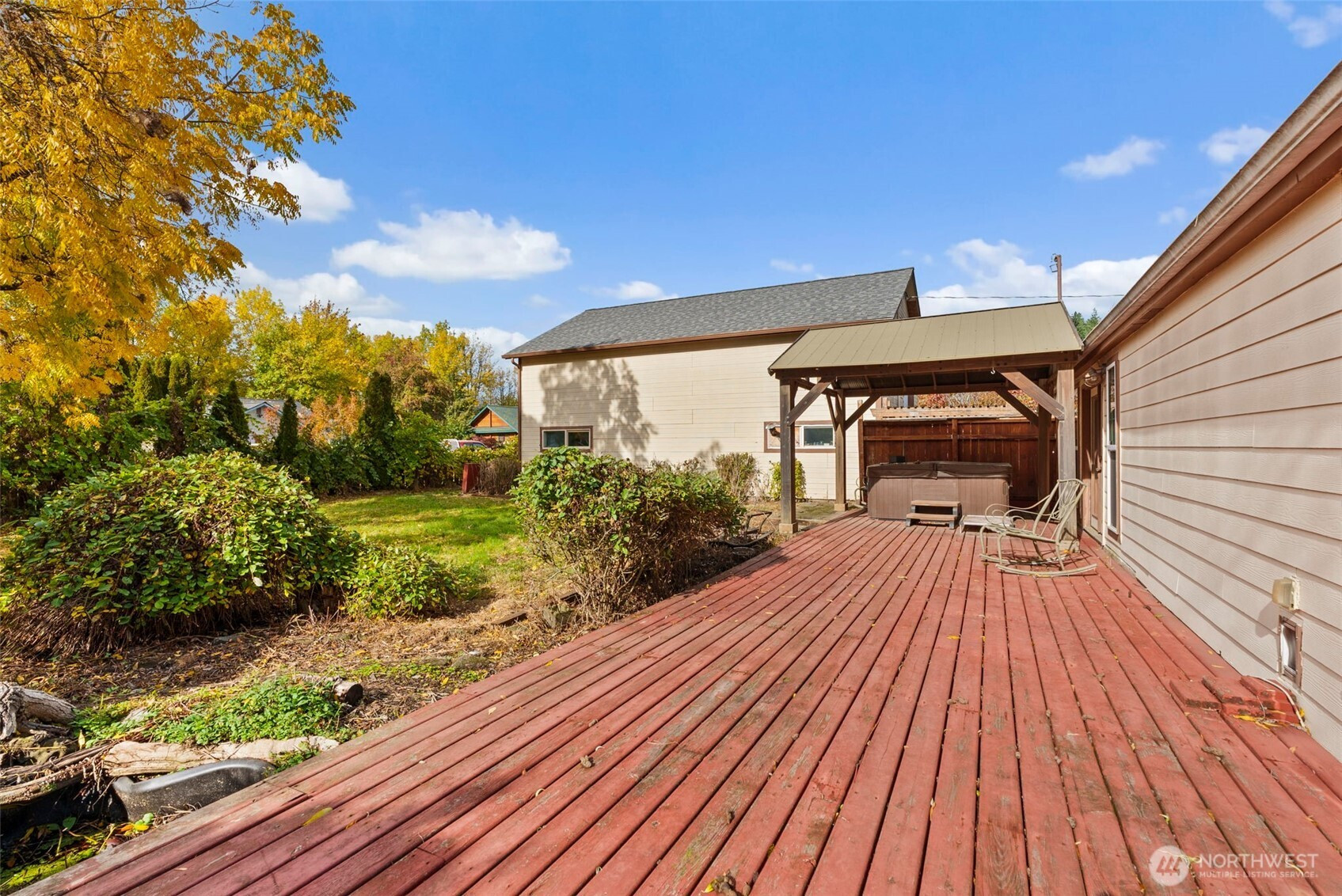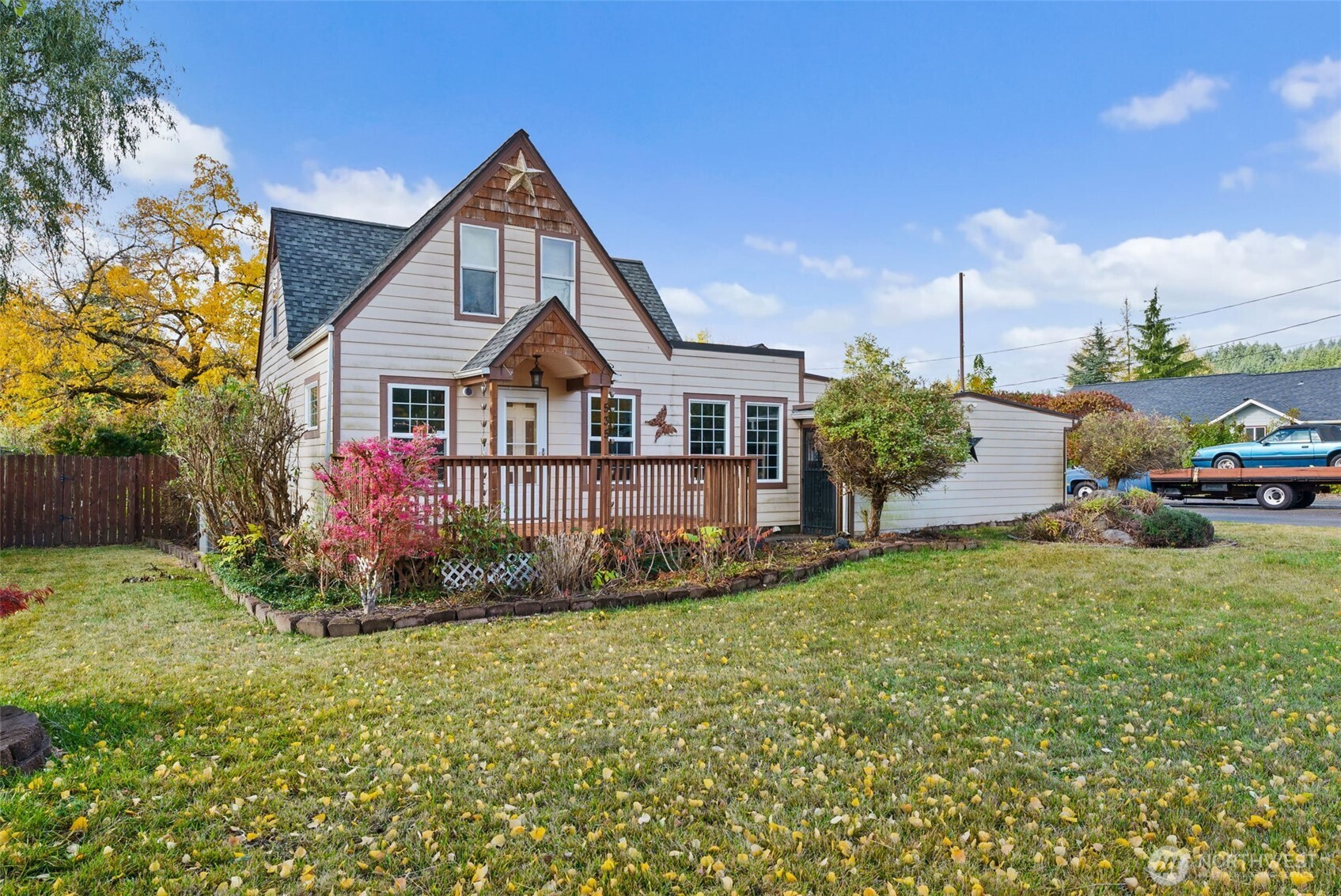 Spectacular Chehalis home with over 2,000 sq. ft. on a .33-acre lot near W.F. West High School! This 4-bed, 2-bath home features a large main-level primary suite with sitting area and serene backyard views. 3 bedrooms await upstairs. Enjoy a spacious living and family room with pellet stove, and French doors leading to a full-length deck with hot tub. Updated kitchen with stainless gas stove, bar seating, and ample counter space. Beautifully landscaped yard. Fenced back yard. Bonus 38x26 shop with lift and separate power meter. RV hook up—rare find in town!