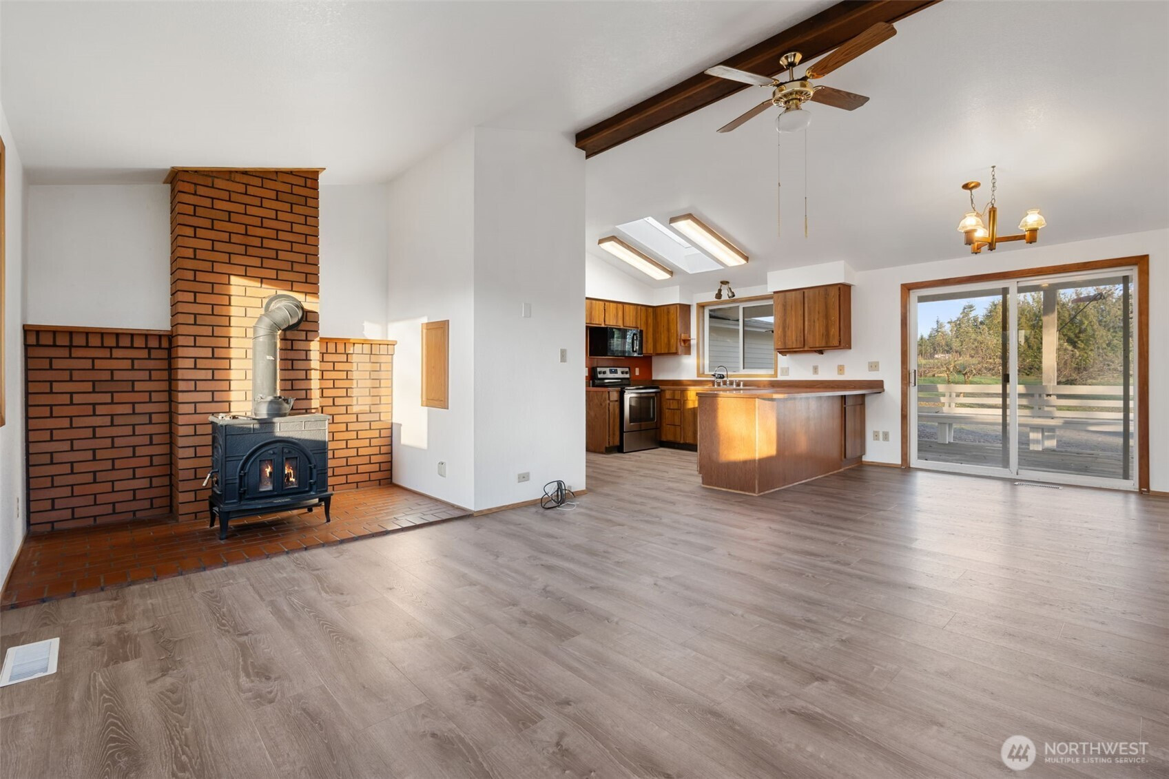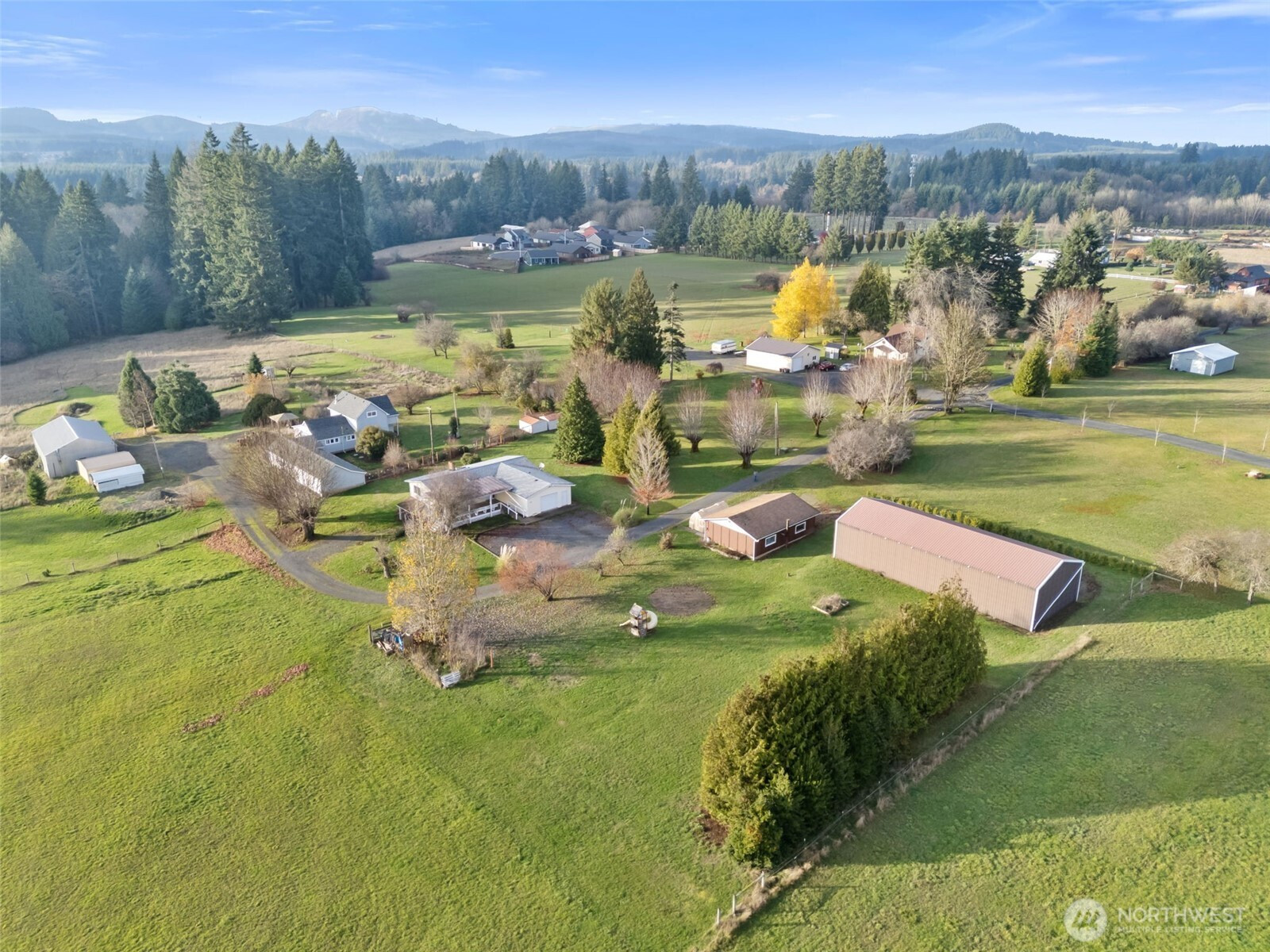 Just shy of 9 private acres, with open pasture views stretching across the property. Minutes from I5 & centrally located between Portland & Seattle. Home features a newer roof, vaulted ceilings, LVP flooring, skylights & a wood burning stove. A lrg covered porch overlooks rolling acreage. Main level includes an open kitchen, living & dining layout & a primary bedroom w/ direct bath access. Finished lower level offers new carpet, a spacious bonus room, three quarter bath, a bedroom, plumbing nearby for a future kitchenette & a separate entry ideal for multi generational living. Property includes a 48x30 metal shop w/ four tall bays, power & concrete floor, a 24x36 powered shop w/ concrete floor, a greenhouse, fruit trees & full RV hookups.