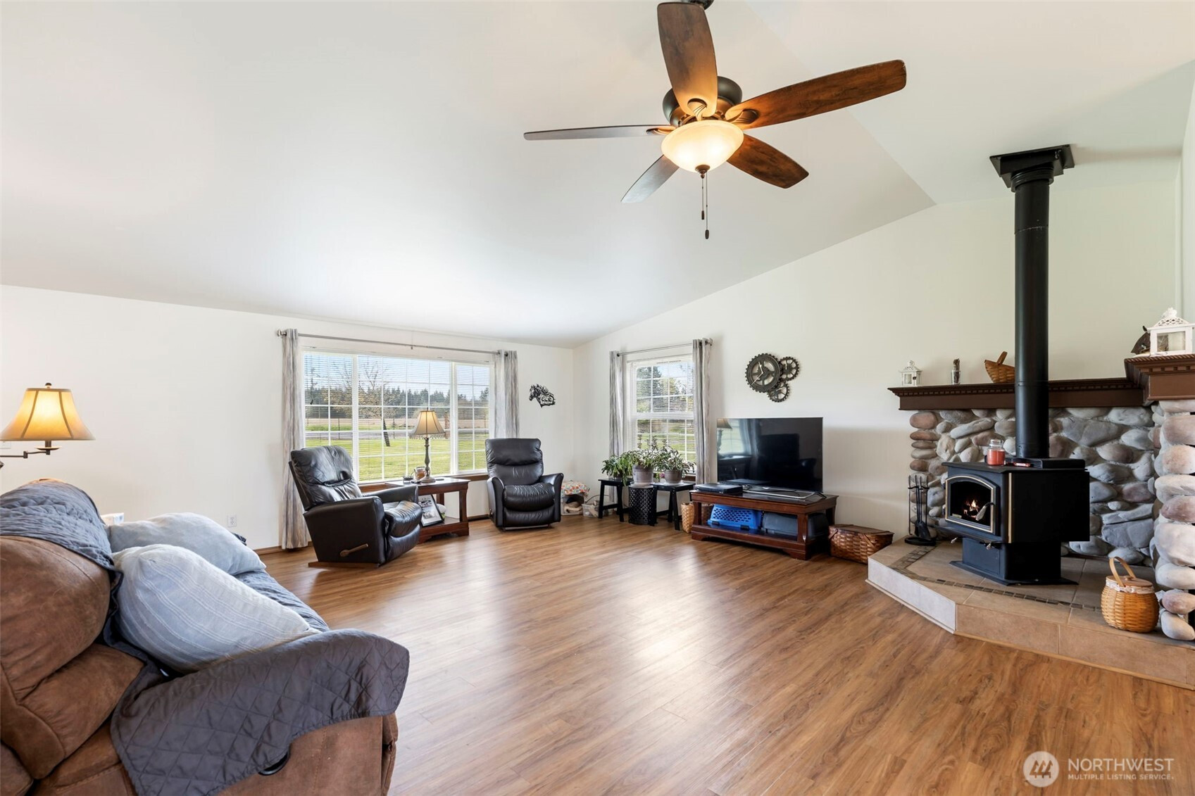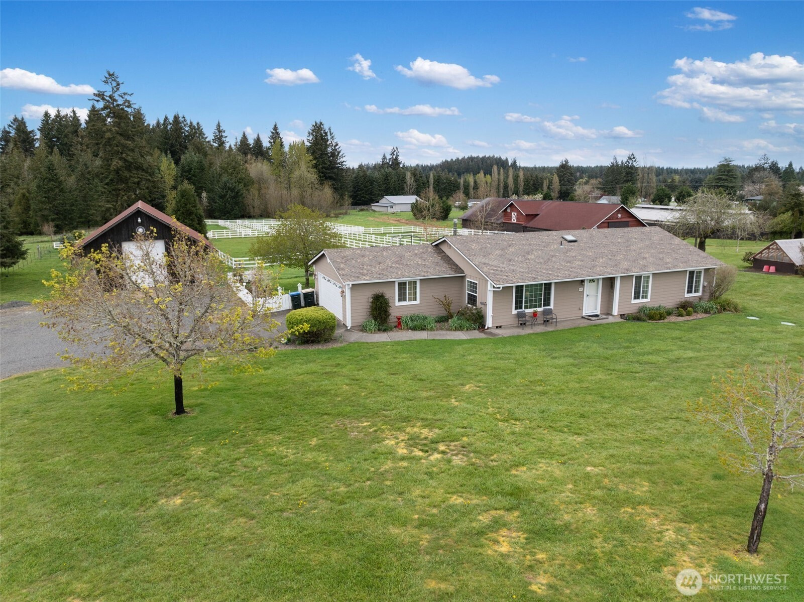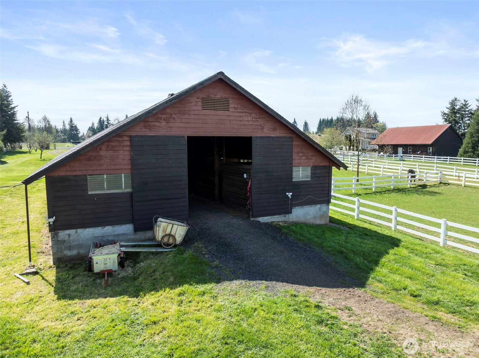 Discover a truly exceptional equestrian property set on 8.02 level, usable acres, offering the perfect blend of functionality, comfort, and rural charm. The beautifully maintained single-level home features 3 bedrooms and 2 baths with an open-concept design, ideal for both everyday living and entertaining. Cozy up by the wood-burning fireplace and enjoy the many recent upgrades, including fresh interior and exterior paint, new vinyl plank flooring, stainless steel appliances, and a heat pump with A/C for year-round comfort.Equestrian enthusiasts will fall in love with the gorgeous 28’ x 110’ barn, thoughtfully updated with tongue-and-groove stalls and walls, improved lighting, an exhaust fan, and a surrounding French drain system. The property is well-equipped with four fenced pastures, runways, and a paddock, all secured with durable vinyl fencing.Additional features include a unique sunken greenhouse with custom potting areas, a massive 24’ x 48’ shop with an oversized door—perfect for RV or boat storage—a poultry coop, fruit trees, and expansive open space for animals, hobbies, and recreation. Whether you're looking for a working horse property or a peaceful country retreat, this one has it all—bring your animals, toys, and vision!