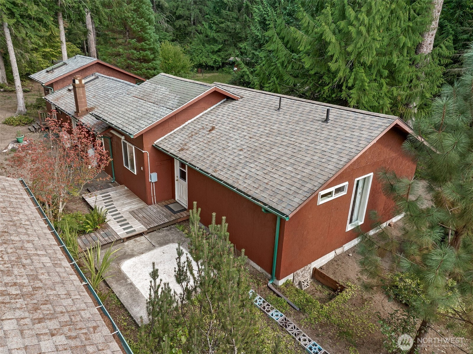 Discover a one-of-a-kind retreat w/artistic charm on 16 serene, forested acres near Mt. Rainier, Alder Lake, the Nisqually River, just 1 min outside of Elbe. Spacious primary suite features lg walk-in closet, roomy shower & claw-foot tub. Den/office w/lofted bed platform and flexible living room space could easily be converted to a bdrm w/attached half bath. The great room is warmed by a cozy woodstove, while the detached bonus room—complete with sauna and its own loft bed platform—makes ideal guest quarters/flex space. Three mini-splits ensure year-round comfort. With RV parking/carports, workshop/pump house, sheds and abundant mature conifers (timber value!) this peaceful property offers endless potential for AirBnB or personal haven.