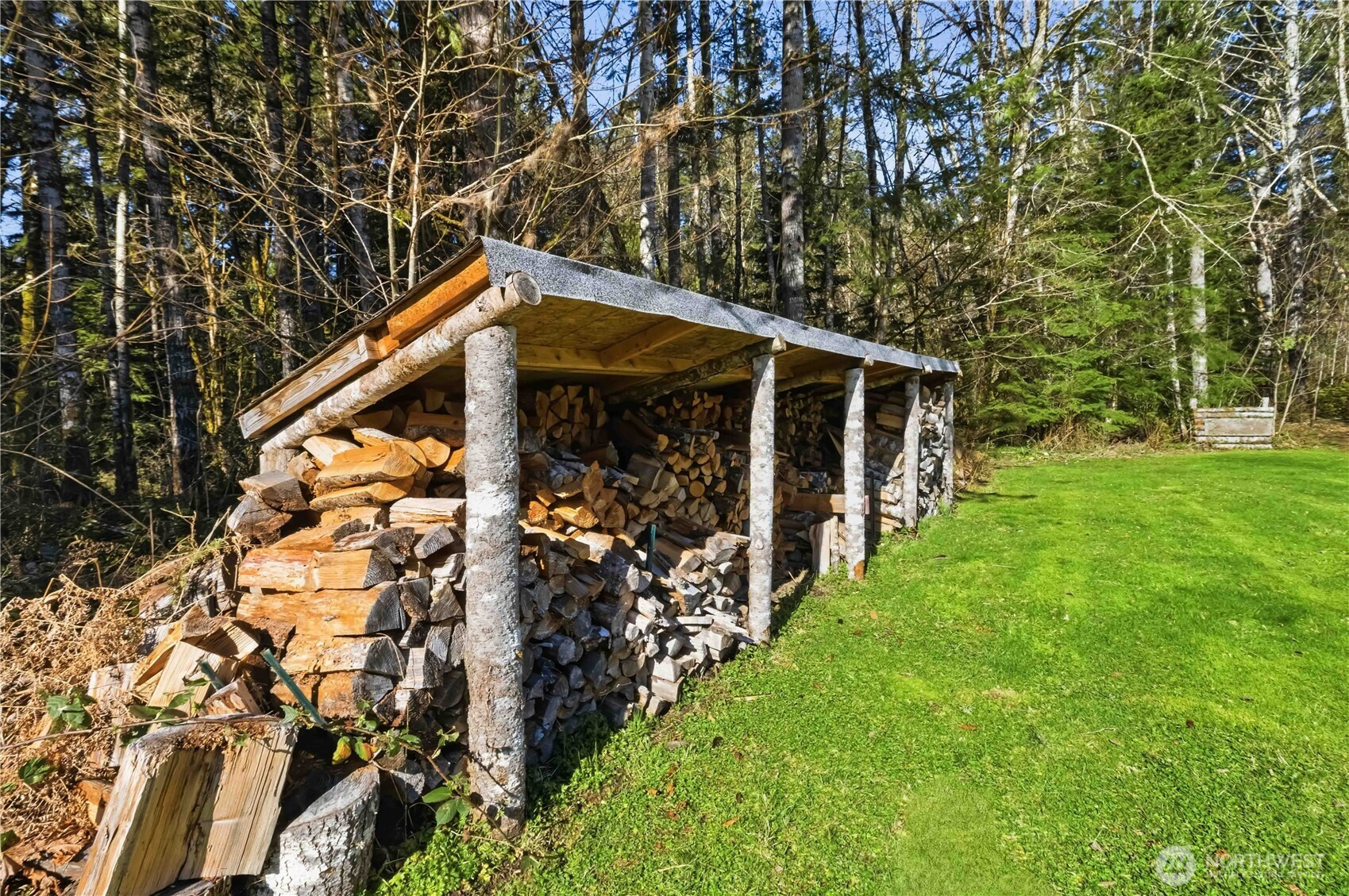 Cascade Mountains Dream Getaway – Move-In Ready 2 Bed, 2 Bath Home on 2.64 Acres! Welcome home to this clean and cozy, carefully maintained 1,289 sq ft mountain cabin on a quiet dead-end road, where pride of ownership shines through, perfect for anyone seeking a simple, self-sufficient lifestyle. Surrounded by peaceful woods and open spaces, this property backs up to Port Blakely land and offers the peace and privacy homesteaders crave. Featuring a spacious living room, Primary bed with ensuite bath, space-maximizing pantry, Trane heat pump, Leaf-Guard gutters, and a wood-burning fireplace that warms the whole space. Triple pane windows ensure maximum energy efficiency. Roofs on house and outbuildings replaced in 2017. A beautiful year-round Salmon spawning creek marks the Western property line, easily accessed by a tranquil, well-maintained forest trail. Ideal for growing and living off the land with a fenced garden, several varieties of fruit trees, greenhouse, and garden plot ready for planting. Detached garage with shed, carport and RV parking areas provide room for vehicles, tools, equipment, or small livestock needs. Unwind under the stars in the included soft-sided hot tub after a day working your land or just enjoying the nature around you. Well and septic in place. Close to Lake Scanewa, Cowlitz Day Use Park and endless outdoor recreation. A peaceful, grounded mountain retreat with true homestead or Air B&B potential (buyer to verify). Don't miss this opportunity!