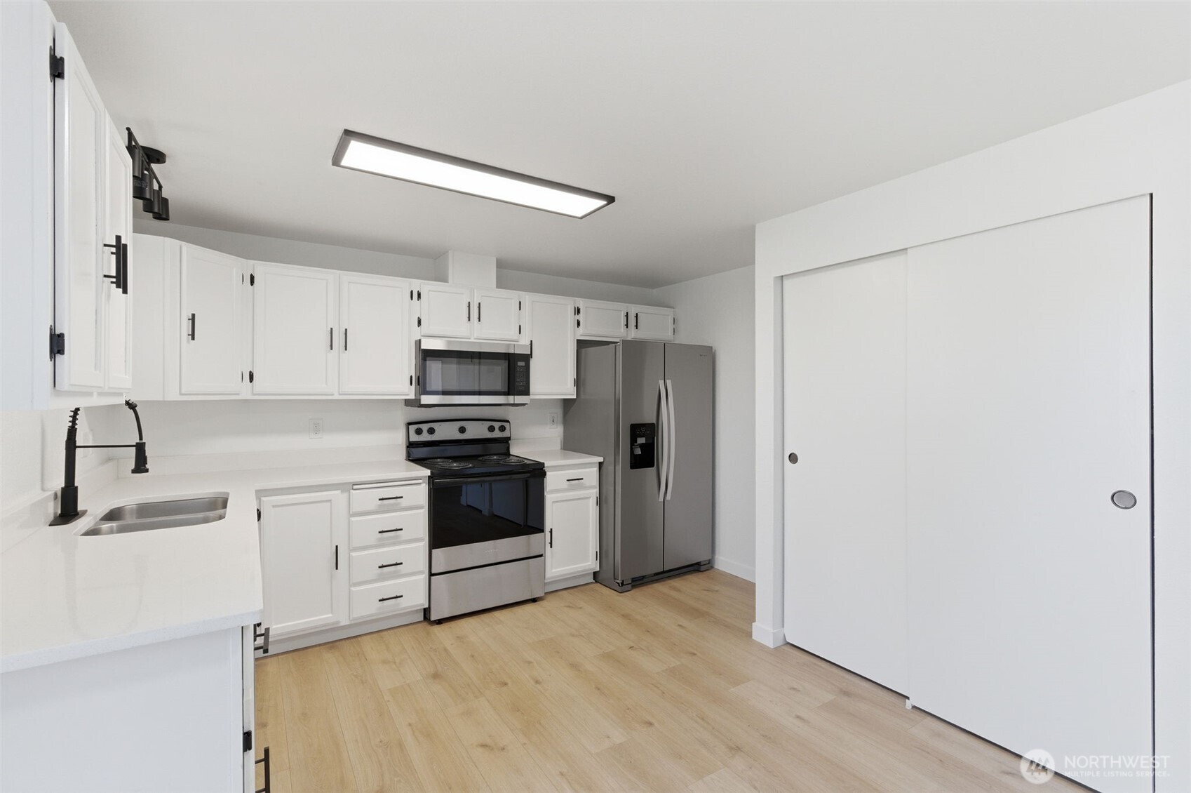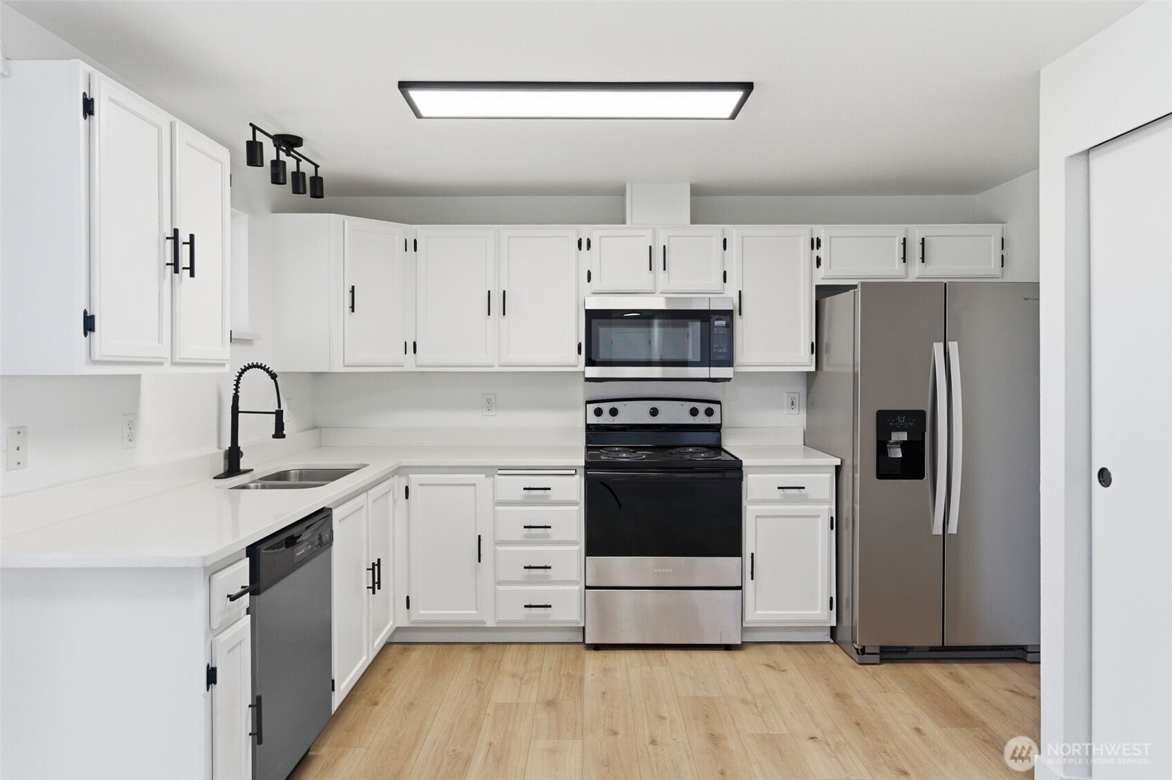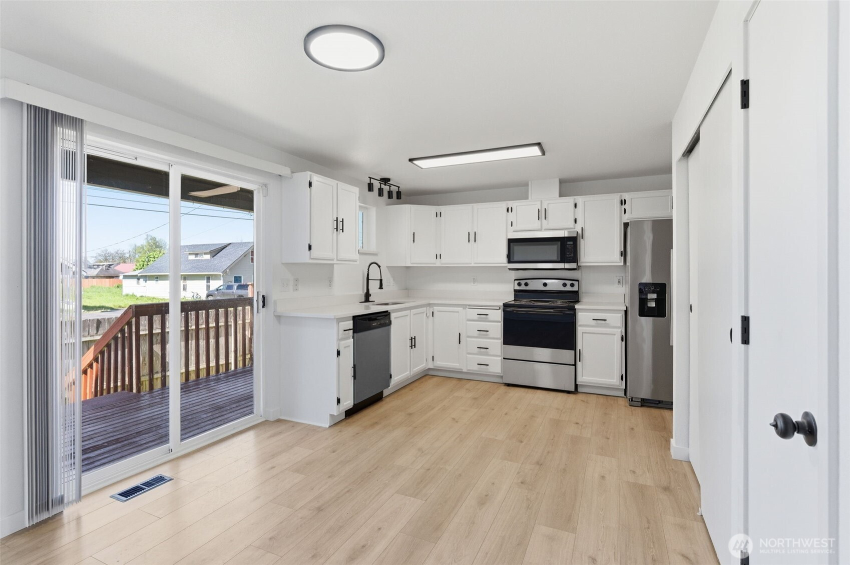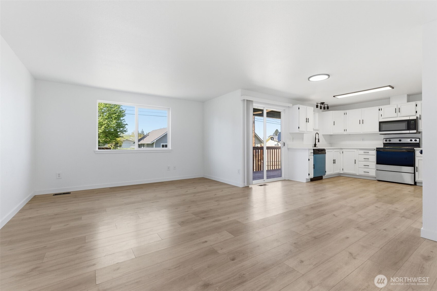 Updated and move in ready, this spacious 3 bedroom, 1.75 bath home features a desirable open floor plan with comfortable, functional living areas and great natural light throughout. Some of the recent upgrades include fresh interior and exterior paint, new luxury vinyl plank flooring, granite countertops, updated lighting, hardware, vanities, refreshed bathrooms, along with stainless kitchen appliances. The warm and inviting living room gives the home a comfortable feel, while the primary bedroom includes its own private bathroom. This home feels much bigger in person. Enjoy efficient heating and cooling with a heat pump. The covered back deck offers year round outdoor space, perfect for relaxing or entertaining. The property also includes a refreshed attached 2 car garage and a partially fenced yard. Conveniently located near schools, shopping, Shaw Aquatics Center, Penny Playground, Timberland Library, and just minutes from I 5 for an easy commute. Comfortable, convenient, and full of charm. Turnkey, updated, low-maintenance home with major work already done, perfect for a first time home buyer or rental property!