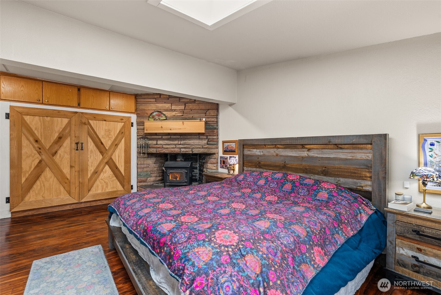 Beautifully updated and well-maintained rambler sits on a large lot in Centralia's beloved Edison District. 1,723-sq.ft. home, 4 bedrooms & 1.5 bathrooms. Renovated bedroom boasts its own half-bath and separate entrance, ideal for multi-generational living. Luxuriate in the primary suite with skylights, French doors, and brick-encased wood stove. LVP and laminate flooring. Remodeled bathroom. Two wood-burning fireplaces and heat pump with A/C. All appliances included. Light-filled rooms, custom cordless blinds throughout. Solid roof, strong foundation, and elegant brick construction. One-car garage and spacious, fully fenced backyard with carport. Excellent schools, close to town, lovely neighborhood on tree-lines street. Come see it today!