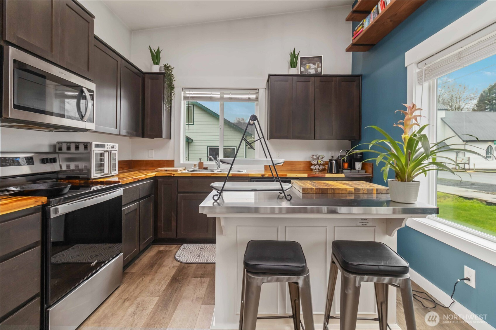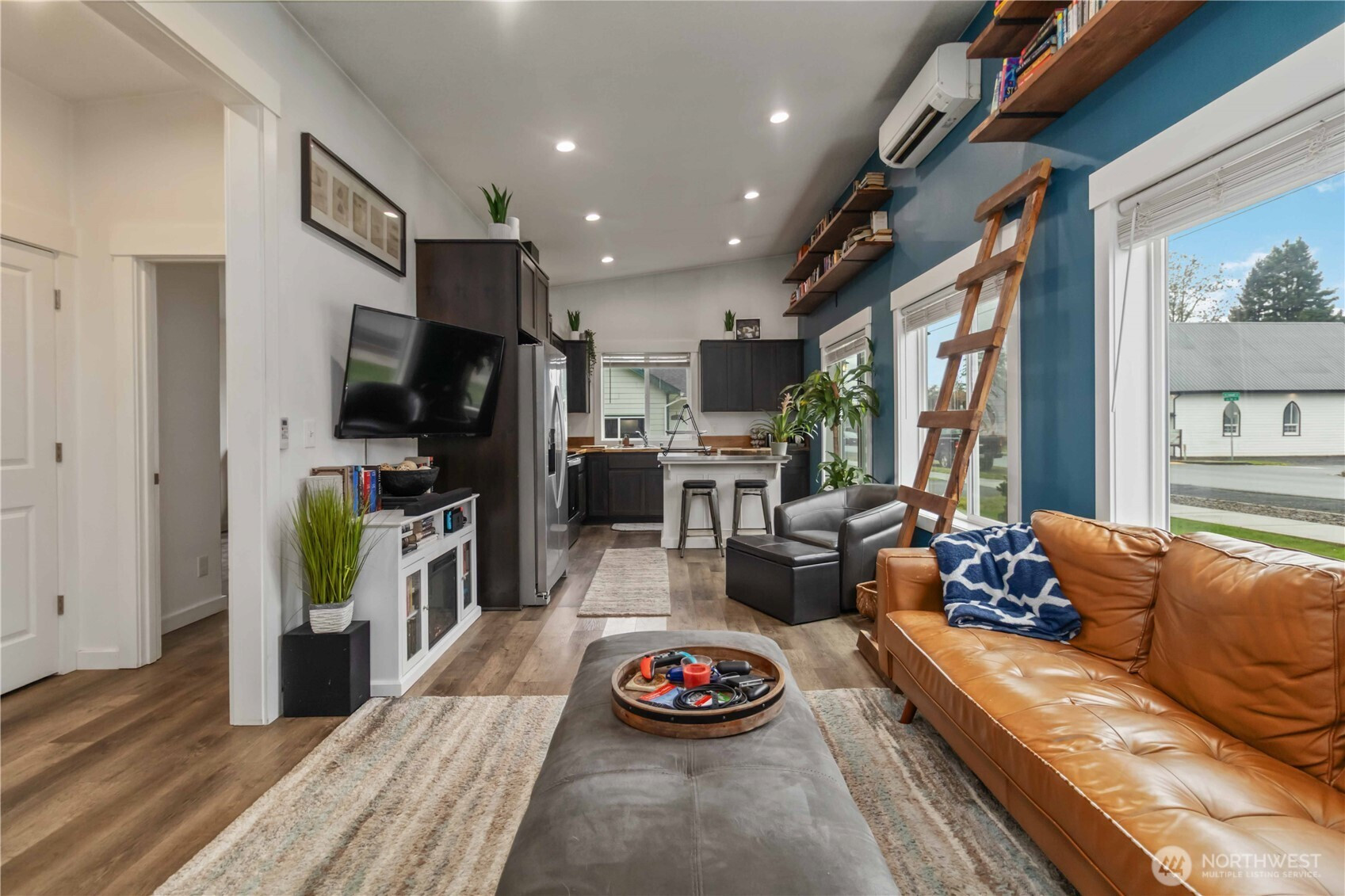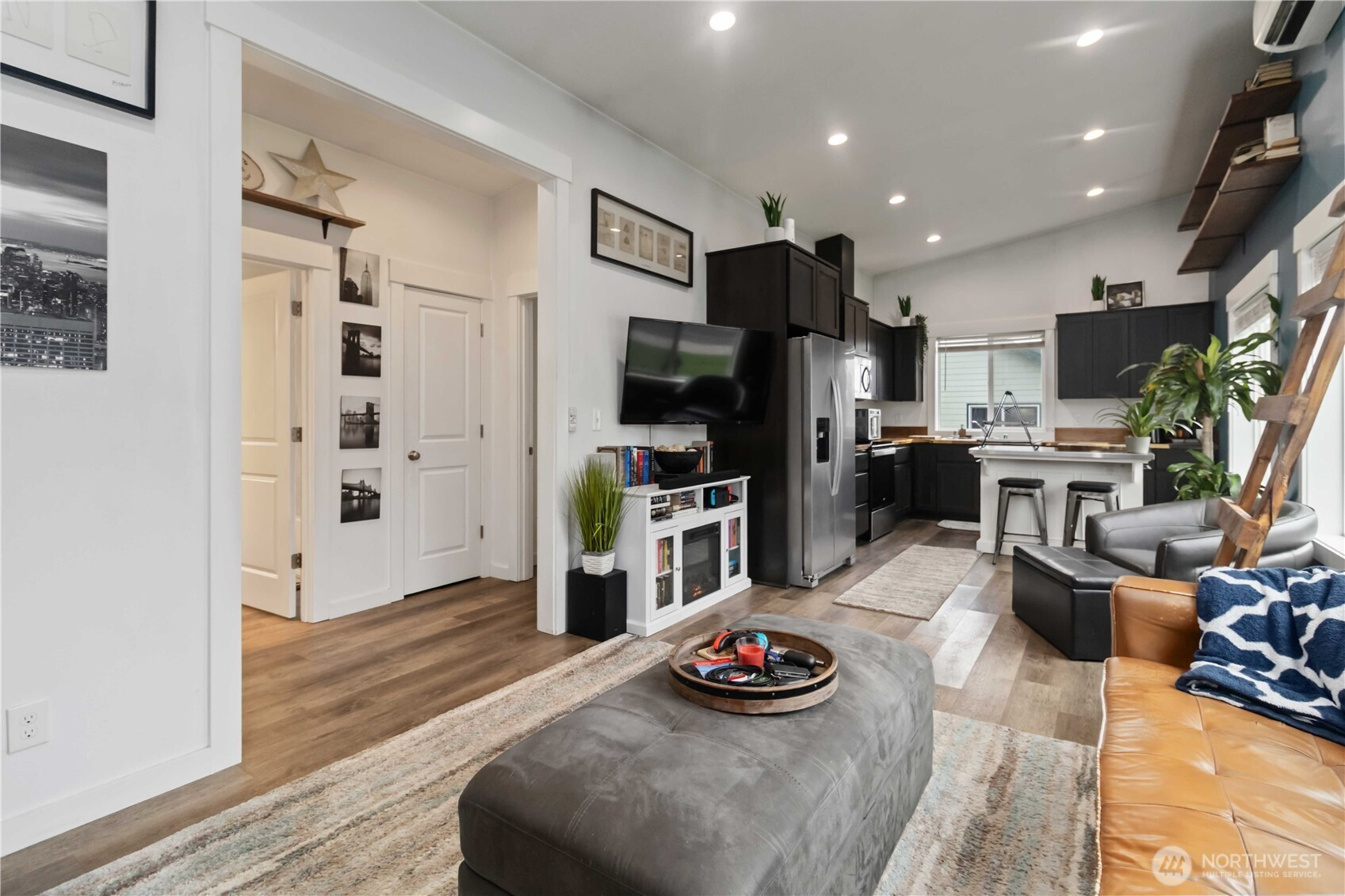 Discover a charming 2-bed, 1-bath home on a spacious corner lot, built in 2022 and thoughtfully enhanced since completion. Stylish finishes and vaulted ceilings create an open, elevated feel throughout the 910 sq ft layout. Enjoy durable vinyl plank flooring, efficient mini-split heating and cooling, and a covered front entry that adds curb appeal and year-round comfort. With modern design, quality materials, and a functional footprint, this home offers an inviting, low-maintenance lifestyle in a peaceful small town setting.