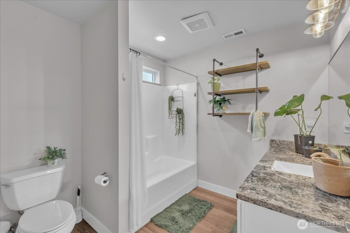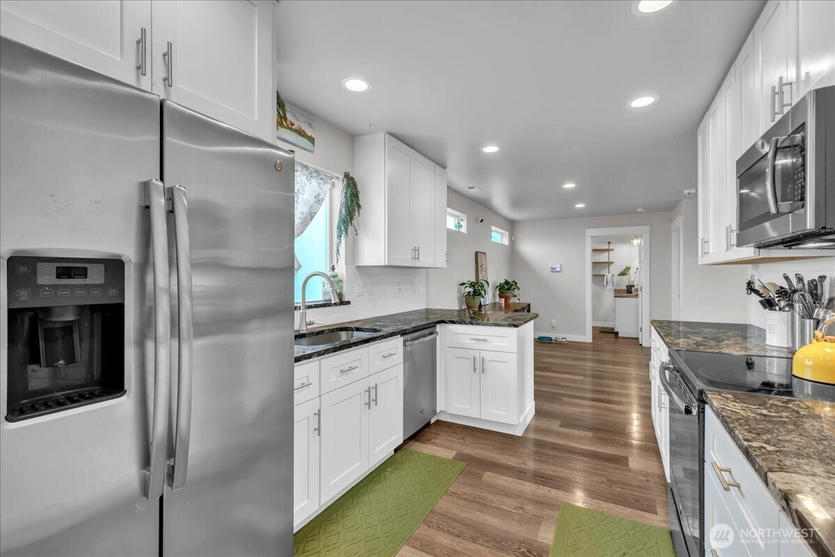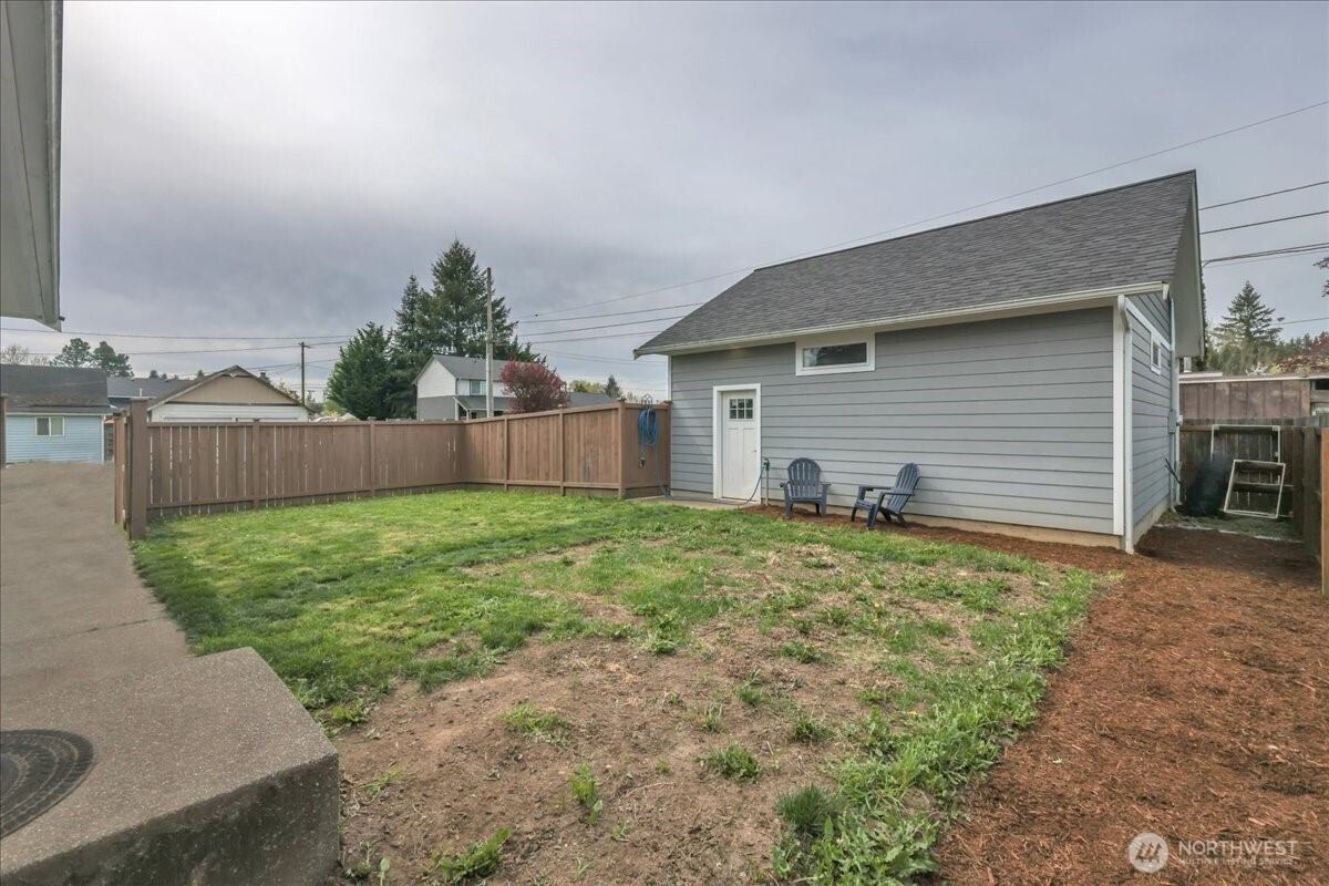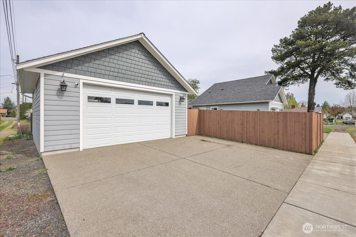 Amazing opportunity to own a newer home in Centralia with oversized detached 2-car garage plus an attached 1-car garage, perfect for vehicles, storage, or hobbies. The thoughtfully designed floor plan features a main-level bedroom, full bath and great room concept. Beautiful laminate flooring flows seamlessly throughout the main level and bright white kitchen is highlighted by stunning granite countertops. Upstairs are two large bedrooms and full bathroom. Step outside to your fully fenced backyard, perfect for summer BBQ or small garden or stay cool and comfortable indoors with A/C. The home also includes electric-car charging, offering added convenience for modern living. Enjoy the freedom of homeownership without HOA restrictions, all while being ideally situated on a desirable corner lot with easy access to I-5 and nearby amenities.