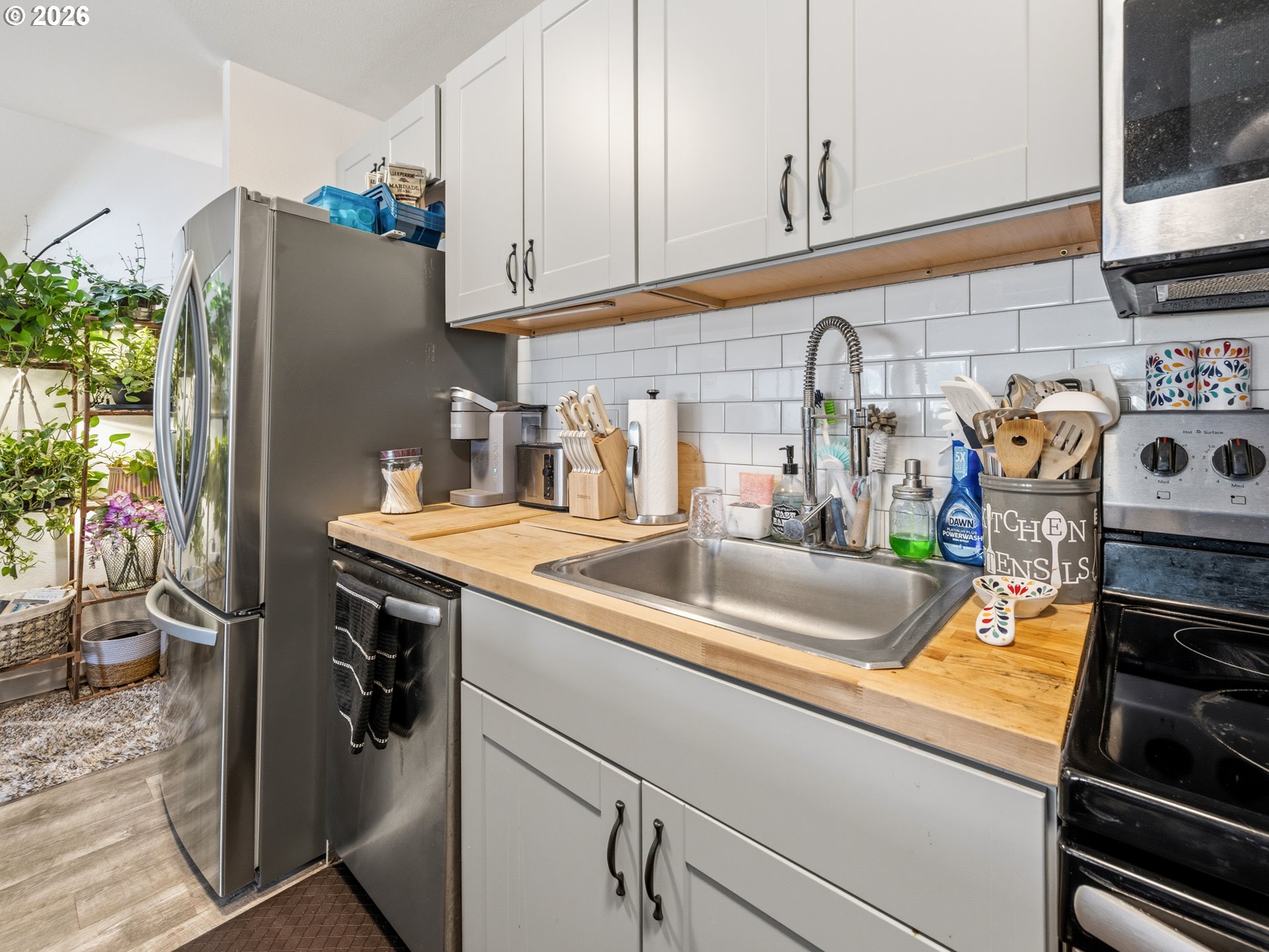 Enjoy easy coastal living in this updated bayfront condo at the Embarcadero in Newport, ideally located in the sought-after C Building. This single-level, ground-floor unit features newer stainless steel appliances, butcher block countertops, and an open layout capturing panoramic views of Yaquina Bay, the ocean, and the Yaquina Bay Bridge—often protected from coastal winds. The one bedroom, one bathroom condo includes washer and dryer hookups, and HOA dues cover utilities plus access to amenities like a saltwater pool, hot tubs, fitness room, and crabbing docks, making it a perfect full-time residence, getaway, or investment opportunity.