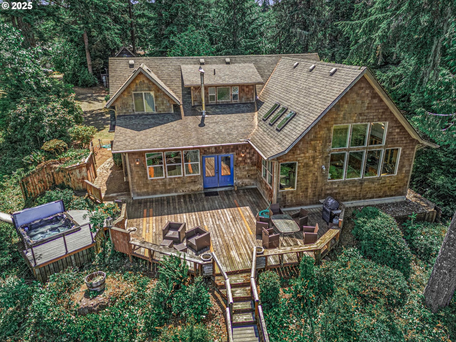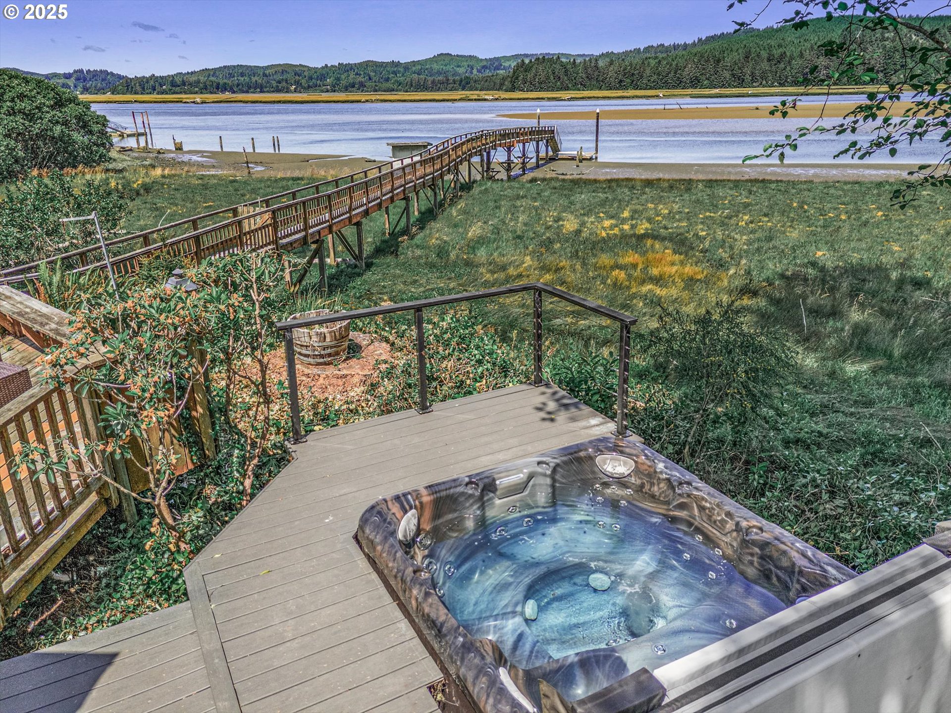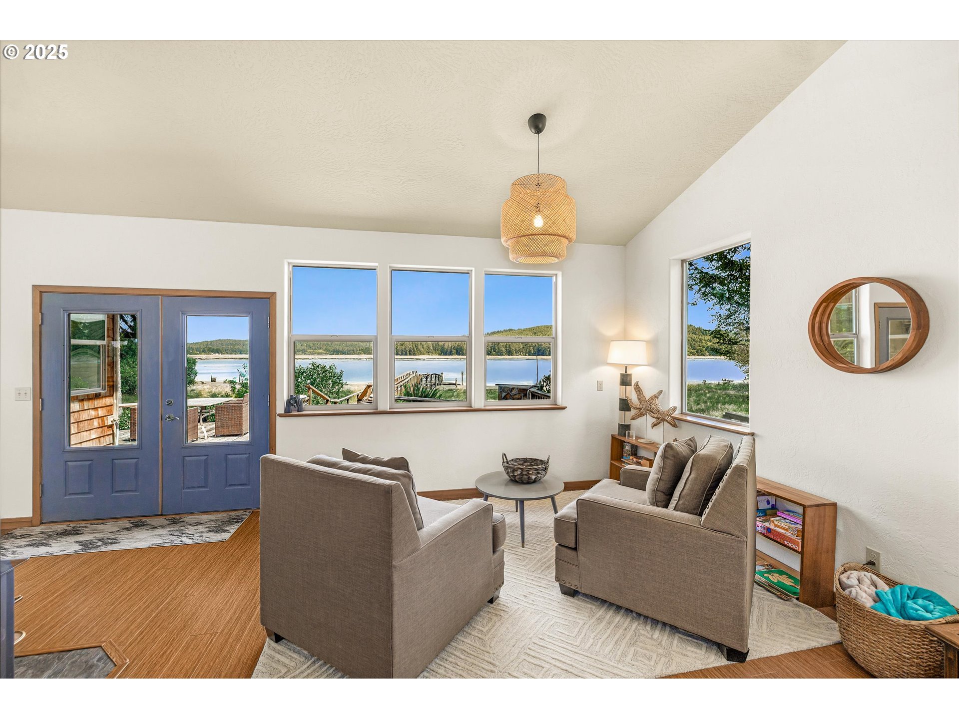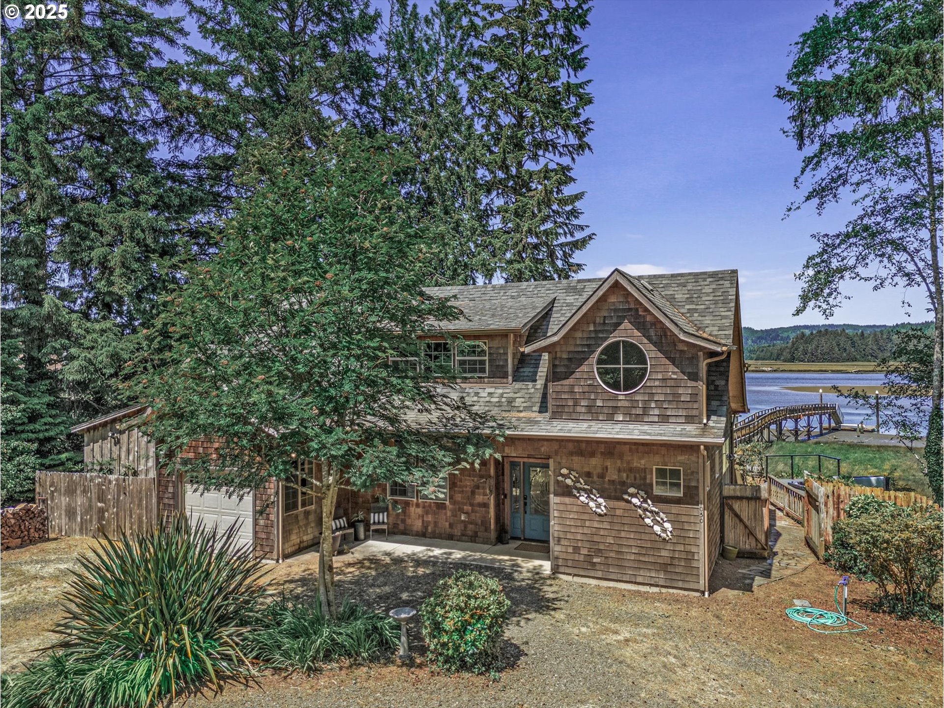 Welcome to your coastal paradise where rustic charm meets serene luxury on 3.73 lush, private acres just minutes from the beach, restaurants, and shops. This extraordinary riverfront property offers a rare blend of space, privacy, and lifestyle with direct access to a private dock via a scenic gangway, meandering natural stream, and stunning river views that provide a breathtaking backdrop year-round. FISH FOR SALMON AND CRAB OFF OF YOUR OWN PRIVATE DOCK!The 2,587 sq ft main house boasts three spacious bedrooms and two and a half beautifully appointed bathrooms. Inside, you’ll find soaring ceilings, large picture windows that flood the home with natural light, and an open-concept layout perfect for both entertaining and everyday living. The updated kitchen offers ample counter space and storage, while the living area flows seamlessly to a large back deck complete with a hot tub where you can soak in panoramic river vistas.Step outside and discover even more! A charming detached cabin with a wraparound porch, full kitchen, and private bath, perfect for guests, multi-generational living, or potential rental income. Adjacent to the main home, a detached garage houses a versatile studio space ideal for an art room, office, or guest suite, plus an attached greenhouse ready for year-round gardening.This one-of-a-kind property offers everything the Pacific Northwest lifestyle embodies: tranquility, convenience, and connection to nature. Whether you’re launching your kayak from your private dock, enjoying morning coffee on the deck, or exploring the nearby beach, every detail is designed to inspire. Don’t miss this rare opportunity to own a private riverside retreat with modern amenities and timeless charm. THIS IS A MUST SEE PROPERTY!